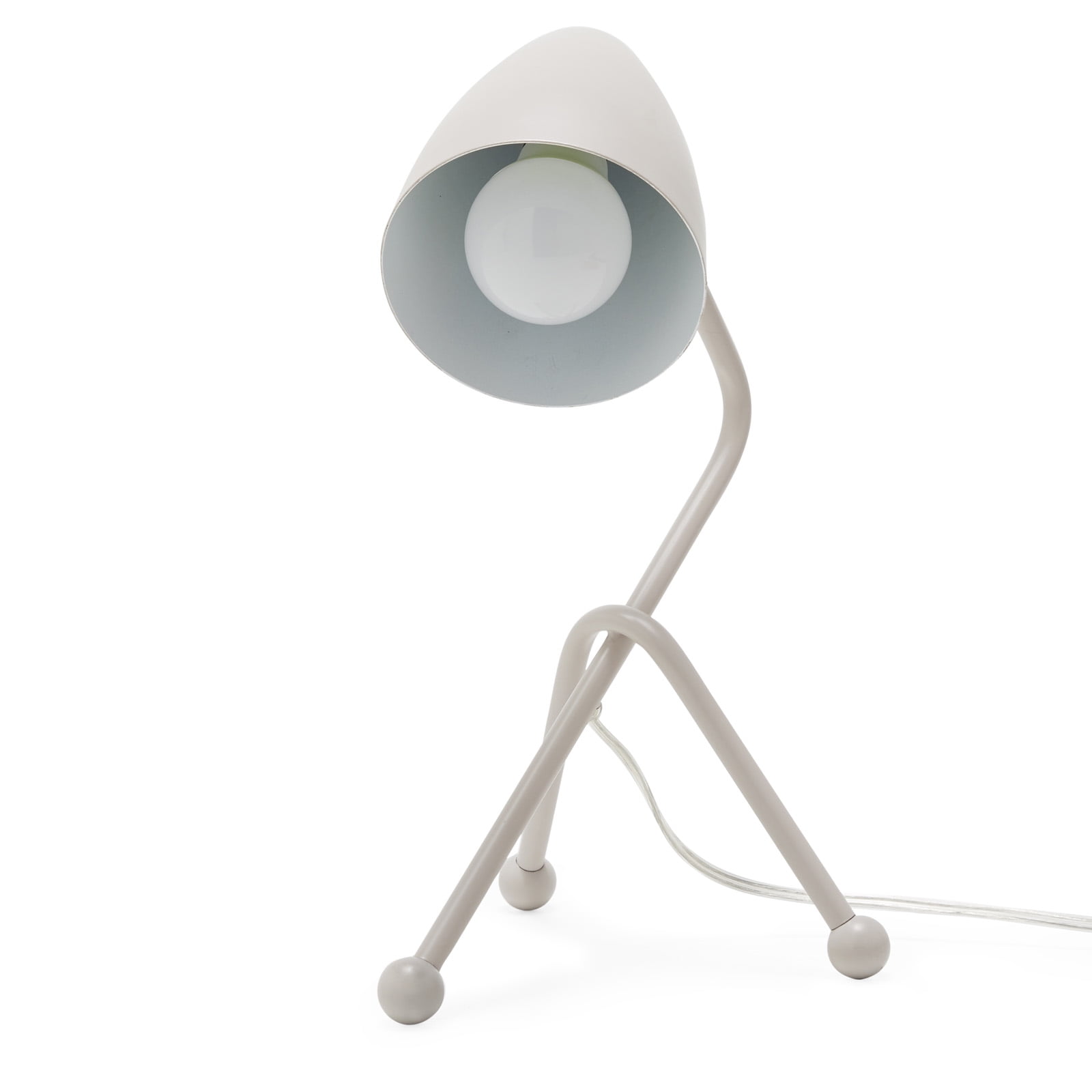 Scandinavian style is focused on function and simplicity, and the MoDRN Scandinavian Grasshopper Desk Lamp will be the perfect symbol of this in your home. Cross off your list of to-dos with the bright light from this slender lamp on your home desk. The durable metal shade in off-white features a subtle gold accent that connects it to the coordinating white base. The metal tripod base has three ball caps on their feet.