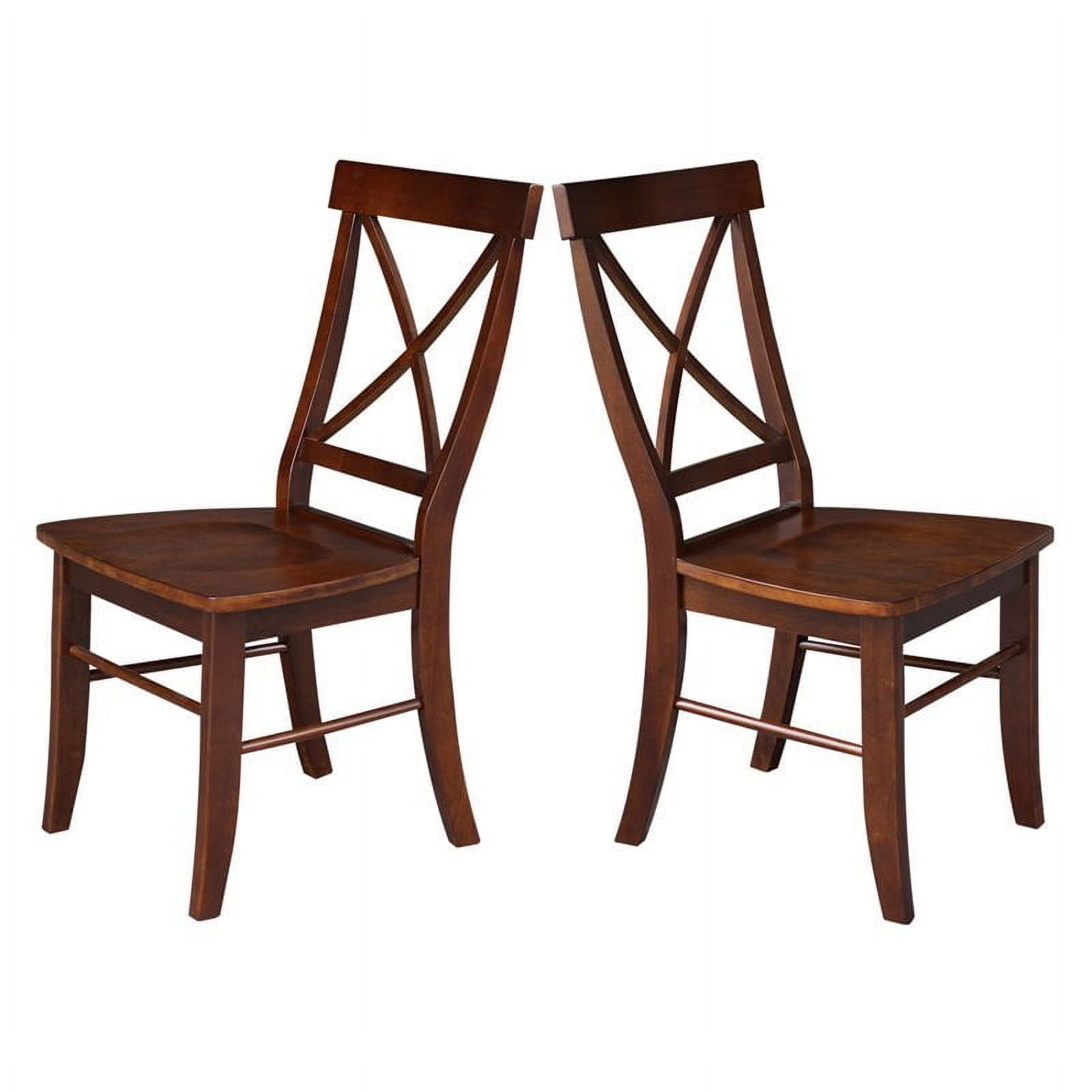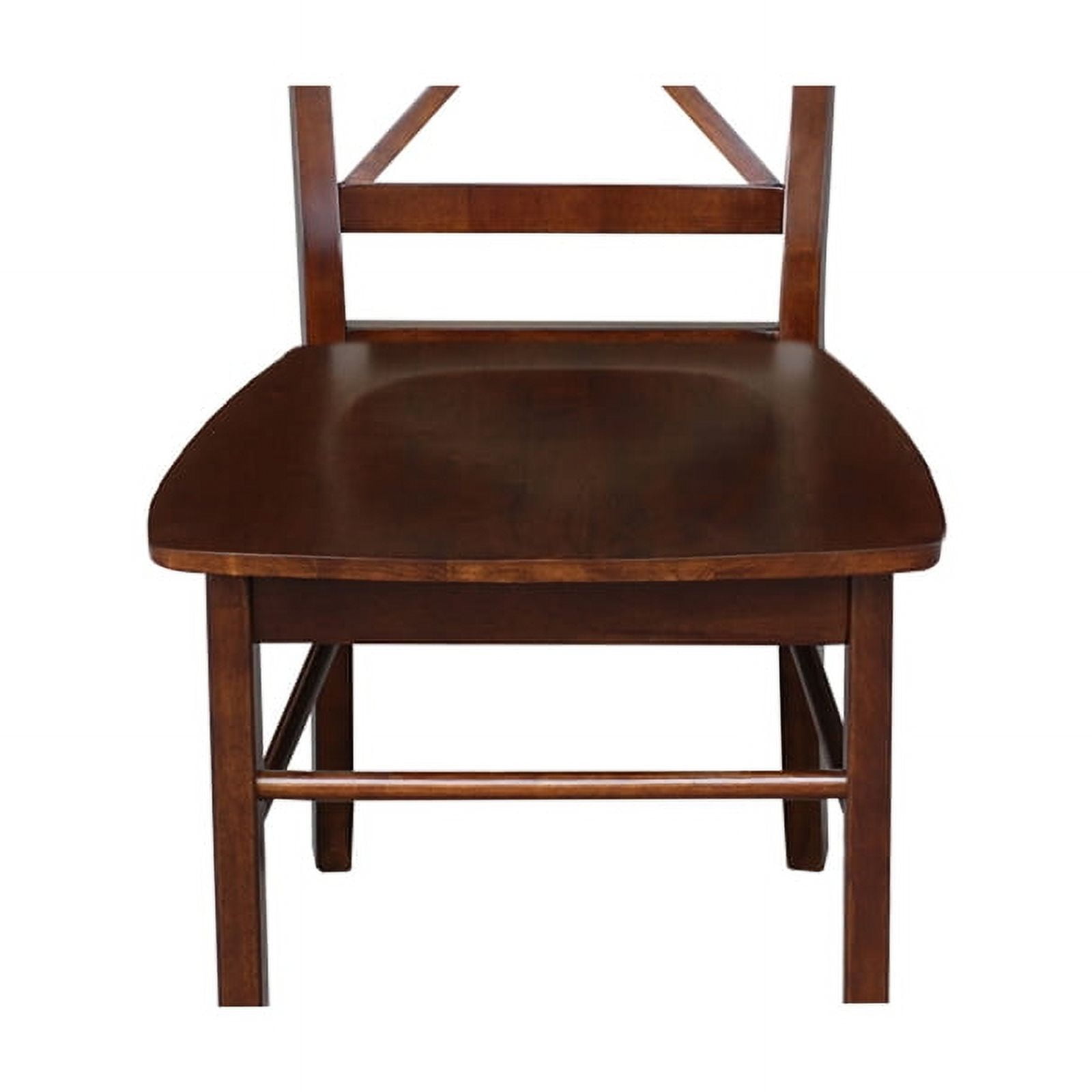 X-Back Chair with Solid Wood Seat: Set of 2 dining chairs Made from solid parawood Box seat construction Easy assembly Seat height is 17.5″ Not rated for commercial use, residential use only Model# C581-613P