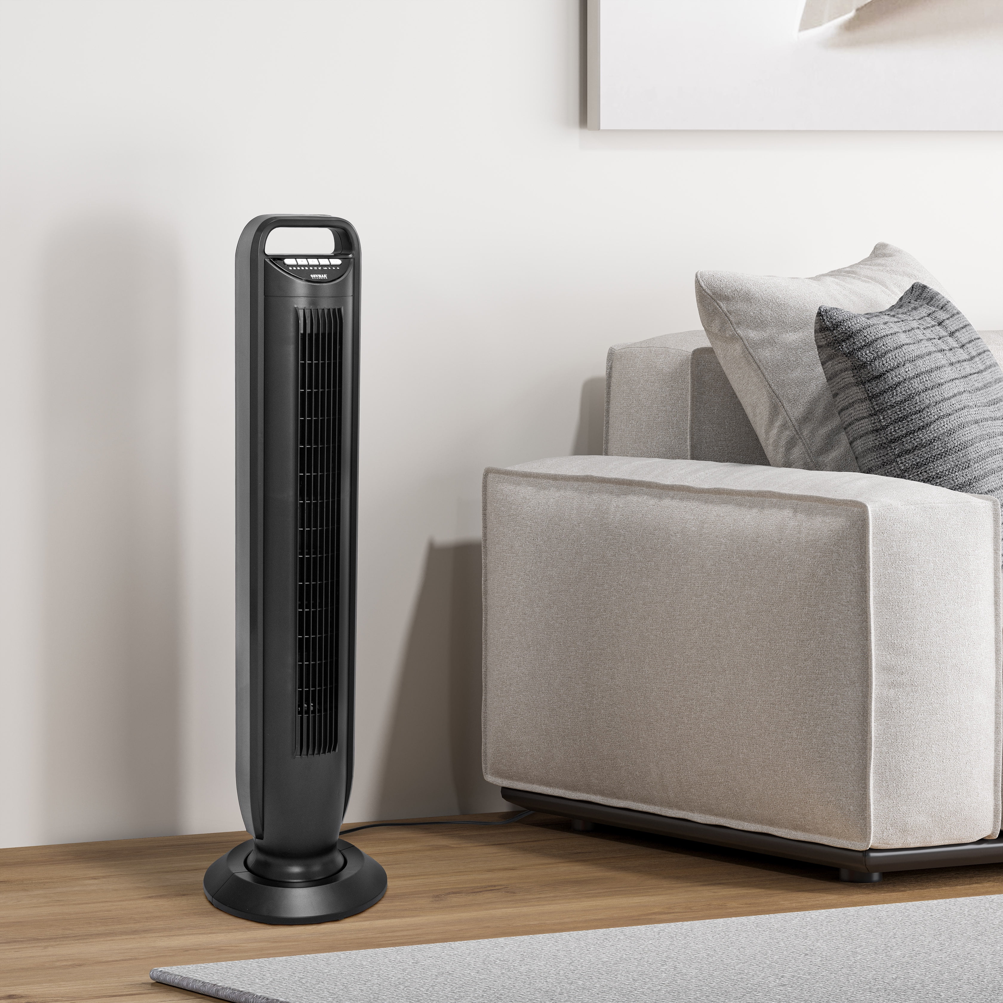 Maintain a refreshing atmosphere year-round with Seville Classics’ UltraSlimLine® Oscillating Tower Fan. Our powerful tower fan offers complete customization, featuring five speed settings, three wind modes, a programmable shutdown timer, and 75° airflow oscillation — all within a compact footprint of less than 1 sq. ft. The automatic oscillation ensures efficient, widespread airflow coverage for larger areas. Enjoy ultra-quiet operation for a cool, peaceful day or a restful night’s sleep.
