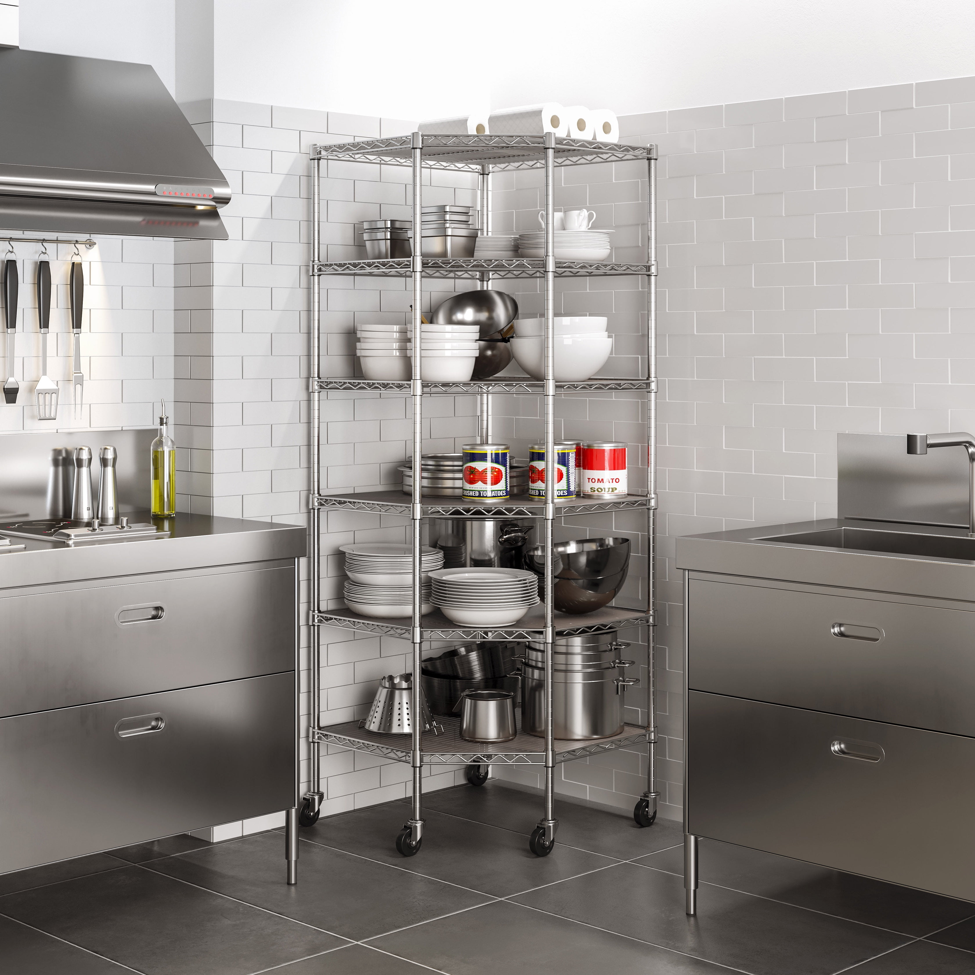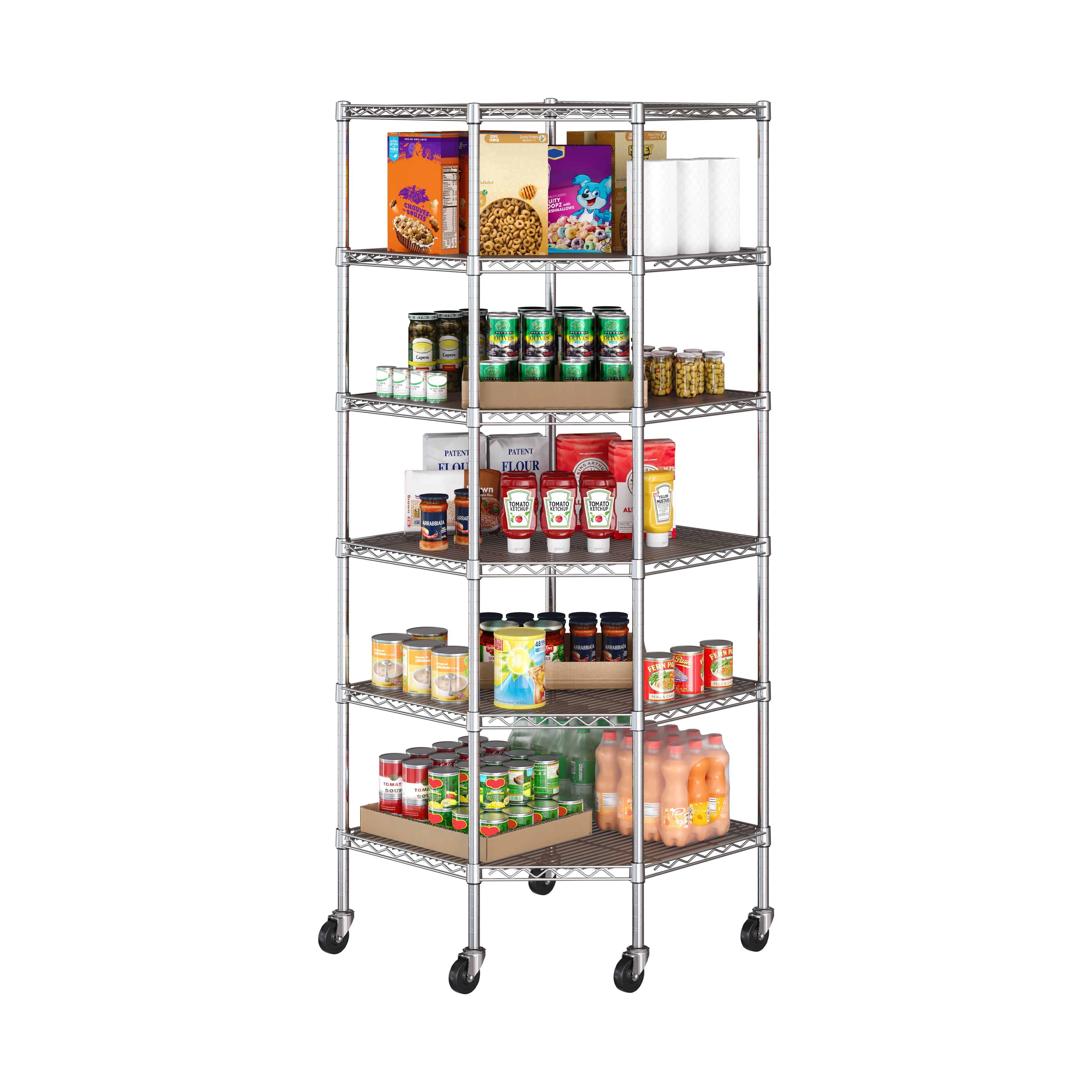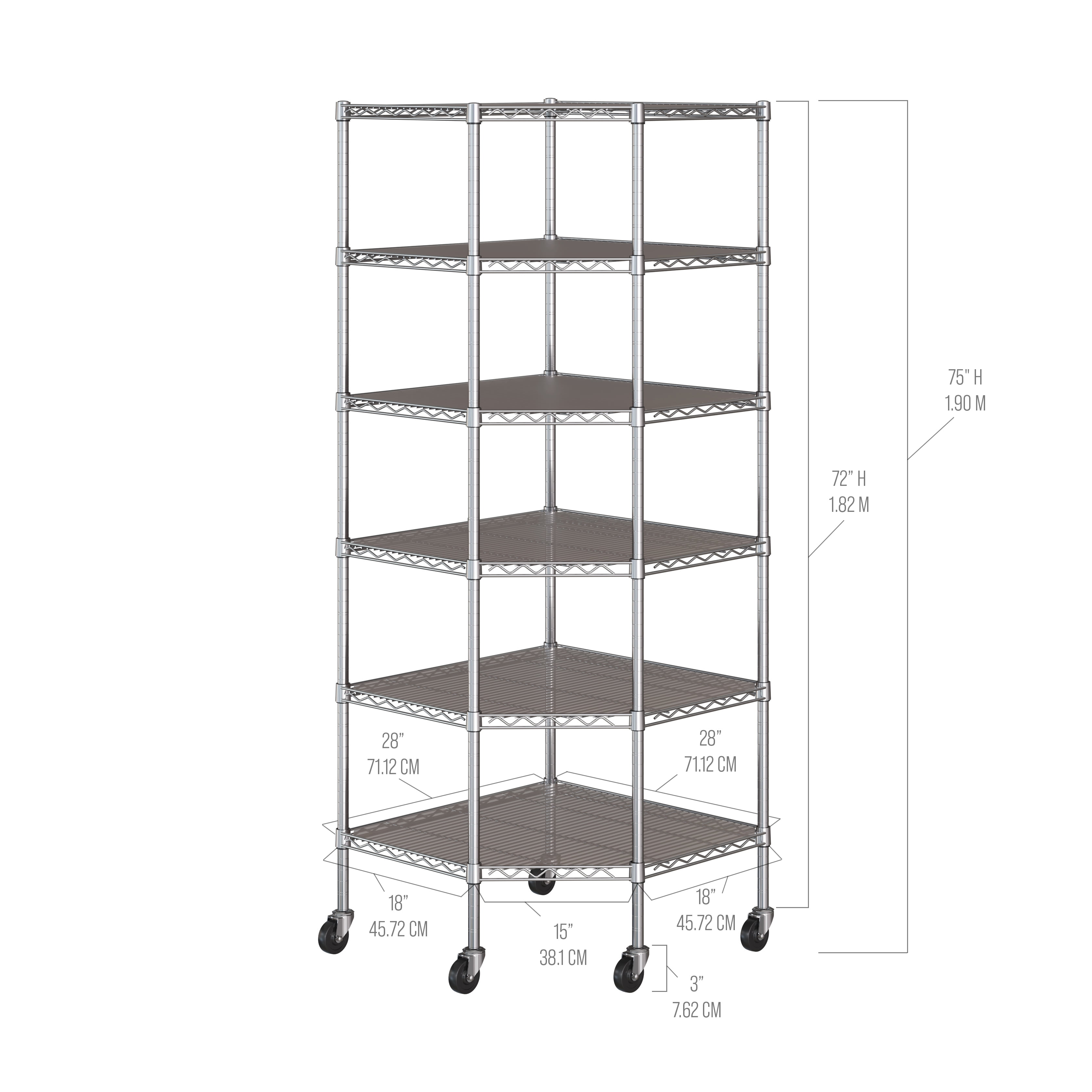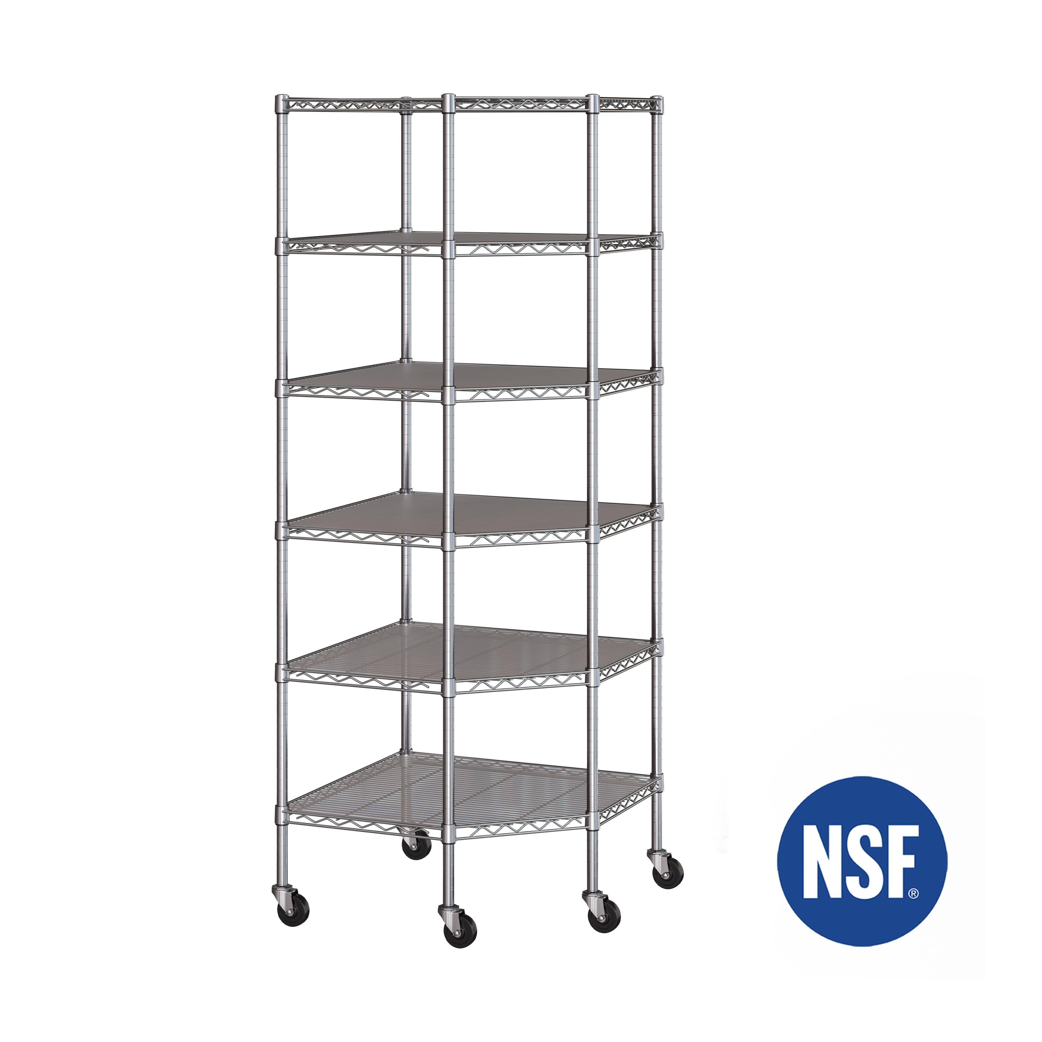 Seville Classics 6-Tier NSF Corner Shelving /w Wheels and 6 Bonus Shelf Liners, 28″ D x 28″ W x 72″ H
