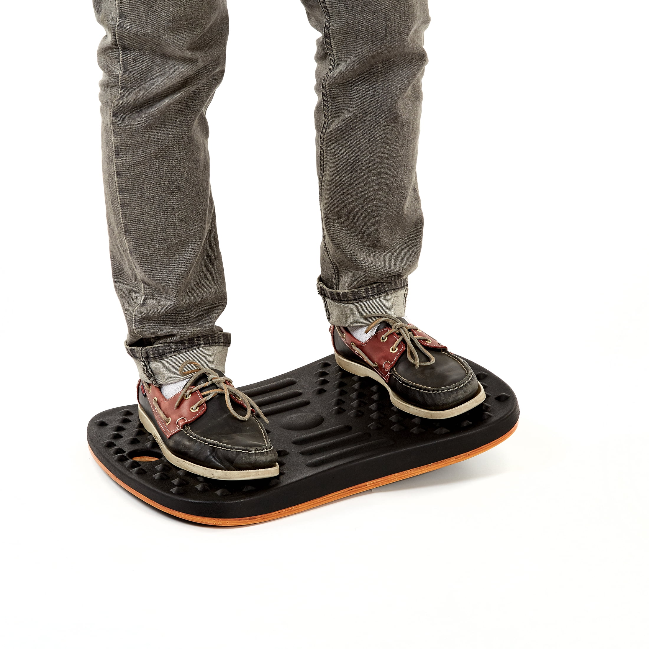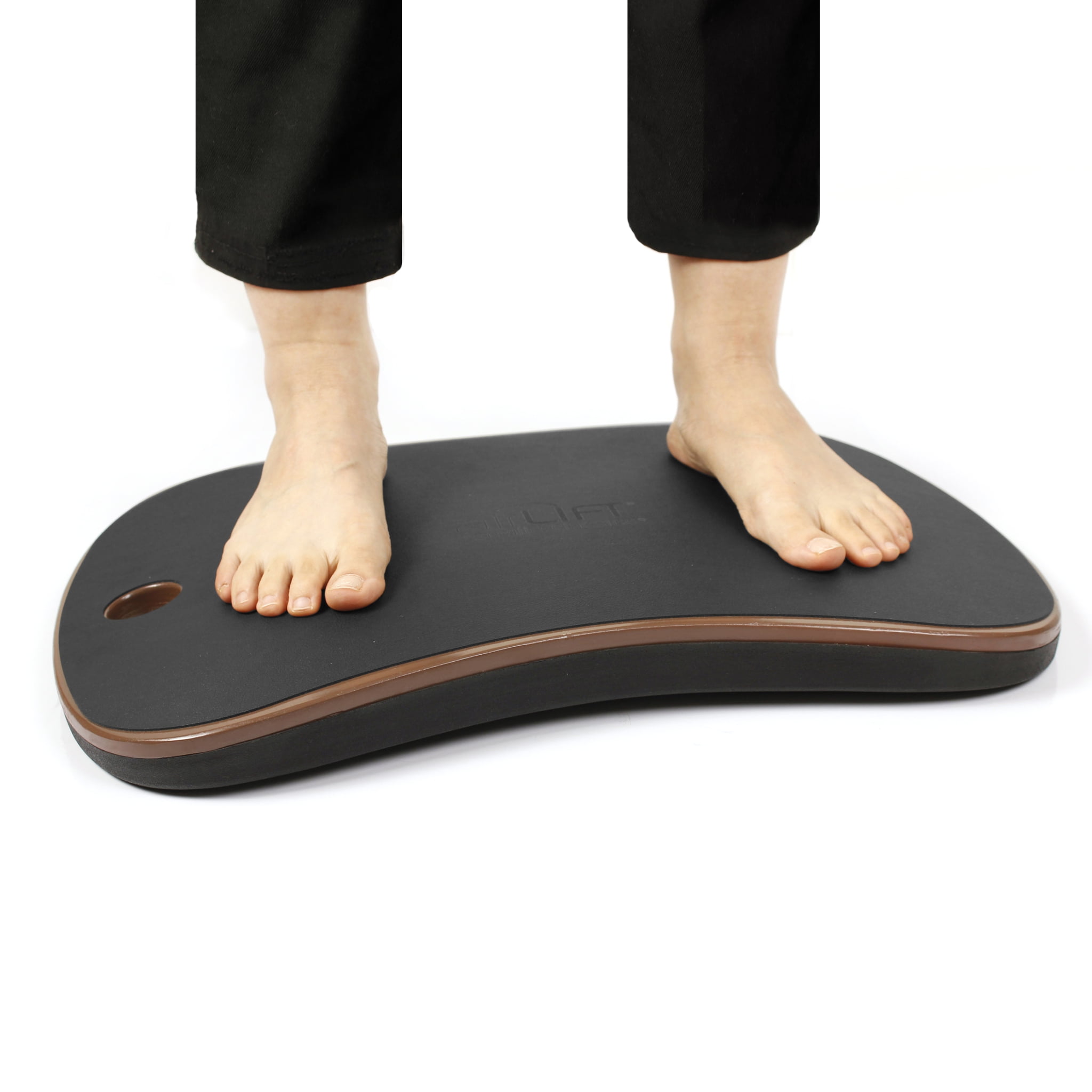Seville Classics airLIFT 20″ Wobble Balance Ergonomic Non-Slip Anti-Fatigue Board, Black Relieve your feet from standing with the textured surface and raised points along the board. Designed to massage and release pressure in your feet while improving blood flow. Made with reflexive polyurethane that stretches and bends with your movements. Activate core muscles as you rock and up to 8.5° from side-to-side. It’s compact and designed to go where you do and includes a built-in handle for easy grip.