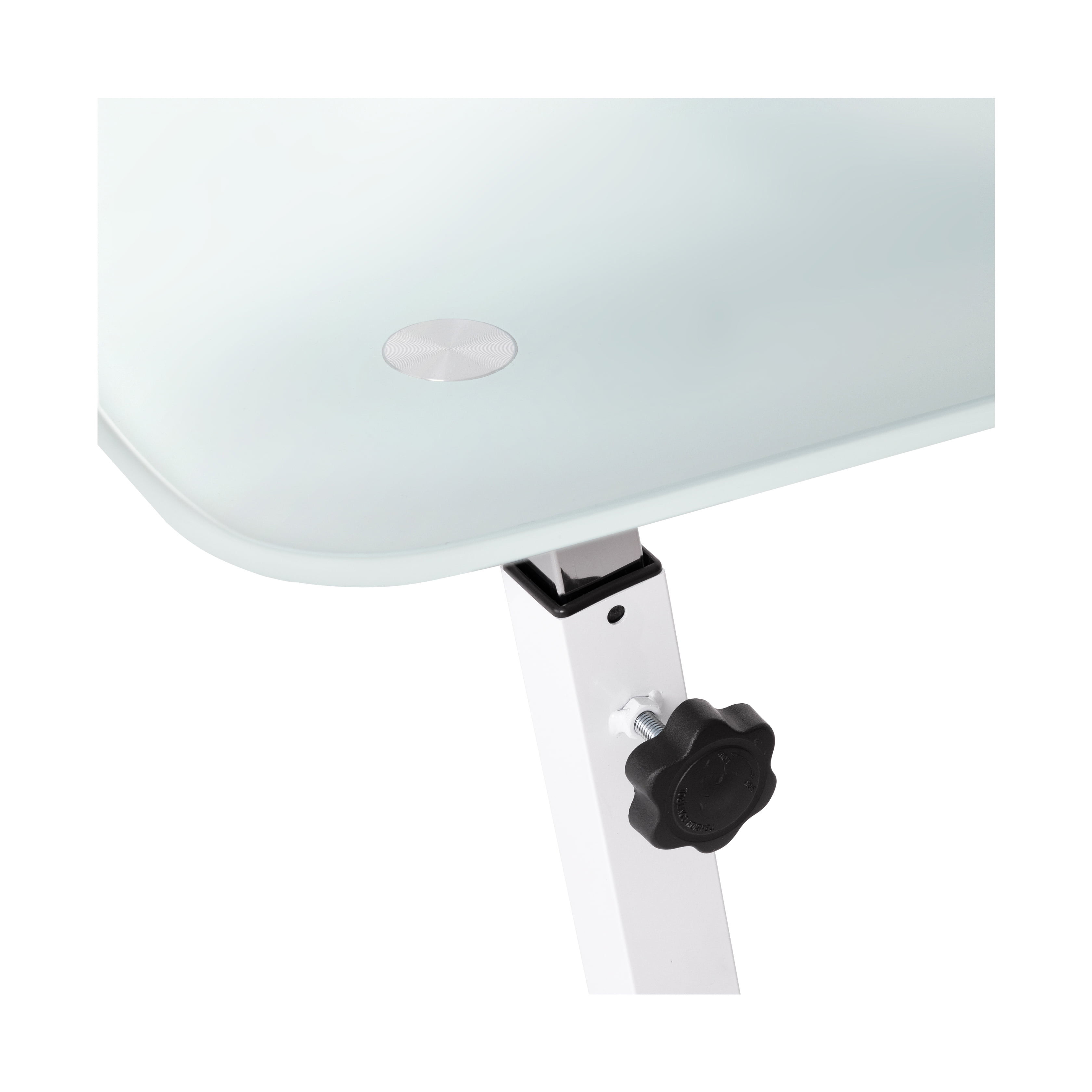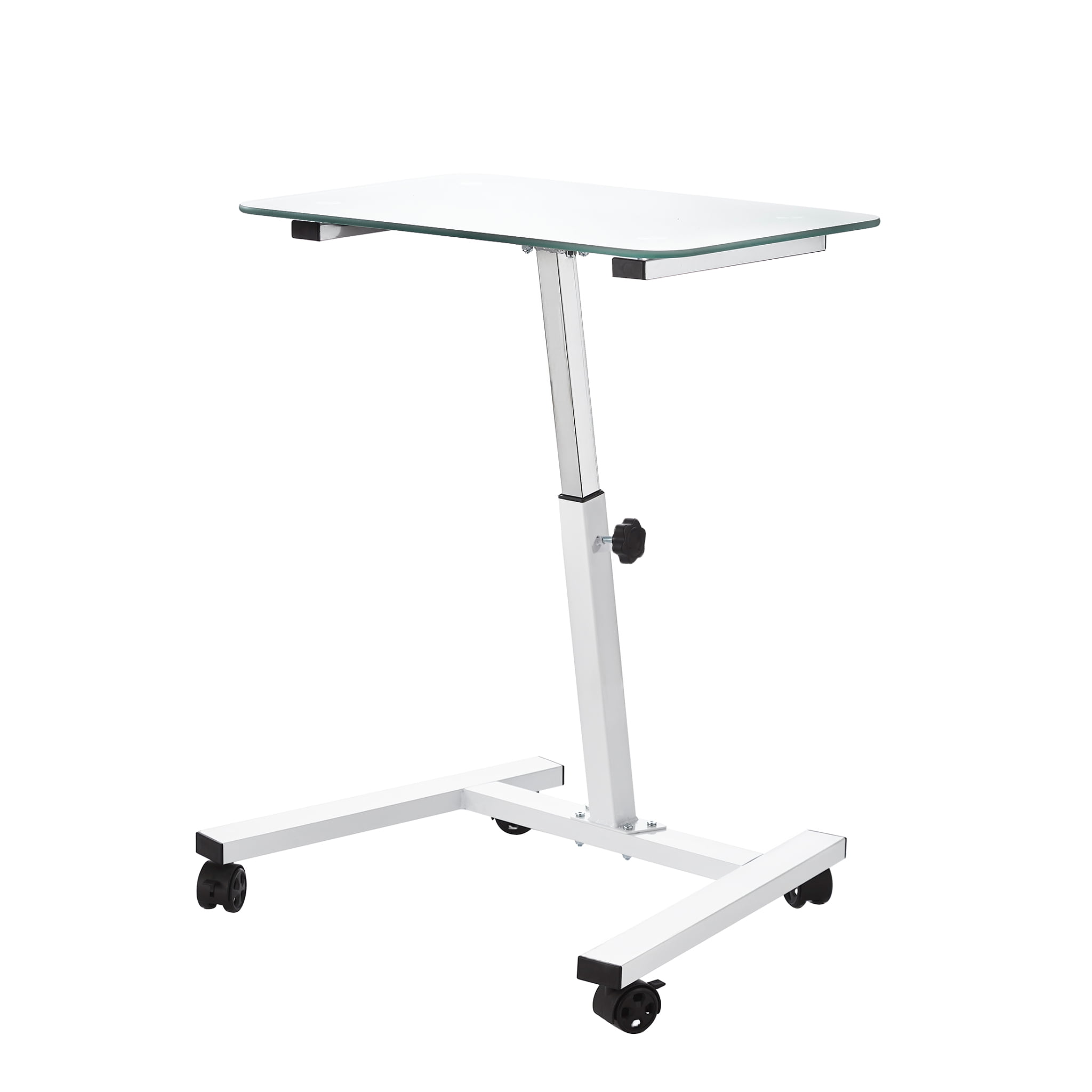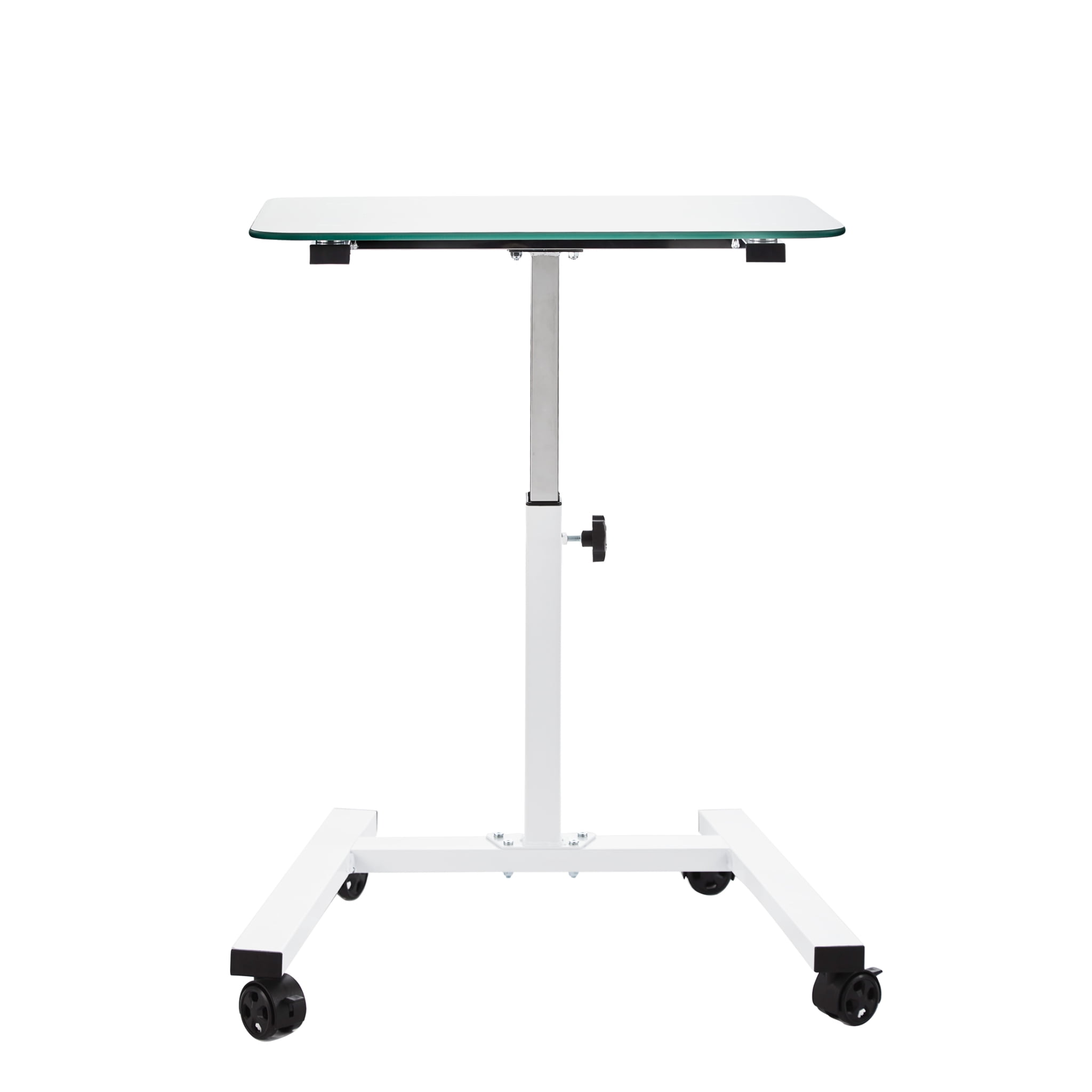 HEIGHT ADJUSTABLE TABLETOP – Adjust from 20.5″ to 31.7″ high and any height between with a manually and secure with the twist-lock knob for an ergonomic and personalized workspace. SMALL COMPUTER WORKSTATION – Solid tempered glass desktop (23.7″ x 15.8″) is designed to fit almost any size laptop or tablet with keyboard. MOBILE ROLLING DESK – Enjoy smooth-gliding mobility with four 1.5-inch caster swivel wheels (2 locking). Simply screw wheels in for a portable workspace that stays put when you need it. SOLID & STABLE DESIGN – Durable steel frame finished in white for long-term durability and easy-care. It’s perfect for professional environments like offices, art and music studios, libraries, and in dentist’s, optometrist’s and doctor’s offices. EASY ASSEMBLY – All tools required for assembly are included. Perfect for classrooms and teachers as a full-size, height-adjustable podium; or as an alternative to standard office and computer desks.