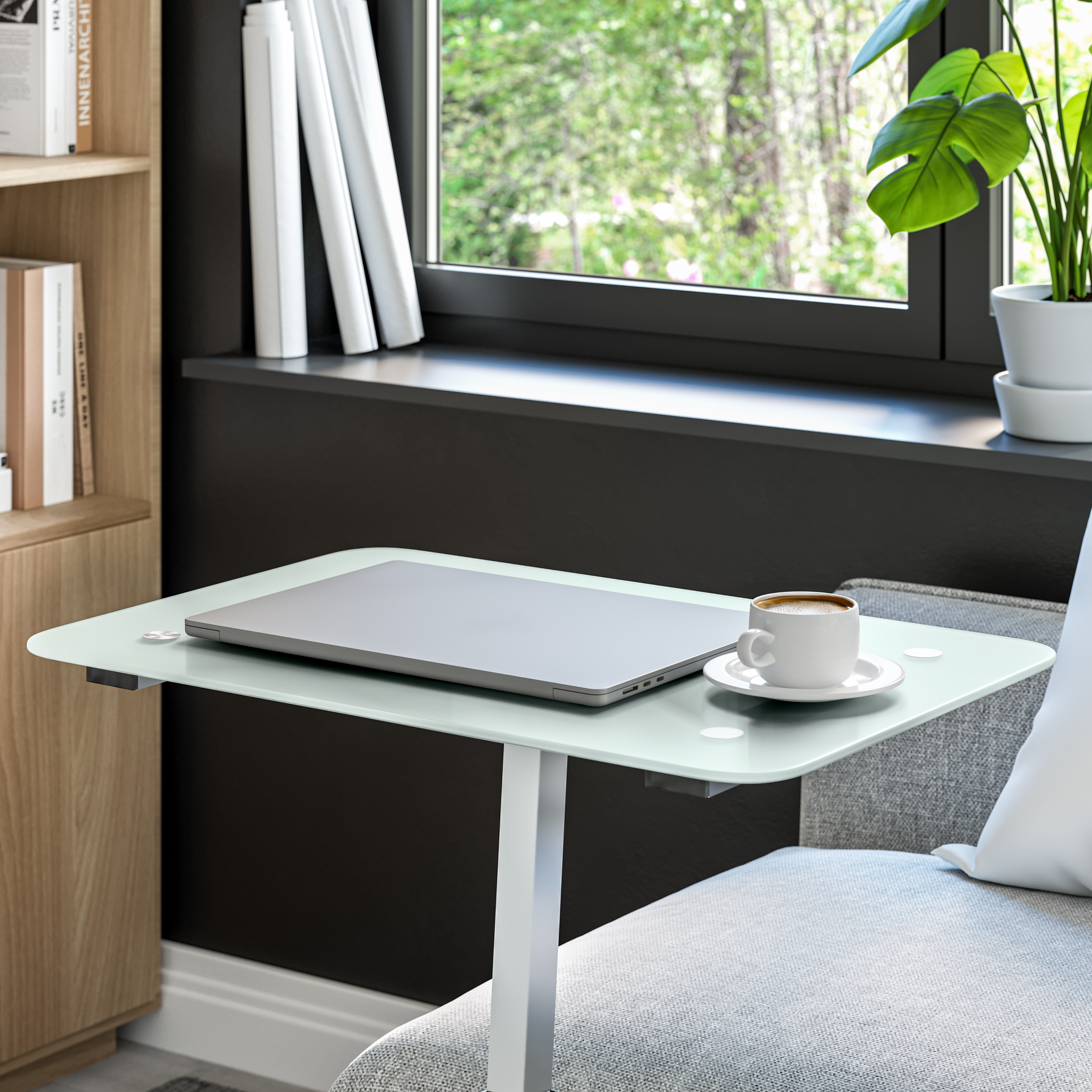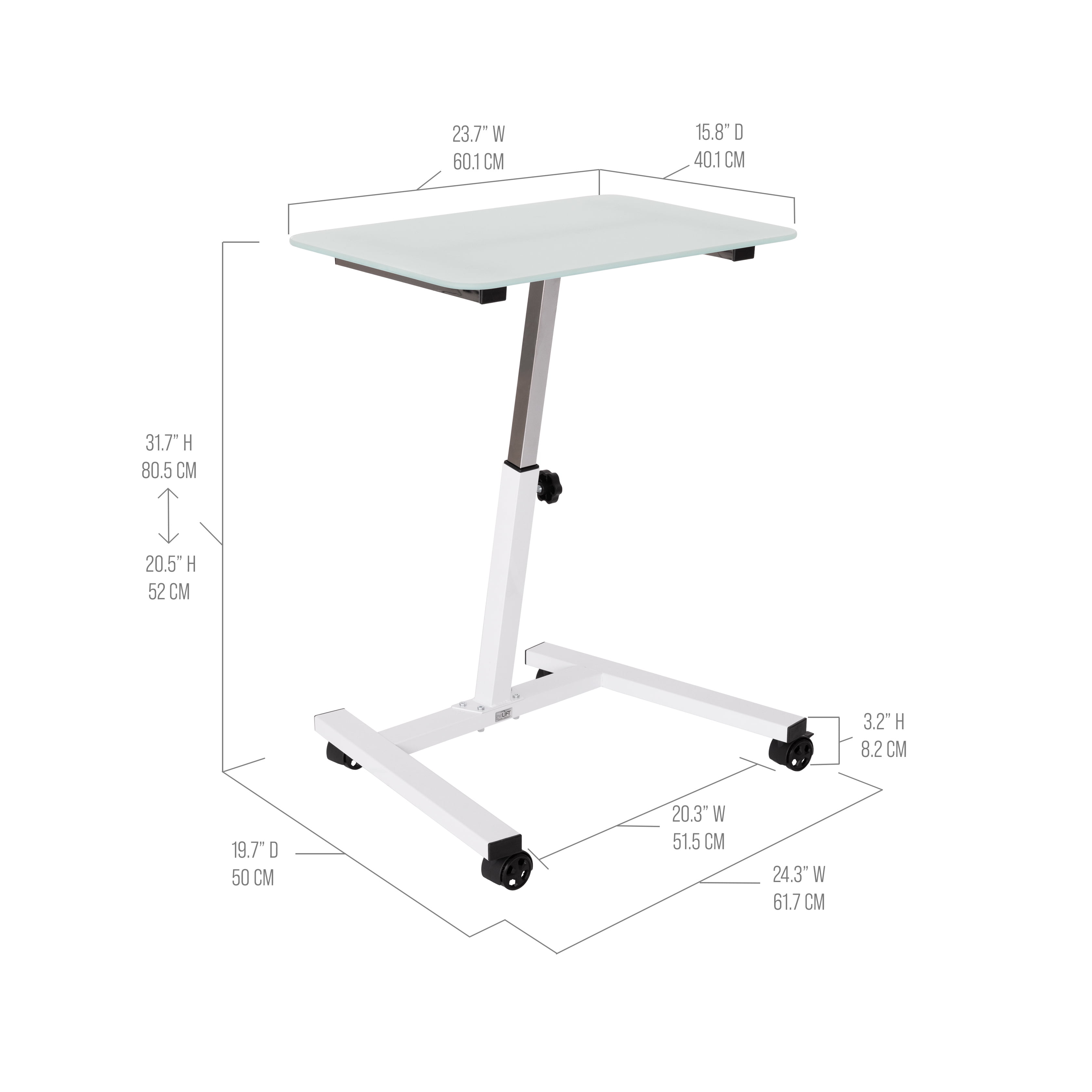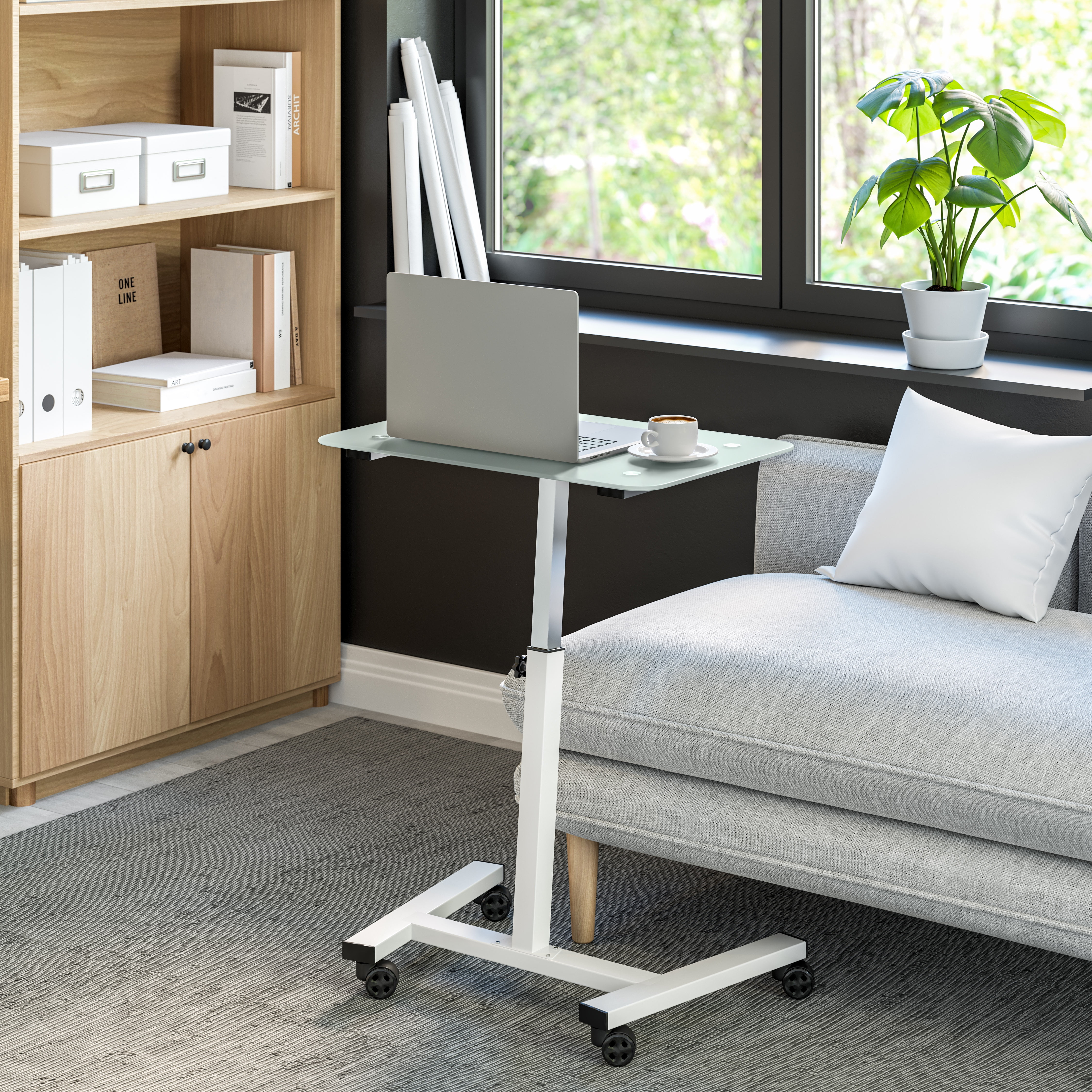 Seville Classics airLIFT 23.7″ Tempered Glass Height Adjustable Mobile Laptop Desk Cart, White