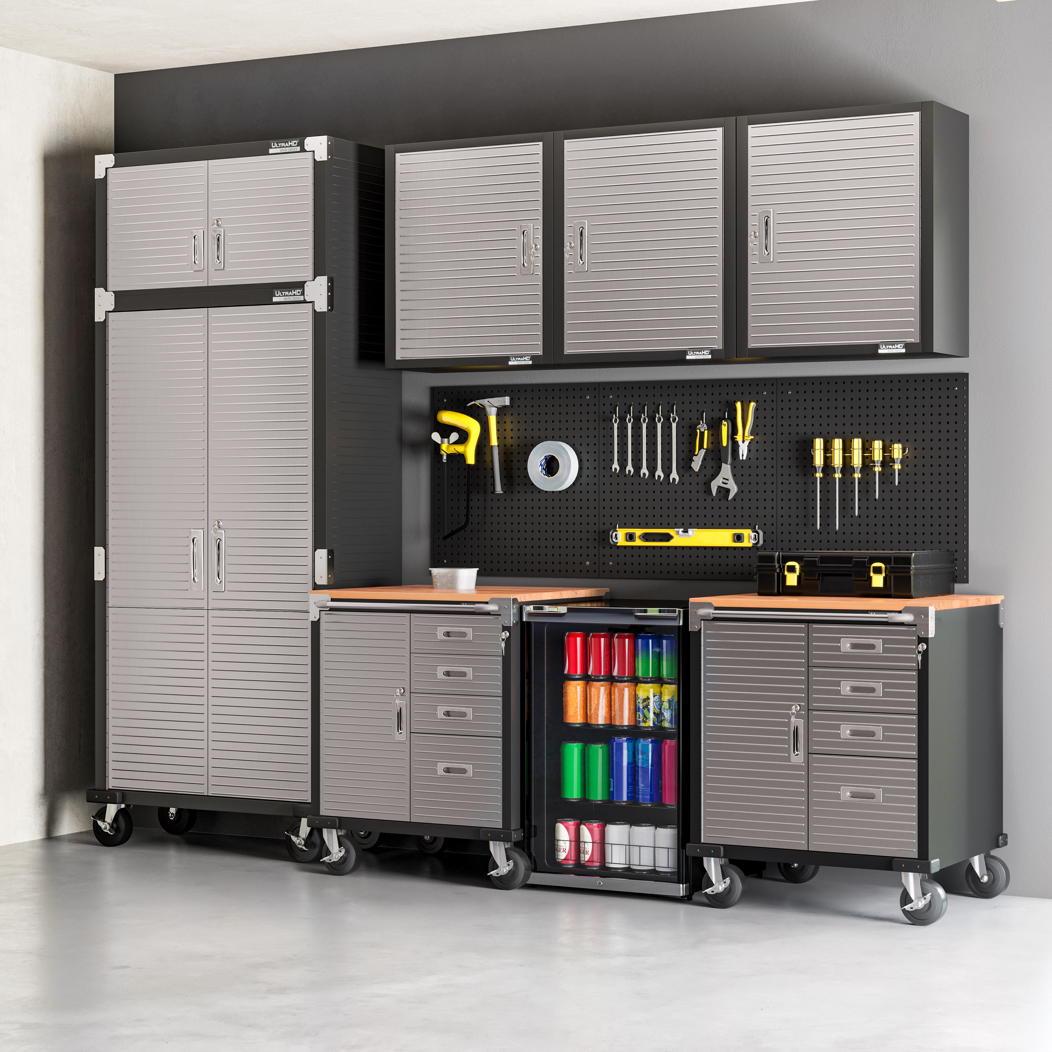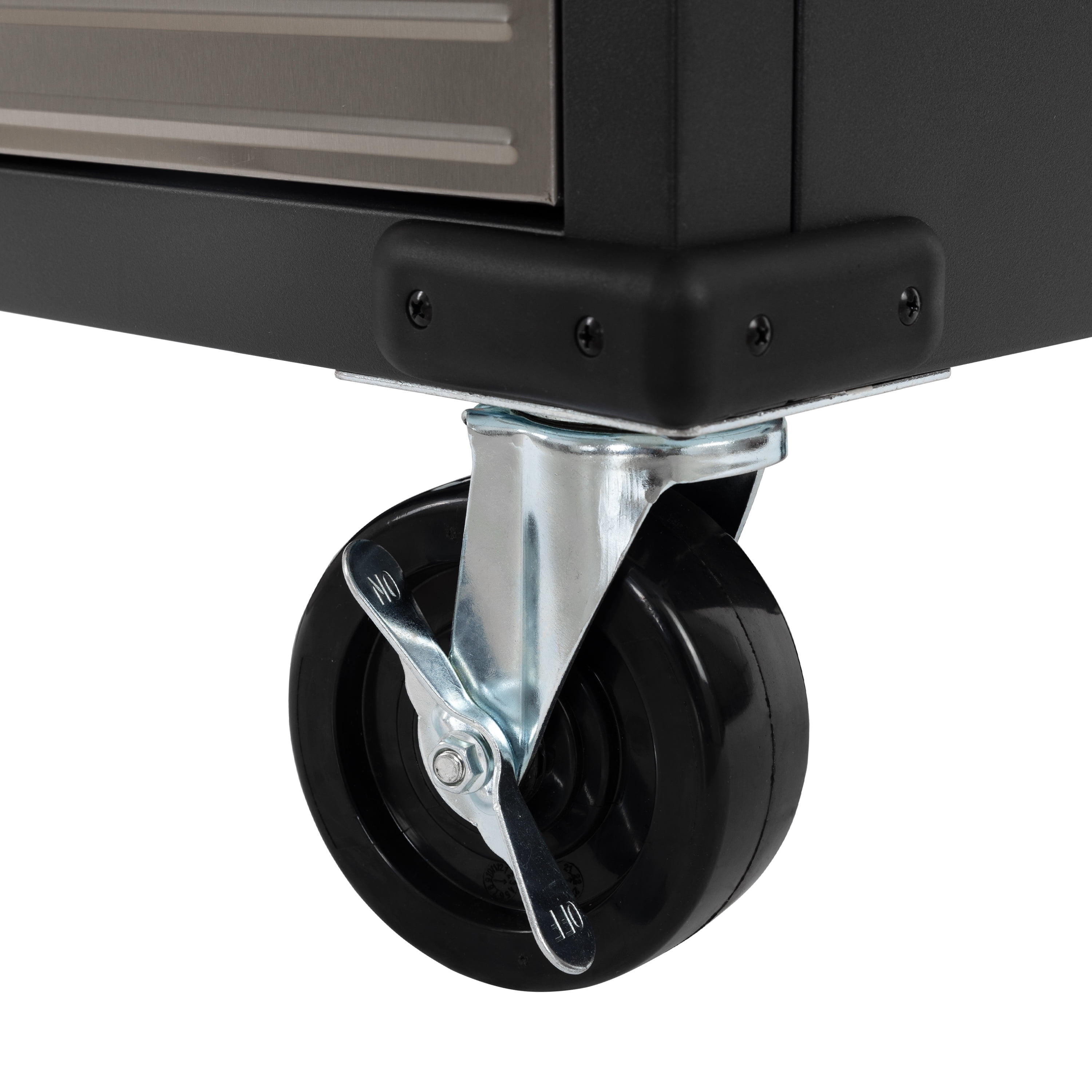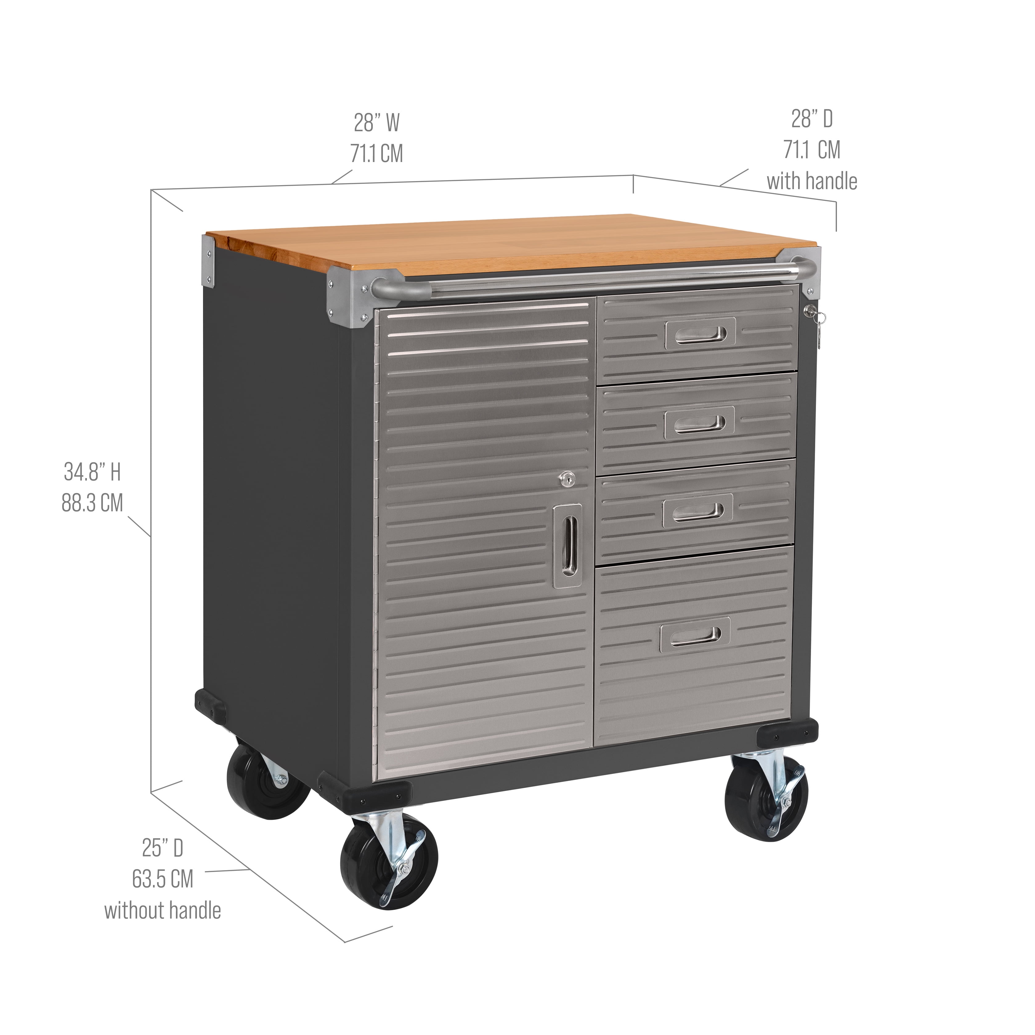 Seville Classics UltraHD® Heavy Duty Rolling Cabinet Workbench Table w/ Solid Wood Top, Workstation for Garage, Office, Workshop, Graphite, 1-Door, 4-Drawer (28″ W x 25″ D)