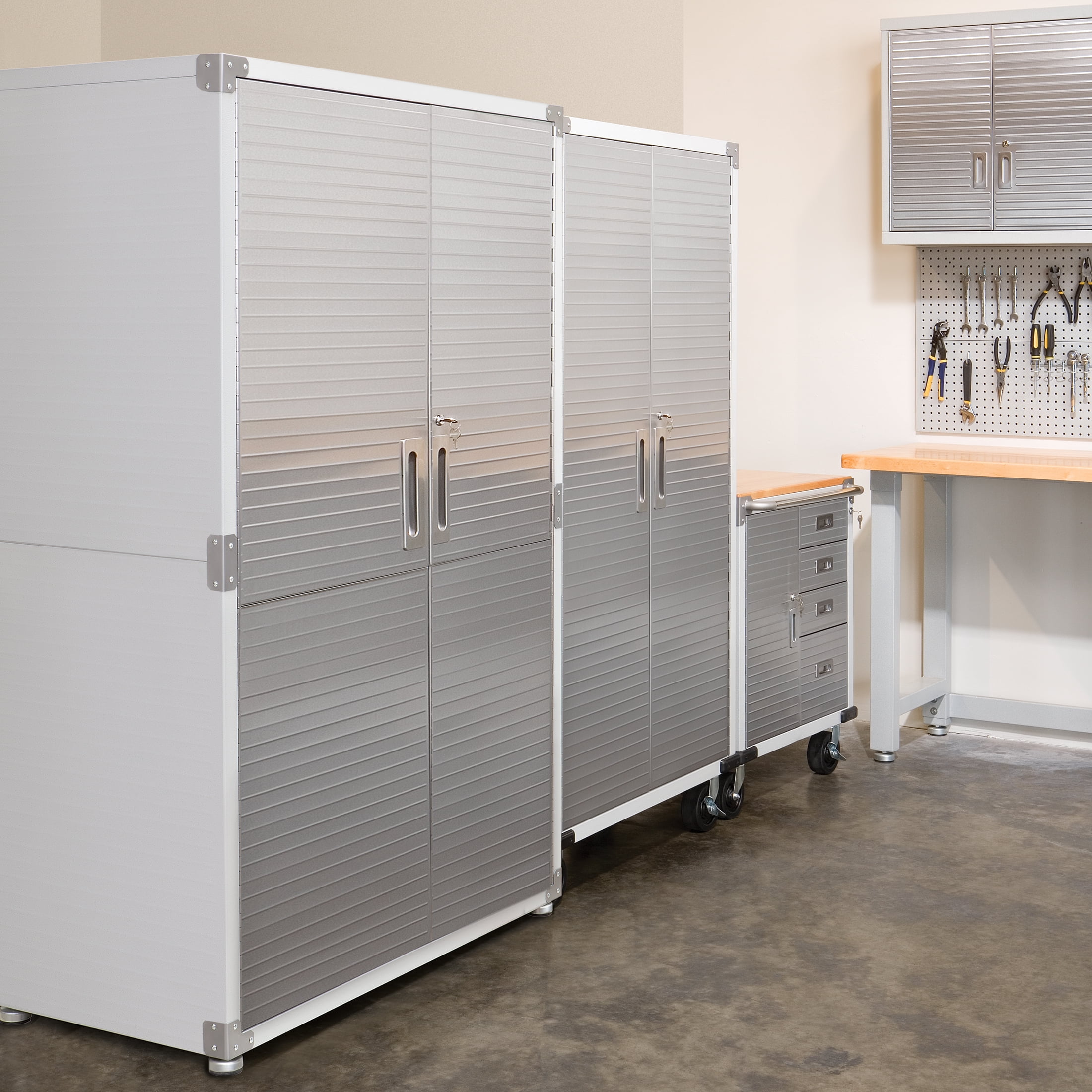 Store and organize with our heavy-duty UltraHD Steel Storage Cabinet. Securely lock your supplies, tools, and belongings. This all-steel storage cabinet features stainless steel doors with 3-point key locking system, 3 adjustable shelves, and leveling feet. Ideal for use anywhere including offices, garages, warehouses, schools, and businesses. Assembly required (screwdriver included).