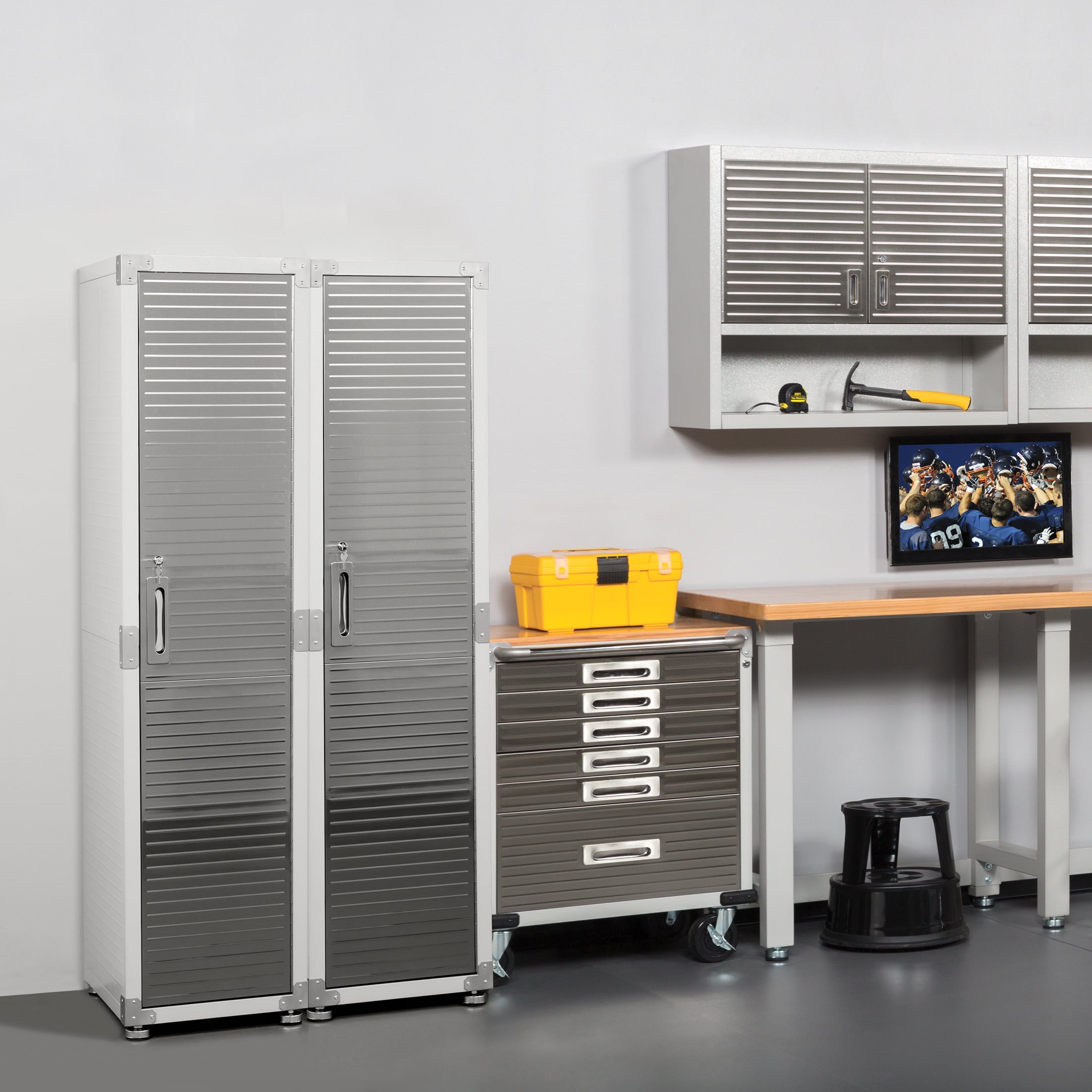 Sturdy Durable Build – Quality solid steel construction with a durable powder-coated finish. Lockable Steel Door – Premium stainless steel door comes with a lock and two sets of keys, providing the peace of mind that you will have the necessary security for your important items. Height Adjustable Shelving – Includes three removable and adjustable solid steel shelves. Additional shelves available for purchase.