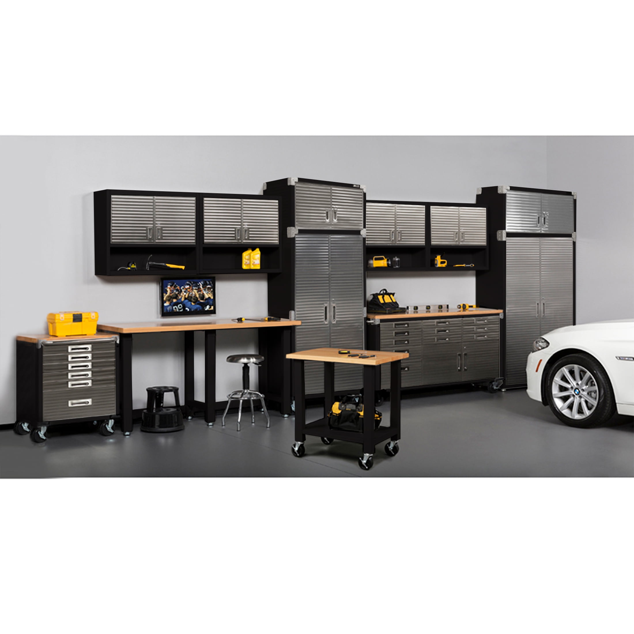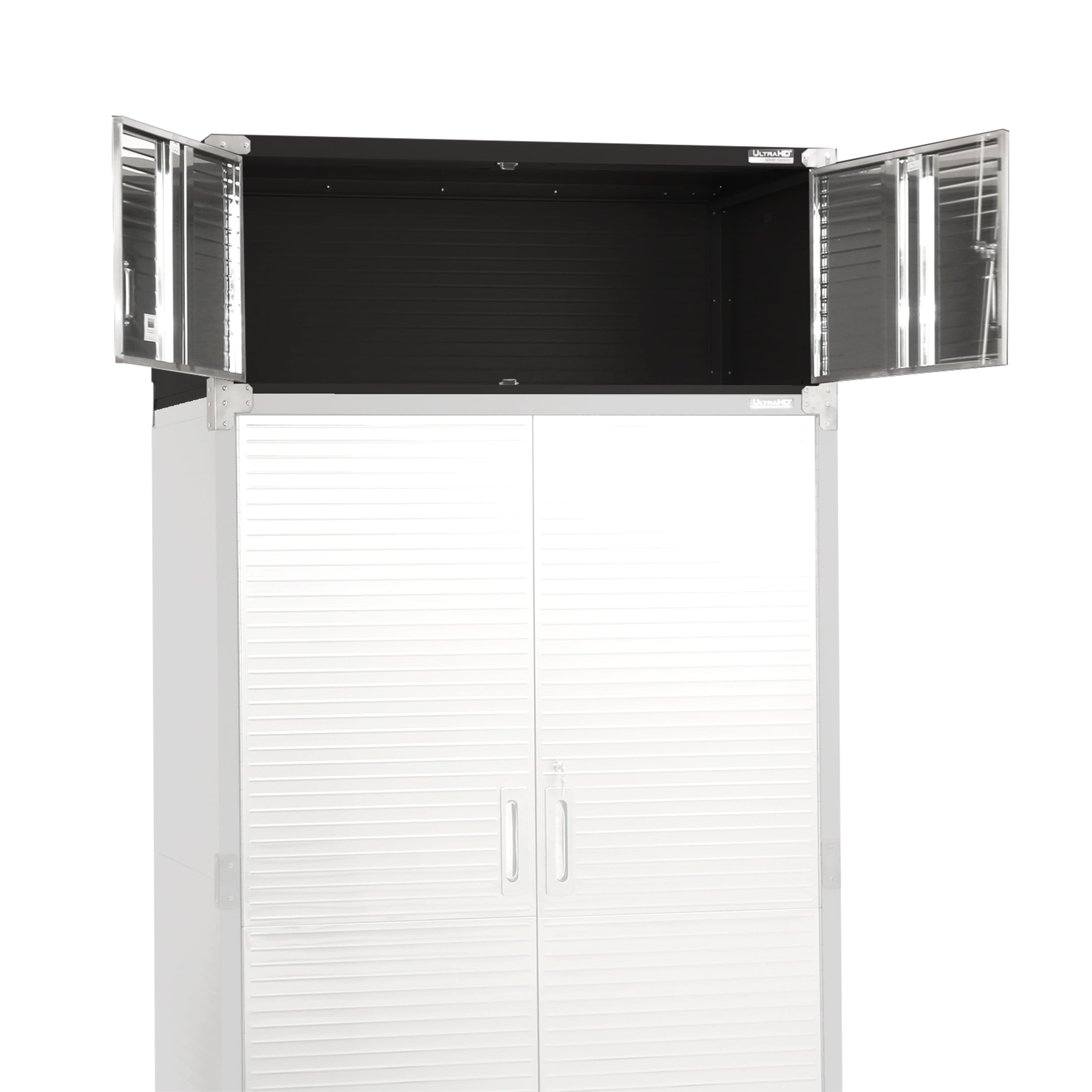 Create additional vertical space to your existing UltraHD Mega Storage Cabinet with this compatible Stacker Cabinet! Measuring 48” wide by 24” deep by 18.5” high, this cabinet can easily be added to the top of your Storage Cabinet to expand your storage space. Constructed of heavy-duty steel, this unit can store your supplies and tools securely and can hold up to 300 lbs., making it perfect for any garage, office, warehouse or mailroom. This item features ULTRAGUARD® fingerprint-resistant stainless steel cabinet doors. It’s easy to assemble and includes a mounting strap, making set-up a breeze.
