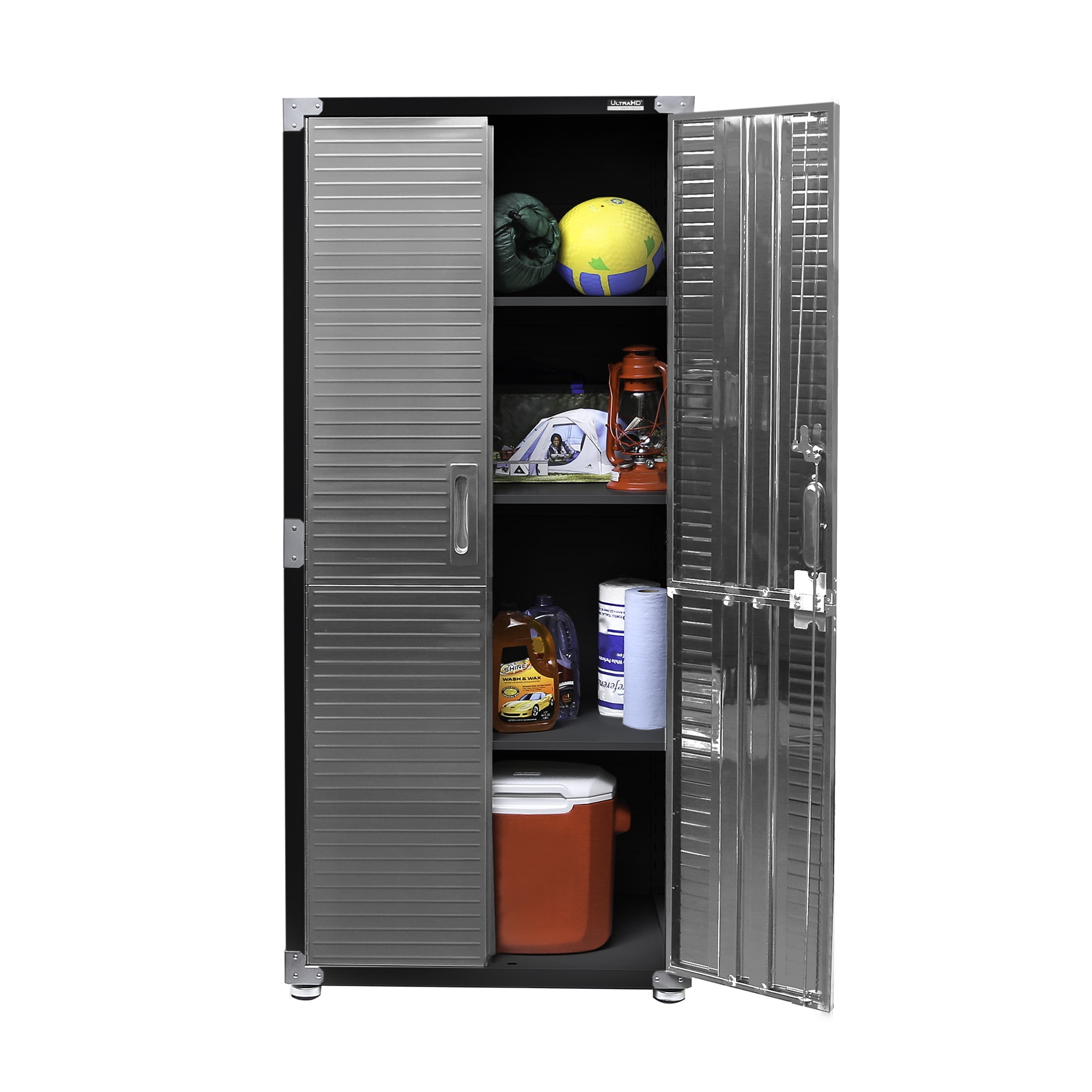 STURDY ALL-STEEL STORAGE – Our storage cabinet is compact (2. 5′ W) and designed for high-capacity commerical-use in professional environments. Cabinet includes wall straps for additional security when fully loaded. LOCKING STAINLESS-STEEL DOORS – Secure your things behind stainless-steel doors finished with UltraGuard fingerprint-resistant coating. Lock the doors with the included keys for superior security. ADJUSTABLE SHELVES – Cabinet includes 3 solid-steel shelves that are adjustable at 1-inch increments. Remove or rearrange shelves as desired to store tall pieces of equipment, appliances, gear, and more!