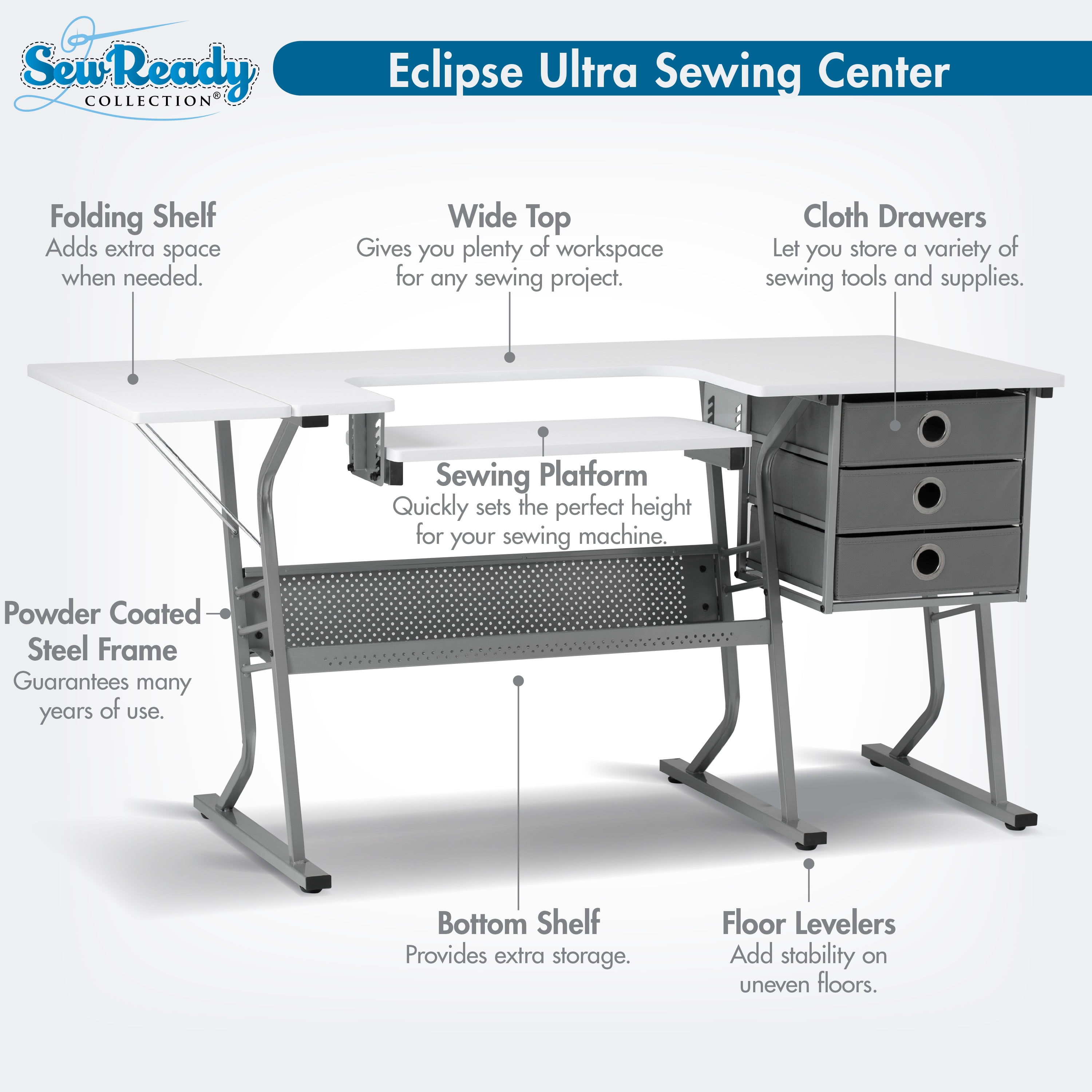 Sew Ready Eclipse Ultra Sewing Machine Table In Gray / White