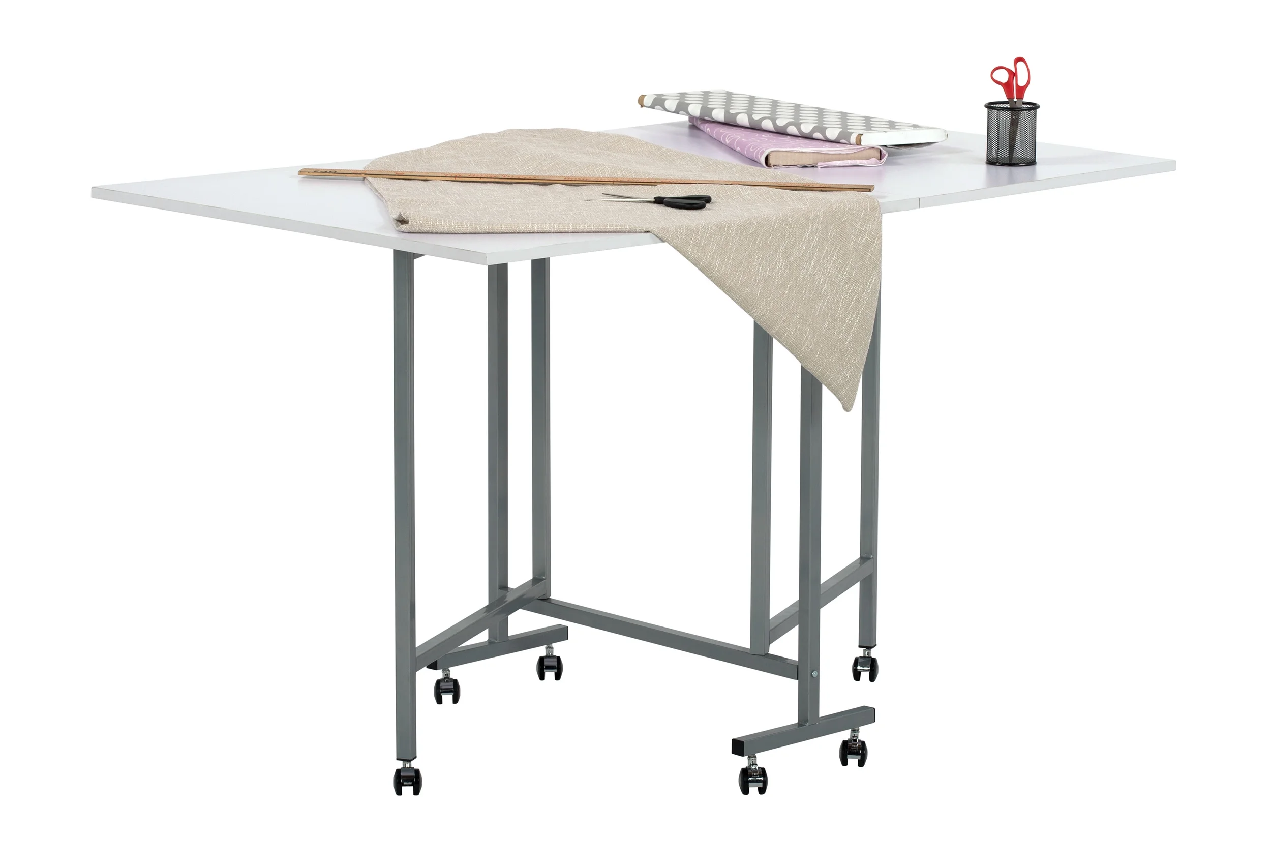 Sew Ready Mobile Folding Craft Hobby & Cutting Table in Silver / White