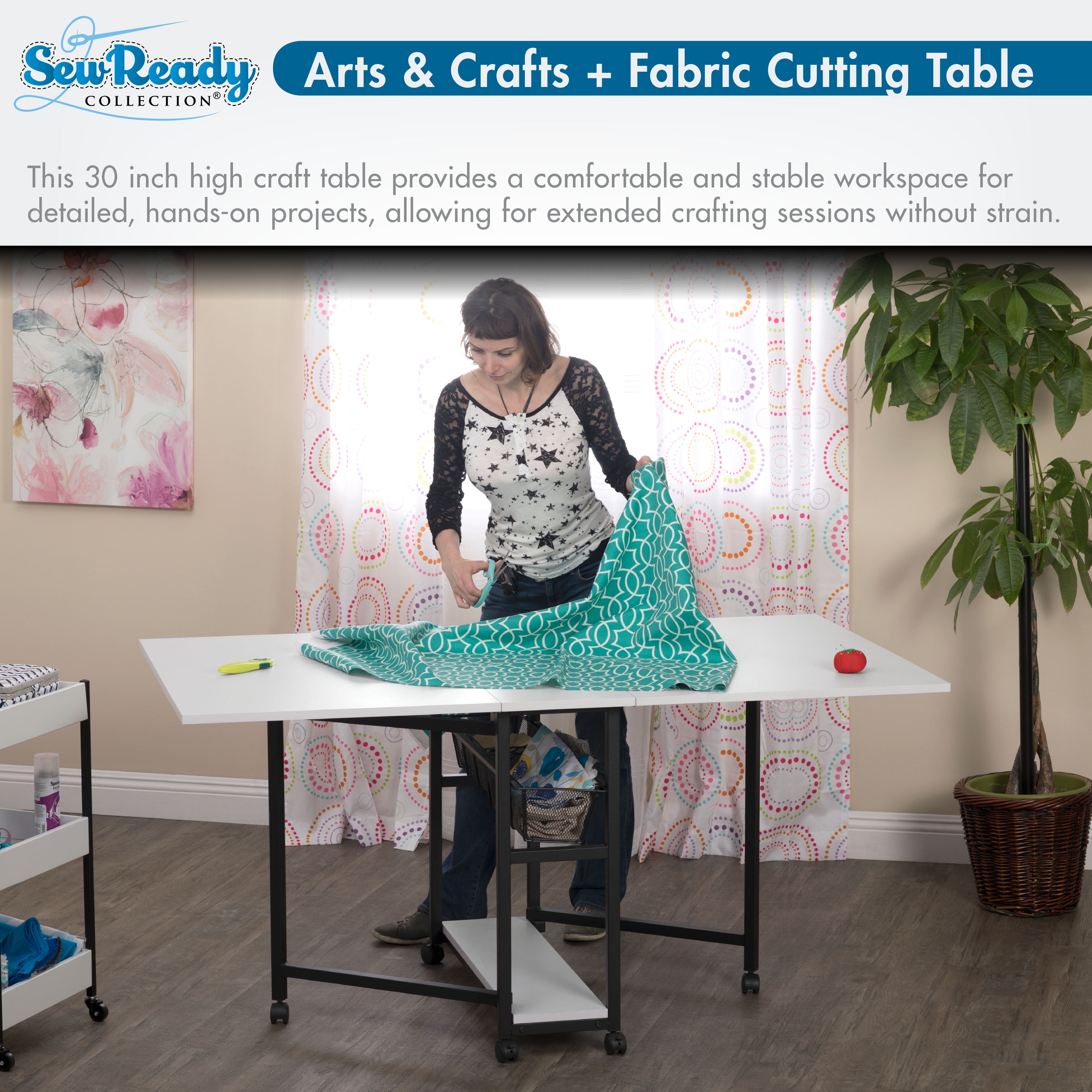 Sew Ready Mobile Fabric Cutting Table with Storage 30″ H in Charcoal/White