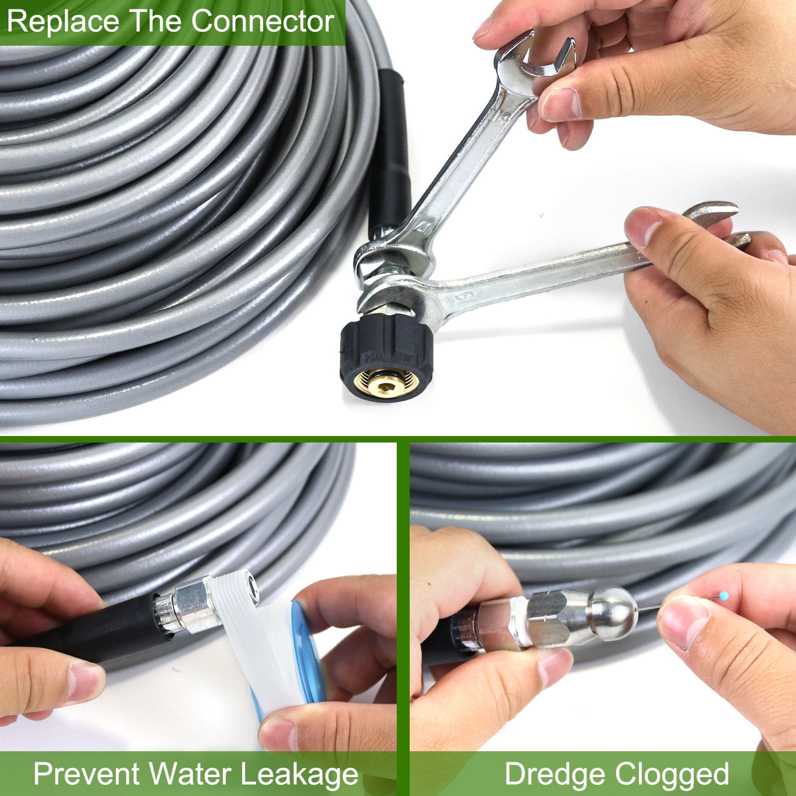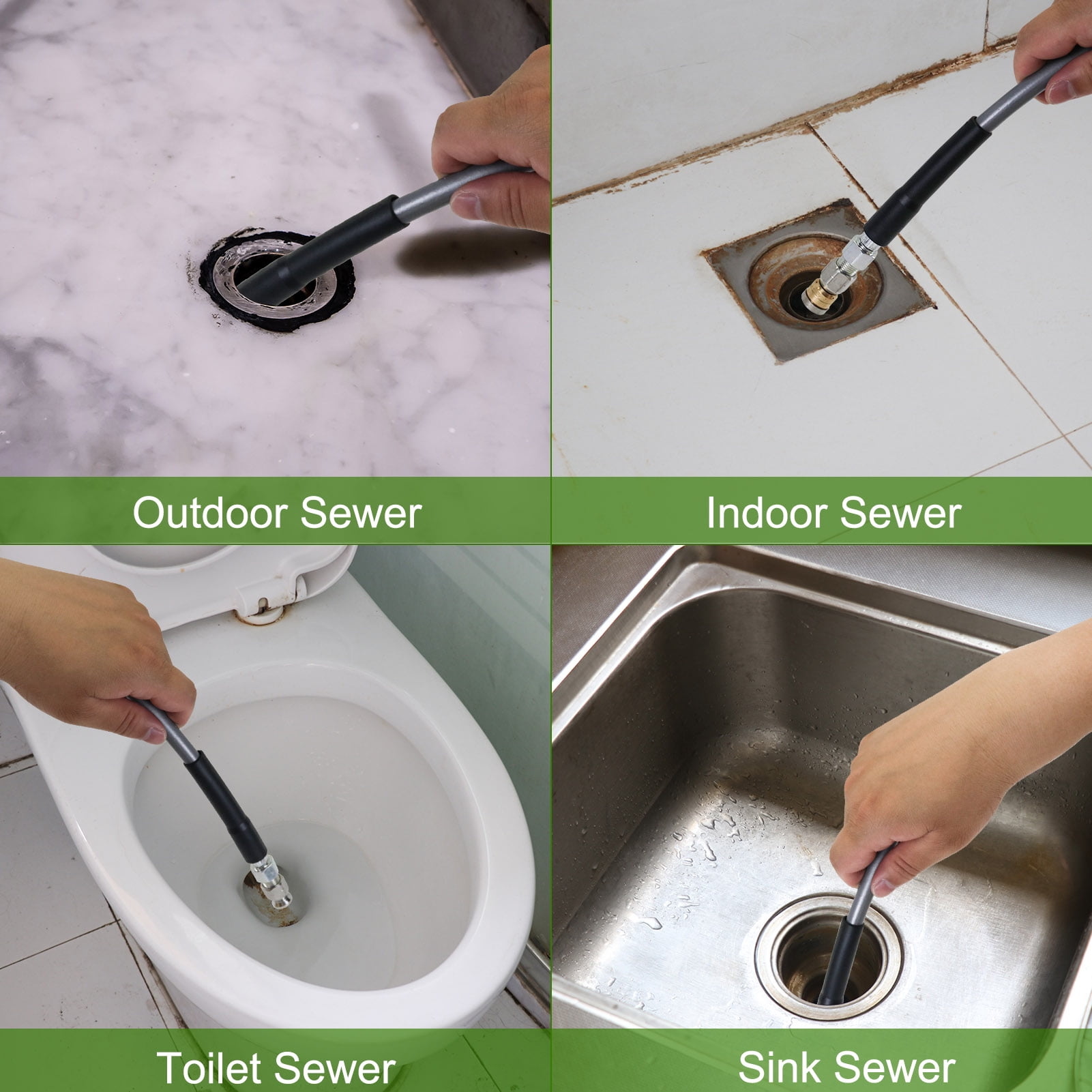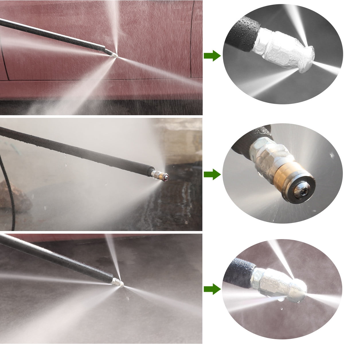 The water jet drain cleaner can be used to remove indoor or outdoor drainage of many types, combined with any type of pressure washer, can easily flush obstacles and maintain flow. High pressure washer hoses can be used to clean cars, motorcycles, floors, windows, driveways, roofs, siding, etc. Fea