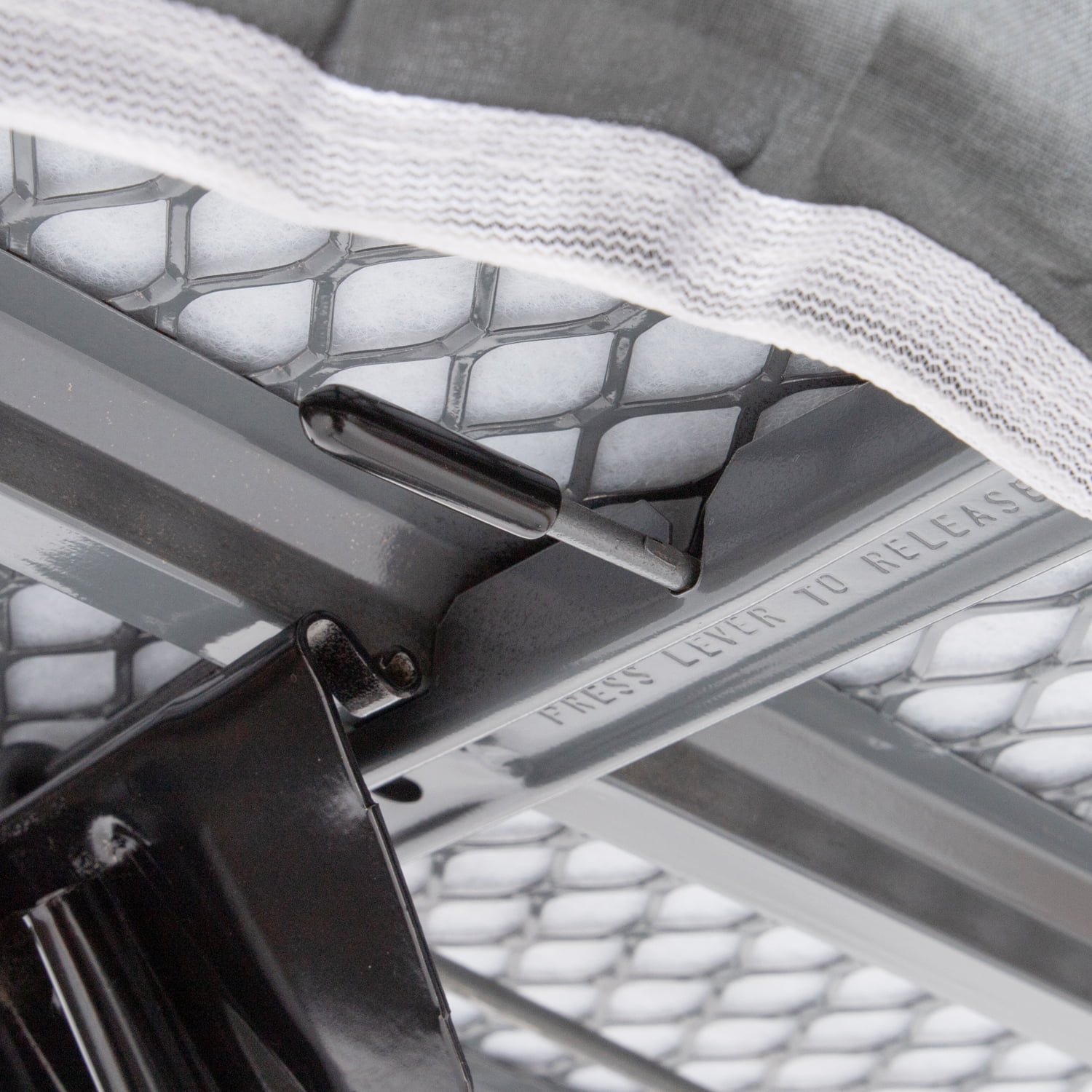 Experience ironing convenience with the Seymour’s Wardroboard, an ingeniously designed ironing board that elevates your ironing game. It’s versatile height adjustment, reaching up to 34 inches, ensuring comfortable and ergonomic use for everyone. The board’s thoughtfully compact 48-inch length maximizes space without compromising on ironing surface, fitting seamlessly into your home. Crafted for heavy use. The innovative mesh top lets steam flow through your garments effortlessly, guaranteeing faster, smoother, and wrinkle-free results. The all steel frame and 1.38 inch diameter legs ensures long lasting stability and durability. Our ironing board boasts a luxurious ¼ inch polyester fiber pad topped with a 100% cotton stain-resistant cover, offering a premium ironing surface that pampers your clothes.