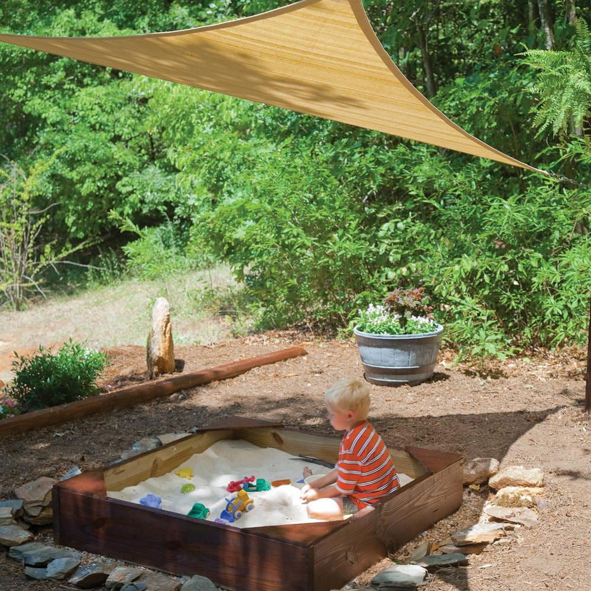 ShadeLogic Sun Shade Sail Heavy Weight 16 Foot Triangle – Sand. 25721. Sun Shades. The ShelterLogic 16 foot x 16 foot x 16 foot triangle sun shade sail is the do-it-yourself shade product that allows you to create your own unique shade design. Sails easily attach to any sturdy connection point to provide sun protection and personal design where you need it. Made with a heavyweight 230GSM breathable polyethelene, this sail is designed for ease of installation, and is UV stabilized inside and out. Each sail is shipped ready to install and includes a basic hardware kit for easy attachment to the house, building, tree or post. Sails offer an excellent shade solution for backyard decks, patios, pools, play areas, camping, or any place shade is needed. Combine more than one sun shade sail or mix shapes to create your own unique outdoor shade and living space. If inclement weather is forecasted, take down and store away sun shade sail to prevent damage. The ShelterLogic sun shade sail is easily cleaned with mild soap and water, using a sponge or soft cloth….