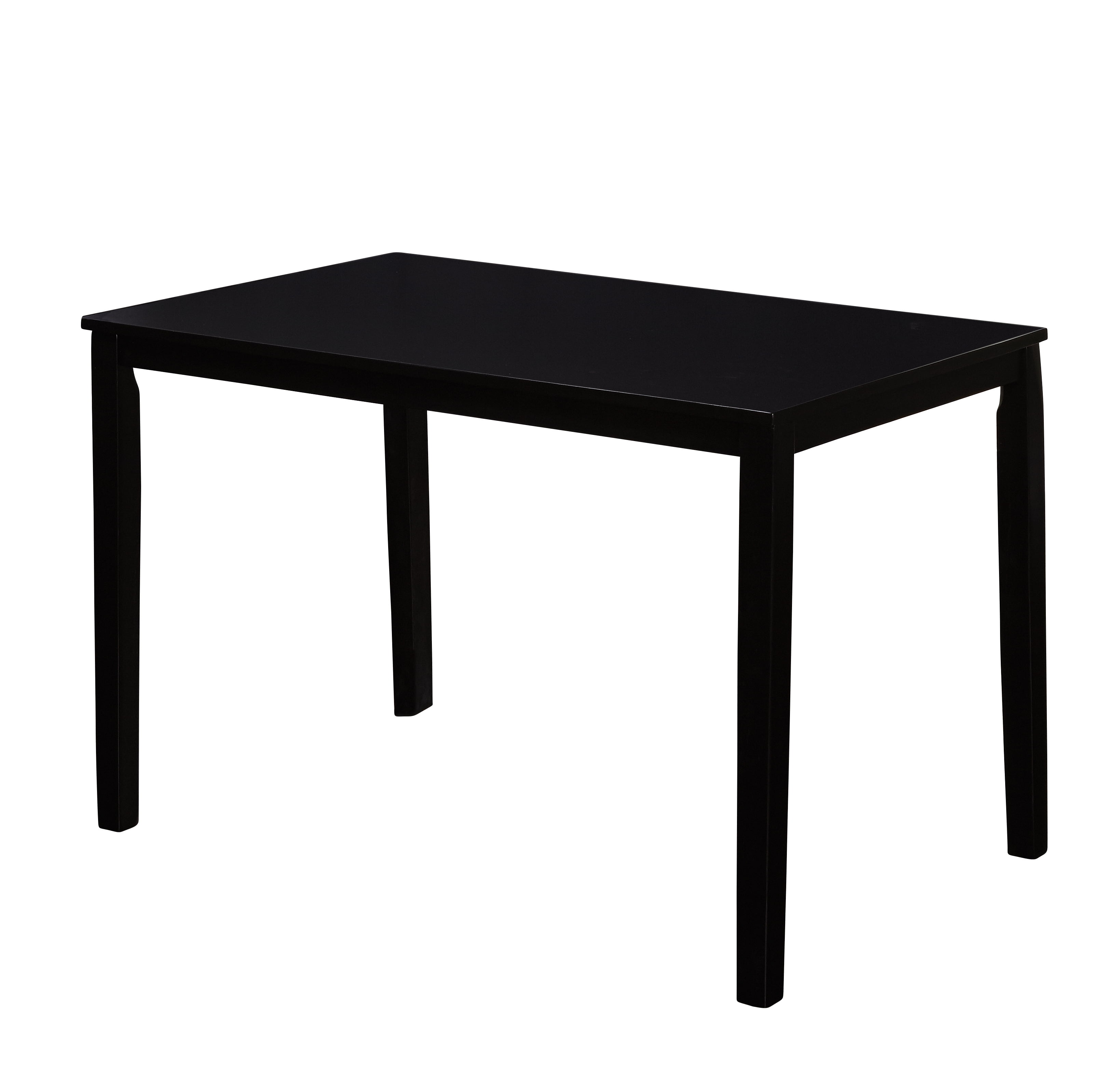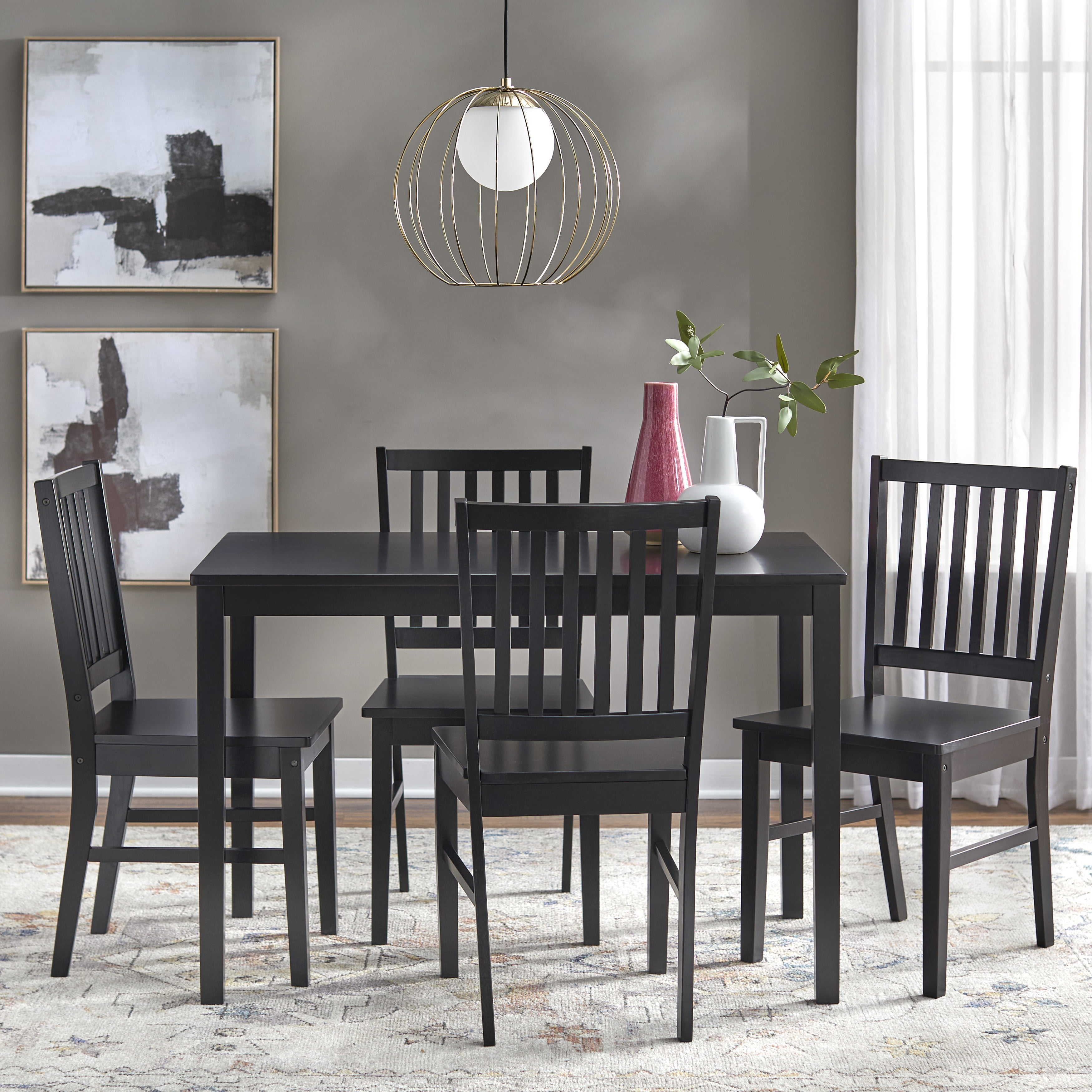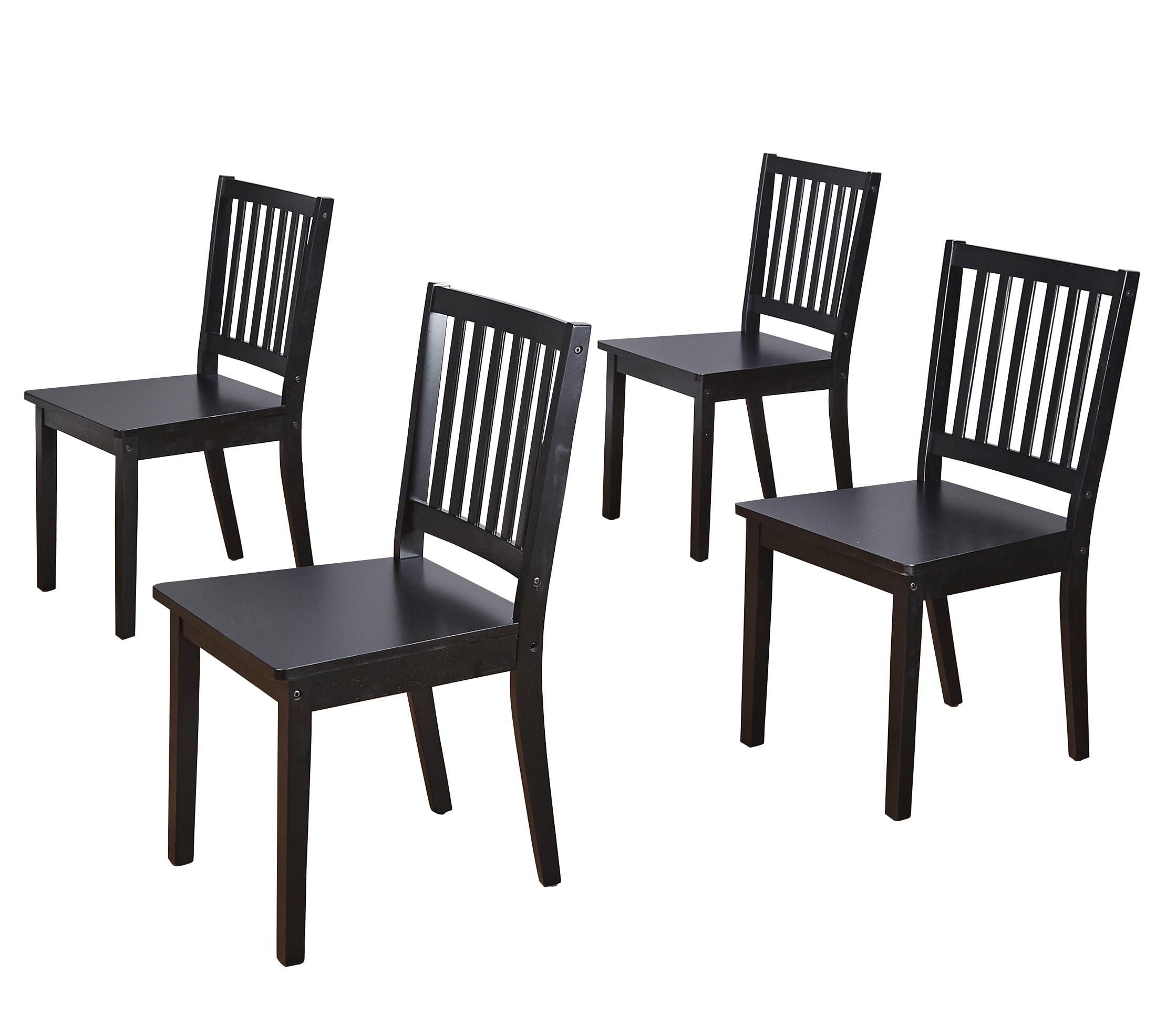 Updated shaker style table and chair set Spacious slat back chair design Transitional design works well in many styles of room decor Set includes: one (1) dining table and four (4) dining chairs Finish is available in Black, Espresso, and White Constructed of MDF and durable Rubberwood Ships in two (2) cartons, assembly required Chair overall dimensions: 17.5″W x 19.75″D x 35.25″H Chair seat dimensions: 17.5″W x 17.5″D x 17.5″H Table overall dimensions: 45″W x 28″D x 29″H For indoor use only Seats 4 comfortably