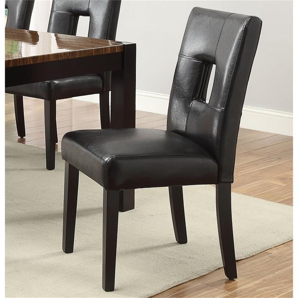 Contemporary Dining Side Chair with Upholstered Seat and Back Black Set of 2 – Saltoro Sherpi Bring These Dining Chairs Into Your Home For An Elegant Touch With A Modern Flair. Black Finished Legs Are Slightly Splayed And Tapered. Cushioned Seat And Backs Are Upholstered In A Deep Black Faux Leather. These Chair Back Features A Square Cut-Out For Comfort And Style.