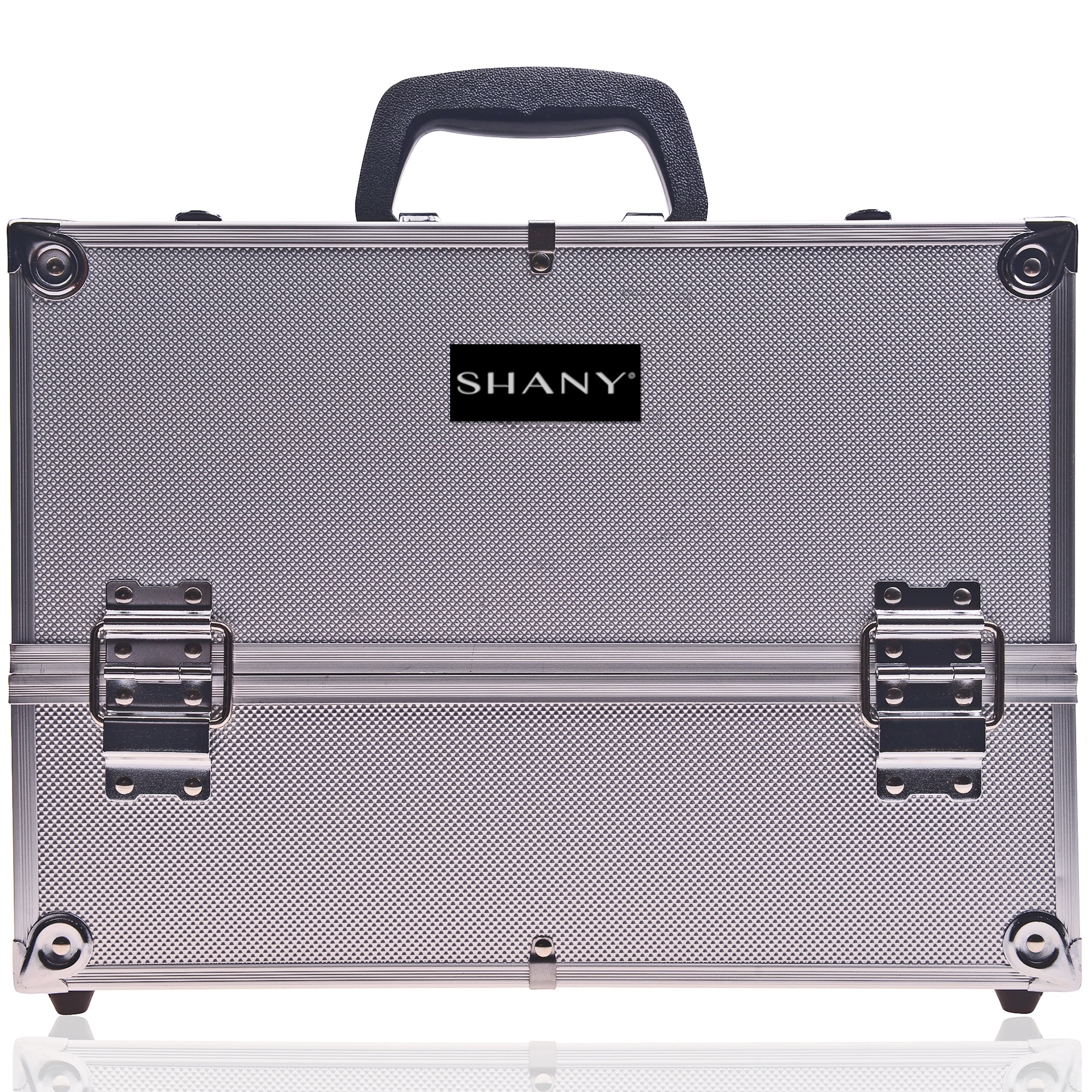 SHANY Essential Pro Makeup Train Case – Silver Storage solution for beauty supplies. Can be used for travel and display purposes. Space fits hair and makeup essentials Made with solid aluminum and Nontoxic ABS plastics Comfortable shoulder straps for convenient portability. Perfect for dance, competitions, etc Makeup artists use the case for business and pleasure.