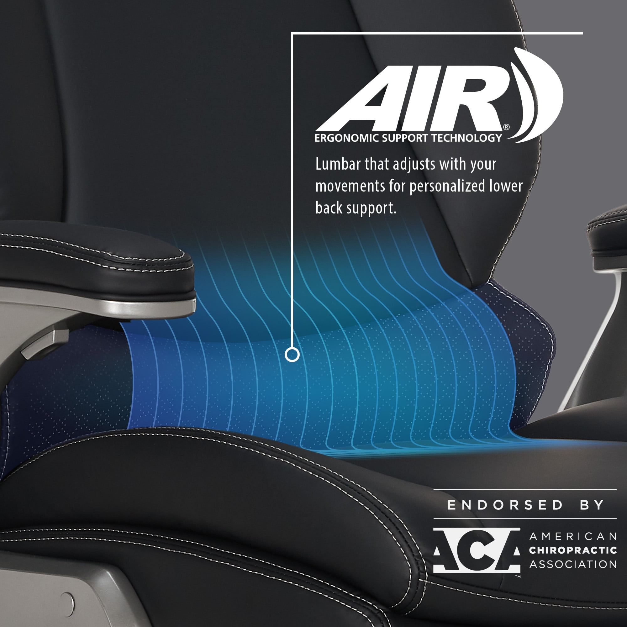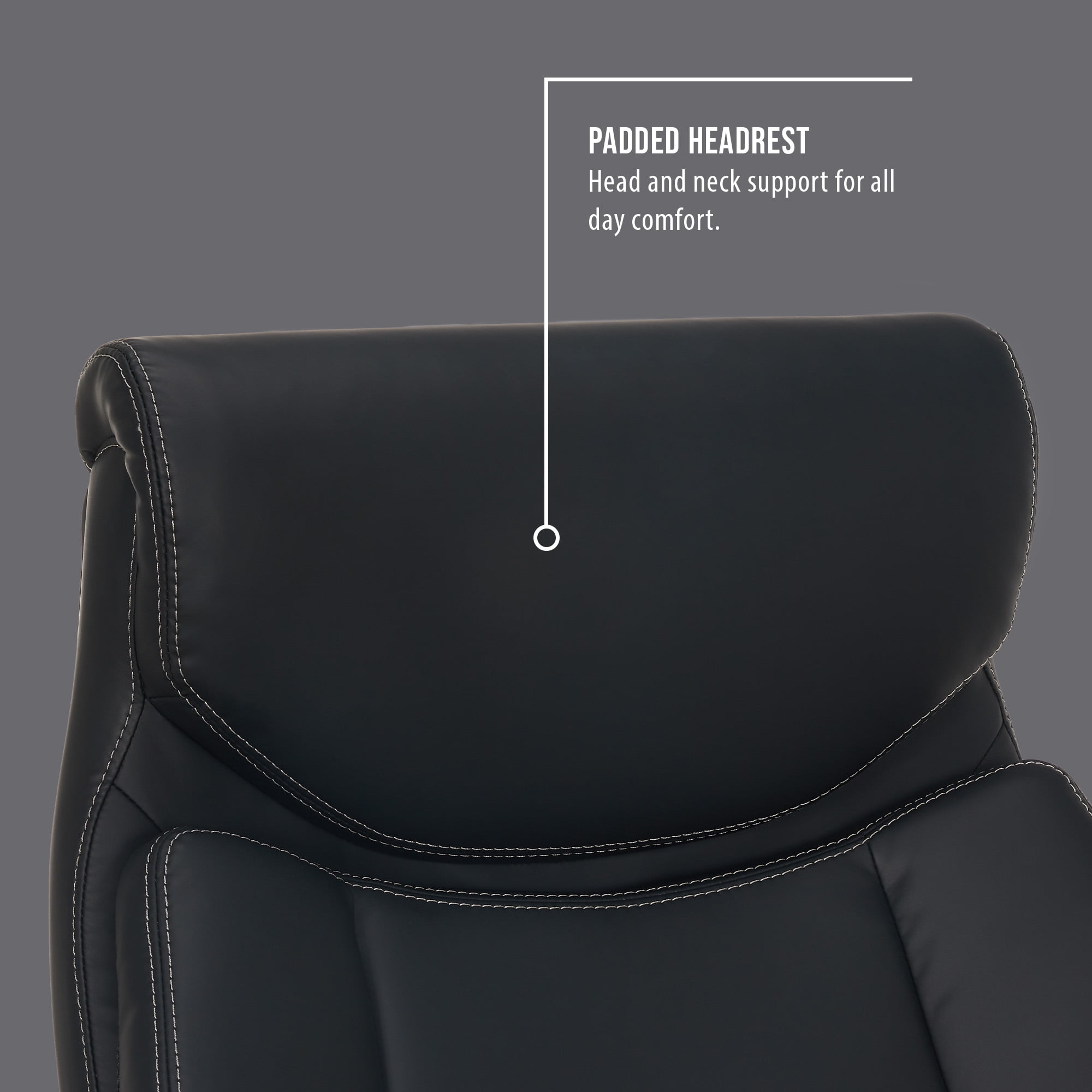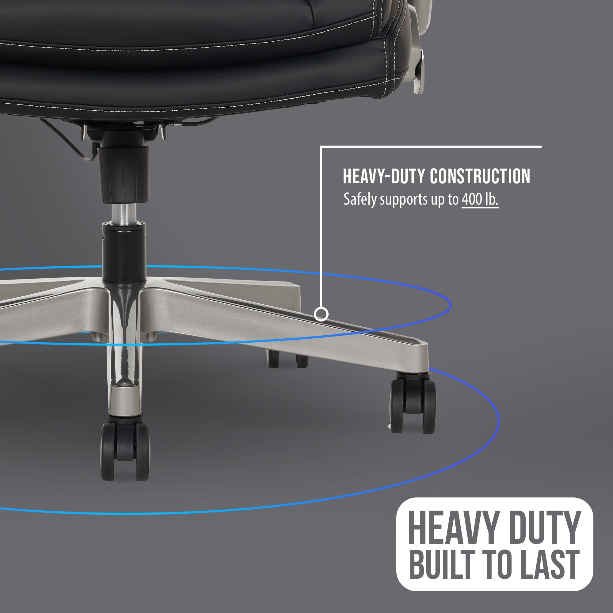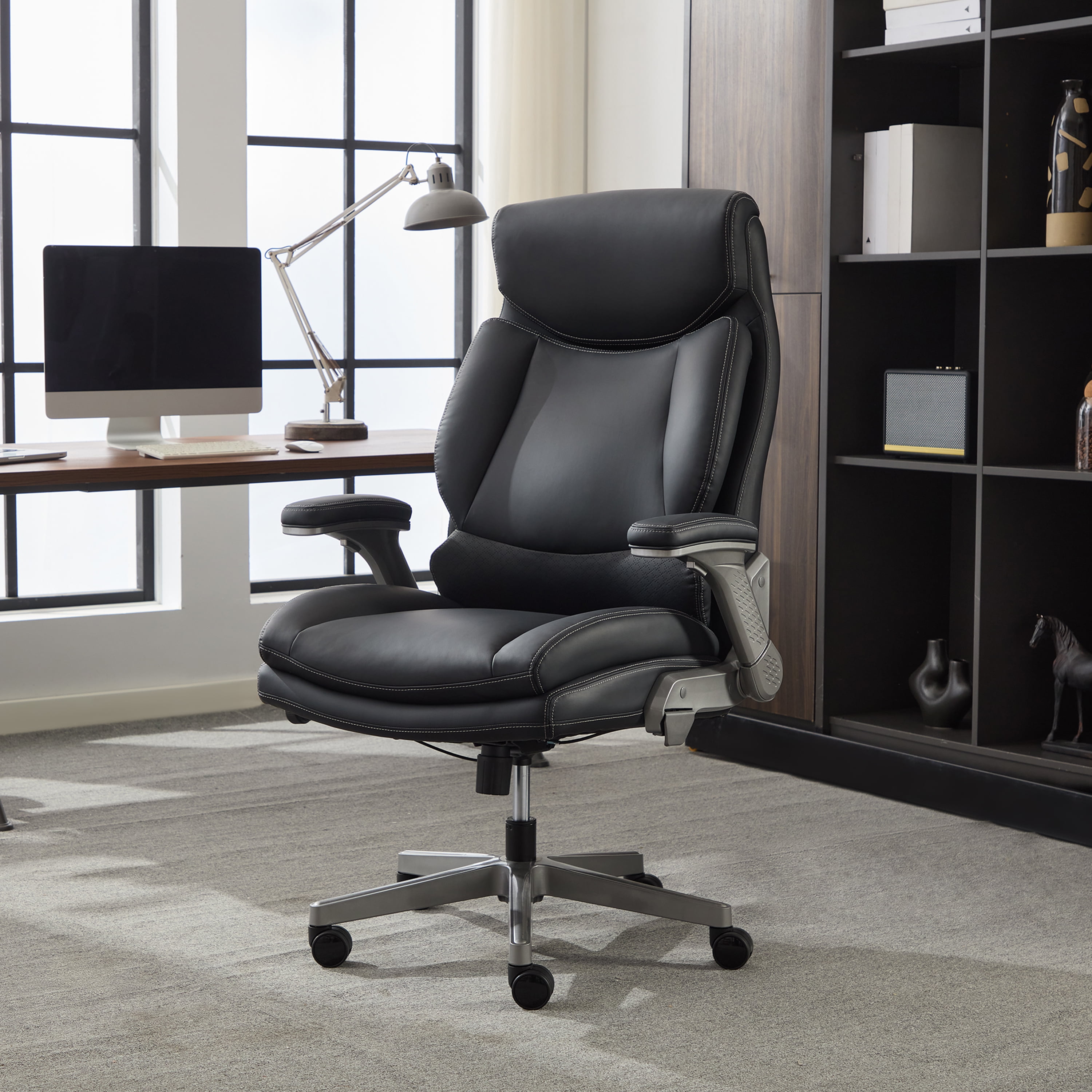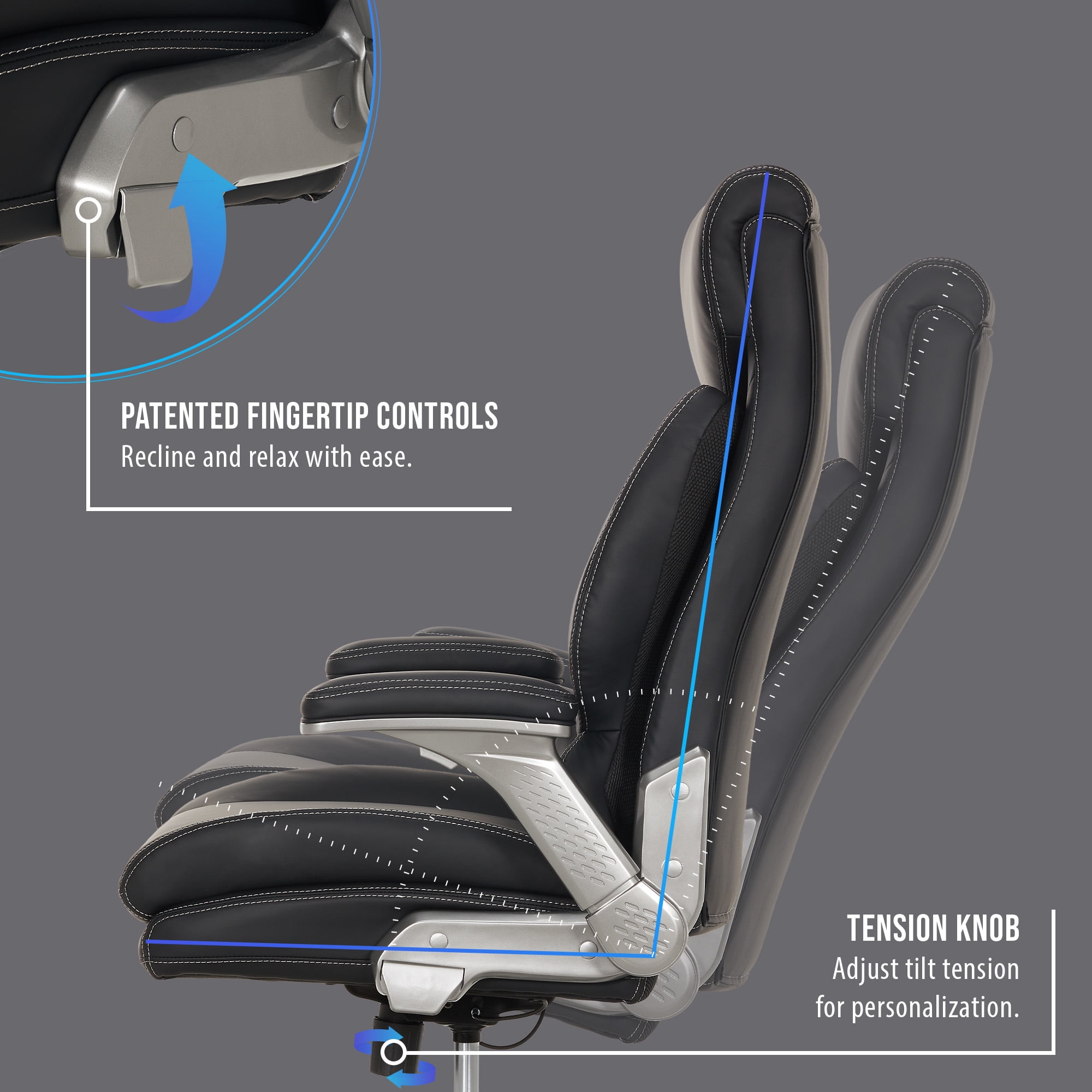 Comfort meets class with the Shaquille O’Neal™ Tarvos Big & Tall Office Chair. This premium seat combines innovative Shaq Comfort™ layers with PureSoft™ upholstery for a stylish, ultra-comfortable experience tailored to larger frames. Designed with AIR Ergonomic Support Technology® and a depth intensity adjustment knob, the advanced lumbar system dynamically adjusts with your movements, giving you personalized lower back support every moment of your day. Enjoy a perfect fit with seat-side patented height adjustment controls, letting you smoothly raise or lower the seat. Flip the fingertip control to recline, and adjust the tension knob to relax with ease. The high-back design includes a plush headrest and height-adjustable, padded flip-up armrests, providing full-body ergonomic comfort for hours of productive seating.