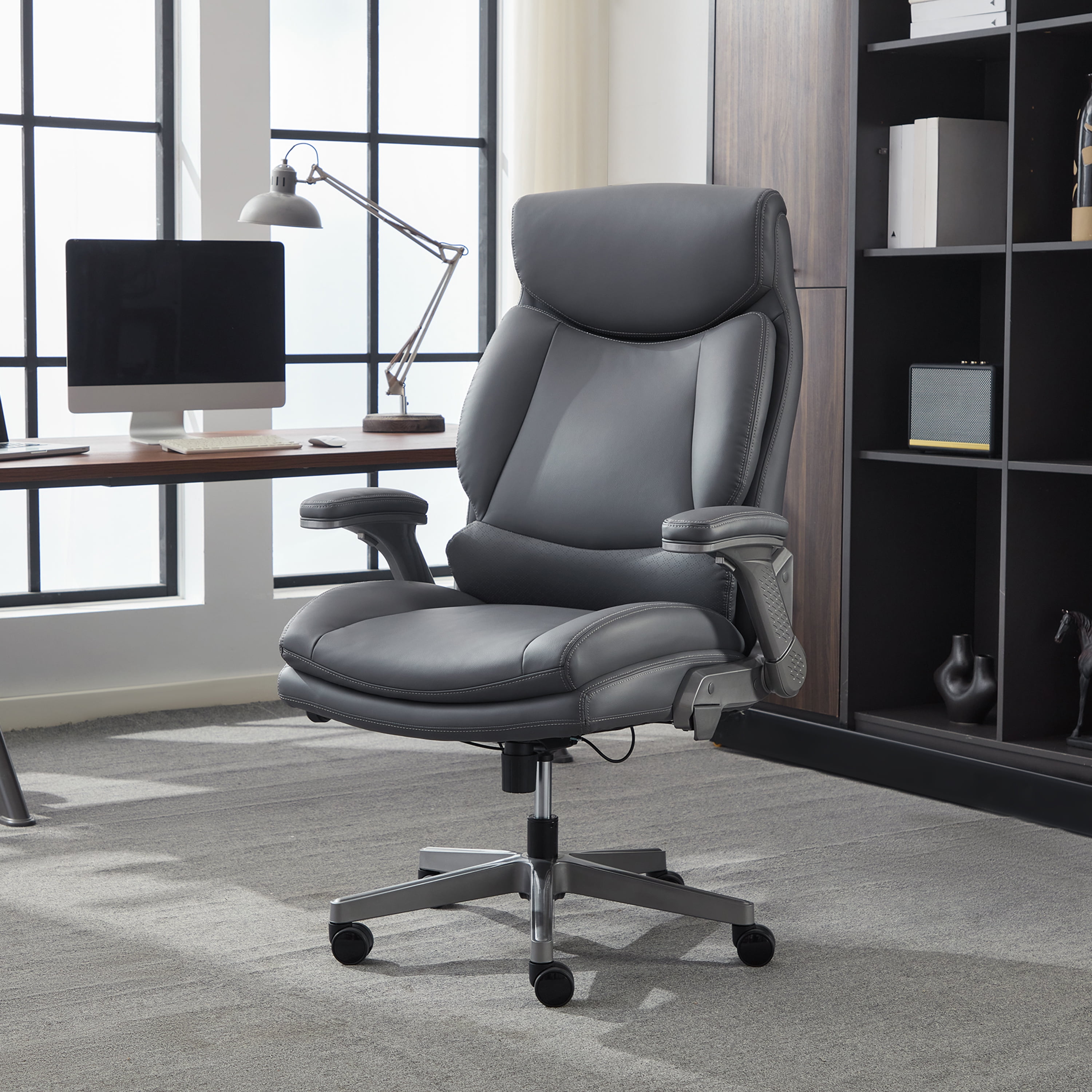 Shaq Tarvos Premium Ergonomic Big & Tall Office Chair, PureSoft Upholstery with Height Adjustable and Flip-Up Arms, Gray