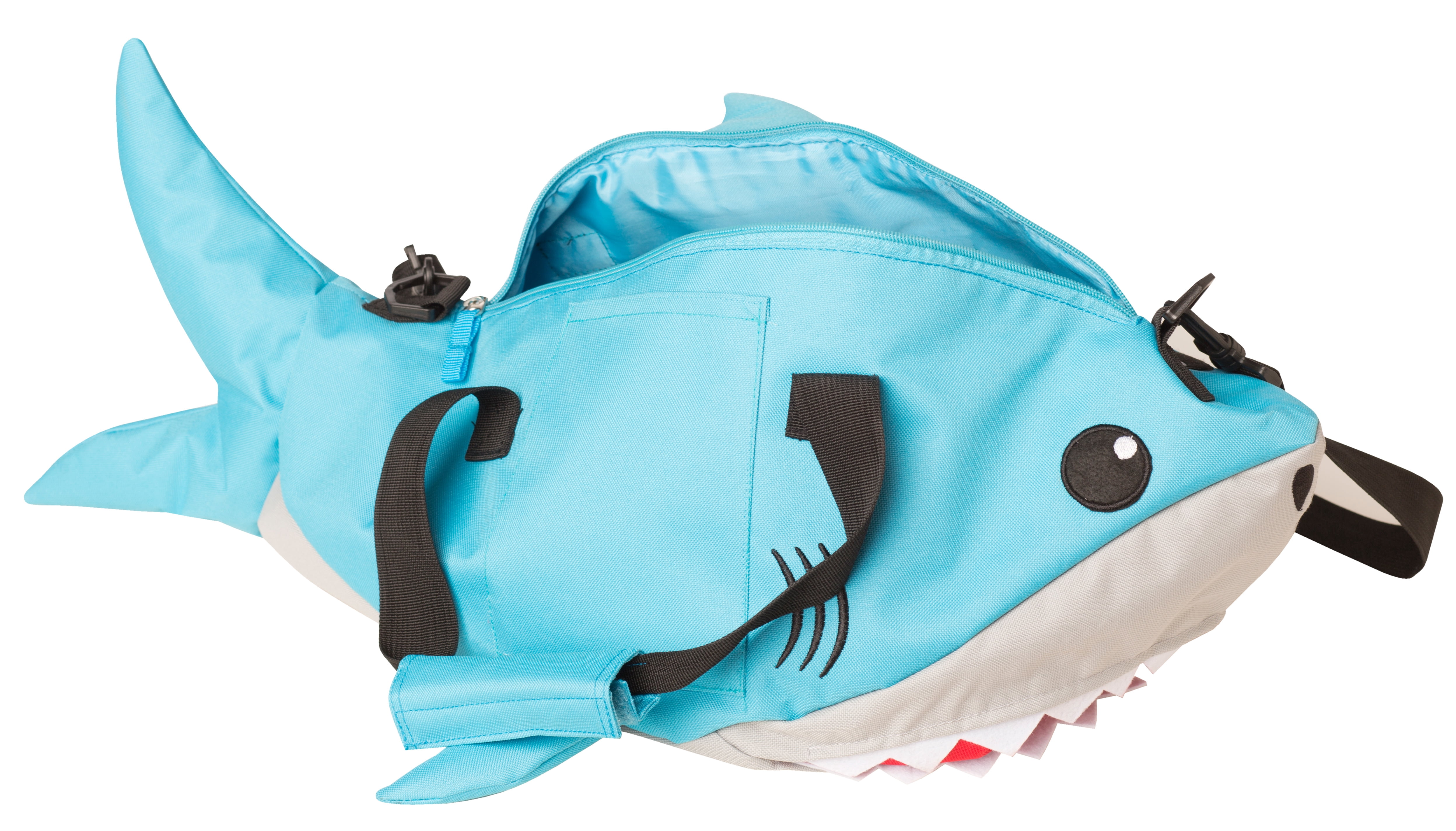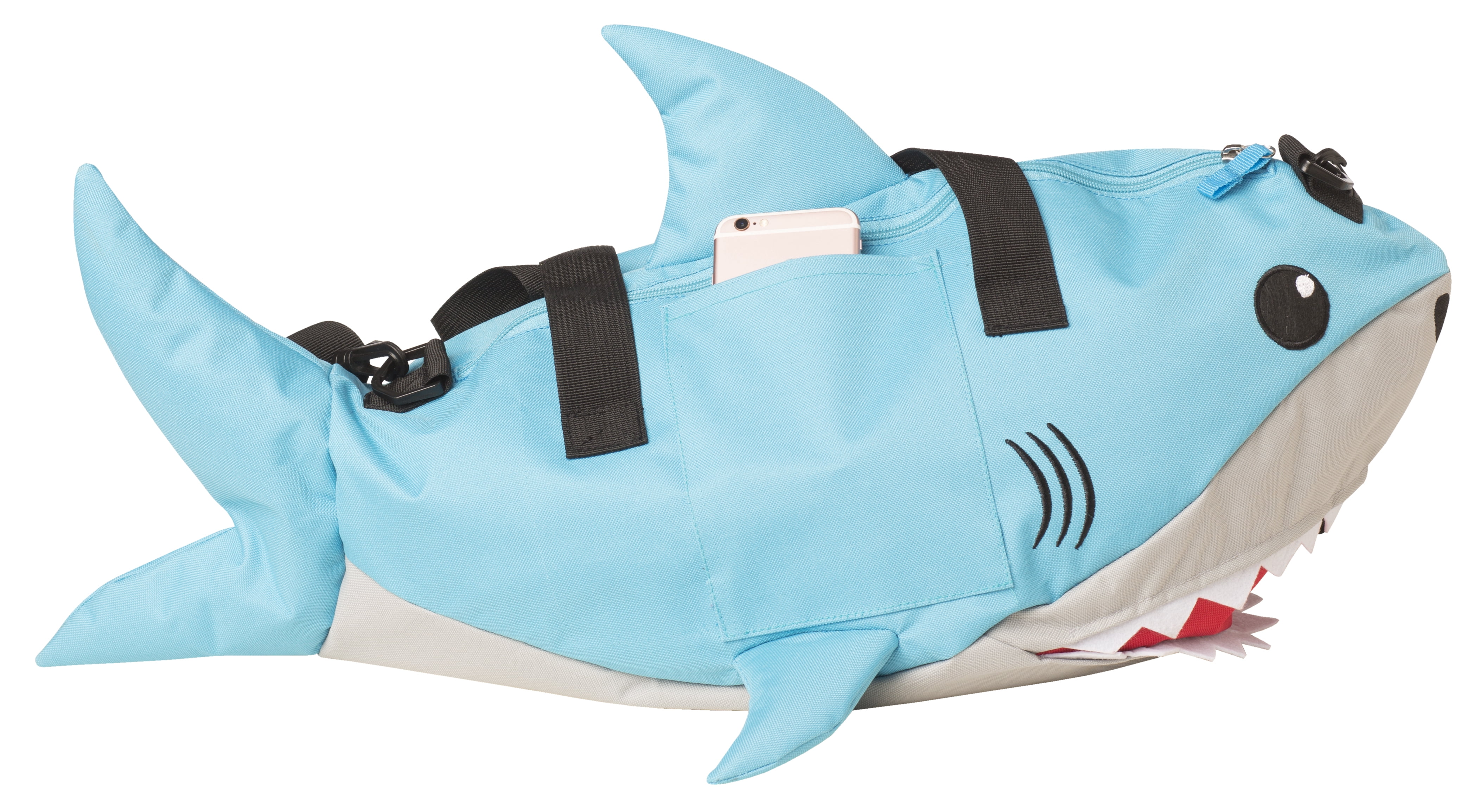 Packing is fun when you choose the Shark Duffle bag from FunDuffles(TM). The fun way to pack and travel! Perfectly sized for an overnight or day trip, this small duffle has an inner lining with zippered pocket, an outside pocket large enough for all your necessities, has adjustable should strap and cushioned handle straps. Ideal for children of all ages. Quality design throughout makes the Shark duffle bag durable and ready for your next fun packing adventure. Unisex design for everyone.