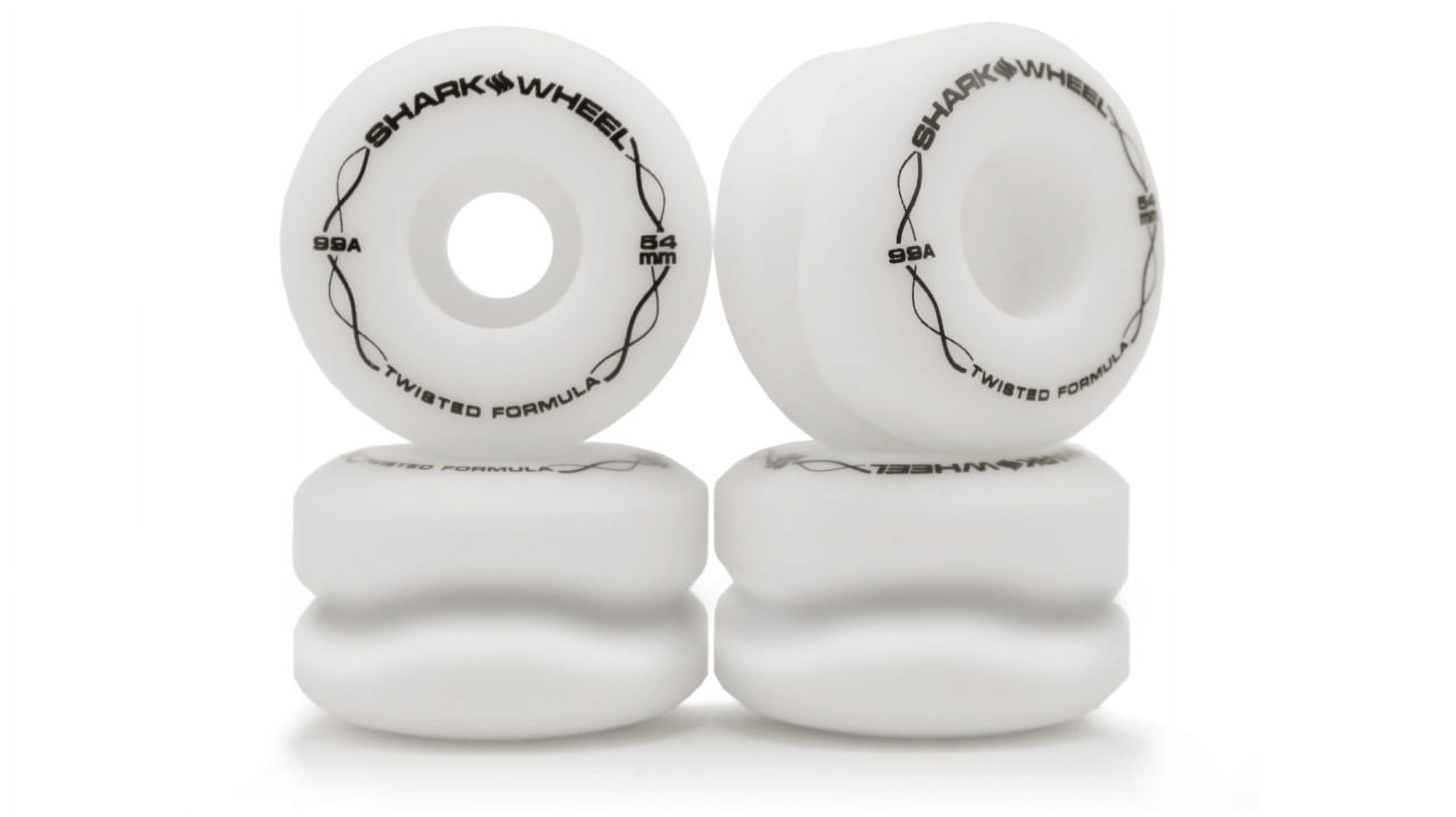 54mm, 99a twisted formula Shark Wheels Shiver 150 mm standard trucks Shiver ABEC 9 bearings with built-in spacer and washers. Black grit grip tape with 1 in. Hardware included. Perfect concave and flex for maximum pop.