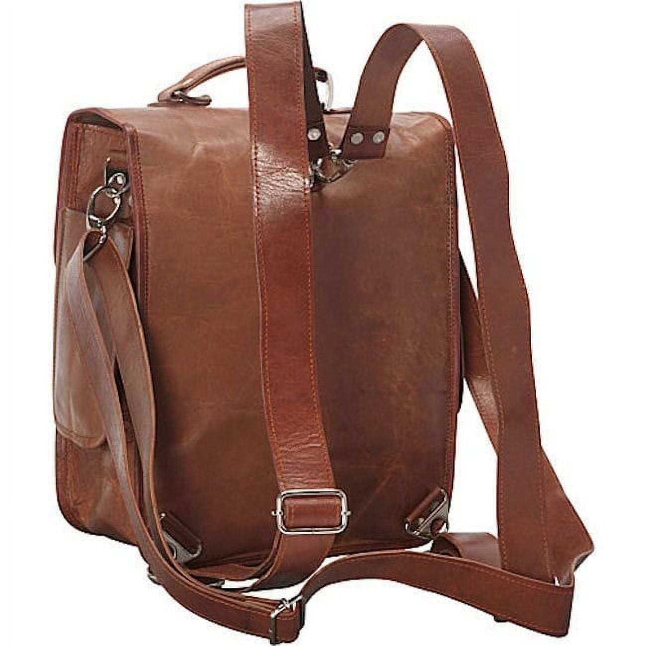 This vintage inspired bag has a convertible design that can be carried as a classic brief, or slung over your shoulder, or your completely hands free Backpack for city travel! The SHARO Classic Leather Three-in-One Backpack/Brief/Messenger bag is made from rich leather and features a small shape and a classic design with a flap top, polished hardware and buckle straps, a top grab handle, and a convertible strap system for versatility. This bag has a durable main compartment with a durable canvas lining that includes an open center pocket, slip pockets, and zipper pockets to hold valuable items. An exterior front pocket offers added storage for your cell phone, keys, or other frequently used items. Built to last a Lifetime!.