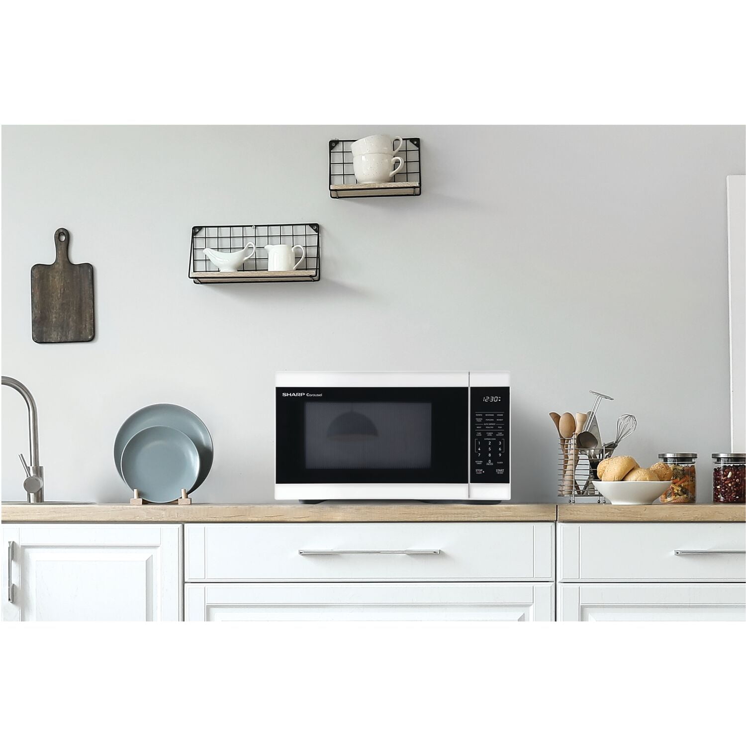 The Sharp SMC1161KS, Mid-Size, 1.1 cu. ft., 1000 Watt Microwave Oven in Black takes up less space on your countertop than our family-sized models, and is our smallest oven for a full-size dinner plate. The SMC1161KS is packed with thoughtful and innovative features. Convenient preset buttons make cooking and reheating favorite foods and beverages a breeze. Express Cook offers One-Touch cooking for up to six minutes. The +30 key can be used for an instant start and to add time during cooking. Easy-to-clean with stylish Gray interior, and LED light complement your style. The 12.4 in., dishwasher-safe glass plate of the Carousel turntable system makes cleanup easy. The White LED display is bright and easy-to-read. Now that is Simply Better Living. With decades of experience designing innovative cooking appliances, it’s easy to see why home cooks throughout the world trust Sharp Carousel1.1 cu. ft., 1000 Watt, Microwave Oven by Sharp