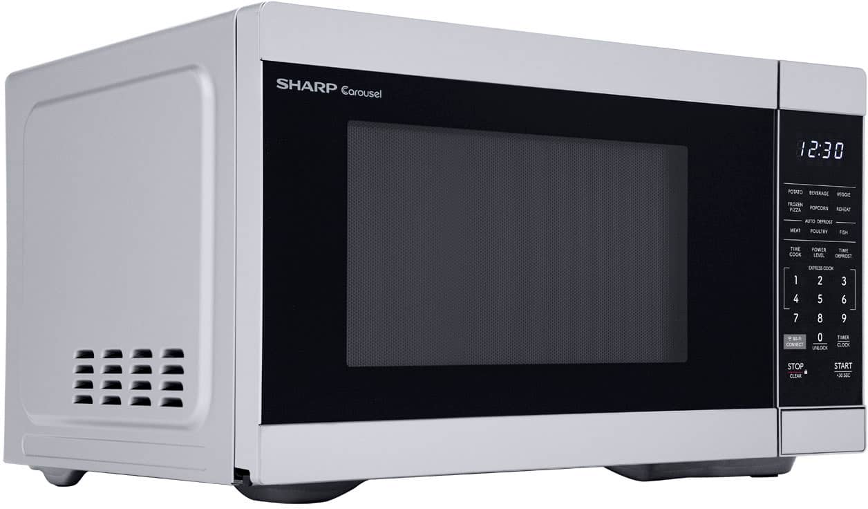 The Sharp SMC1169KS, Mid-Size, 1.1 cu. ft., 1000 Watt Microwave Oven in Stainless Steel is specifically tuned to achieve optimal popping results from the leader in microwave popcorn, Orville Redenbacher’s. Simply touch the “Popcorn” button to choose the Classic Size (3.3 oz) or Single Serve Mini Bag (1.16 oz) of Orville Redenbacher’s Microwave Popcorn. Then sit back and enjoy light and fluffy popcorn with the delicious, buttery flavor of Orville Redenbacher’s Gourmet Popping Corn. The SMC1169KS is packed with thoughtful and innovative features. The SMC1169KS Works with Alexa using helpful commands to make the most of this oven’s features. What could be easier than just asking, “Alexa, defrost 1 pound of chicken” to your Amazon Echo device? Precise Cook sensor technology takes the guesswork out of defrosting, cooking, and makes reheating food and beverages a breeze. The Melt and Soften controls of the SMC1169KS will melt cheese and even soften ice cream. Express Cook offers One-Touch cooking for up to six minutes. The +30 key can be used for an instant start and to add time during cooking. Easy-to-clean Stainless Steel finish with stylish Gray interior, and LED light complement your style. The 12.4 in., dishwasher-safe glass plate of the Carousel turntable system makes cleanup easy. The White LED display is easy-to-read and will always be set to the correct time once connected to Wi-Fi. Now that is Simply Better Living. With decades of experience designing innovative cooking appliances, it’s easy to see why home cooks throughout the world trust Sharp Carousel.