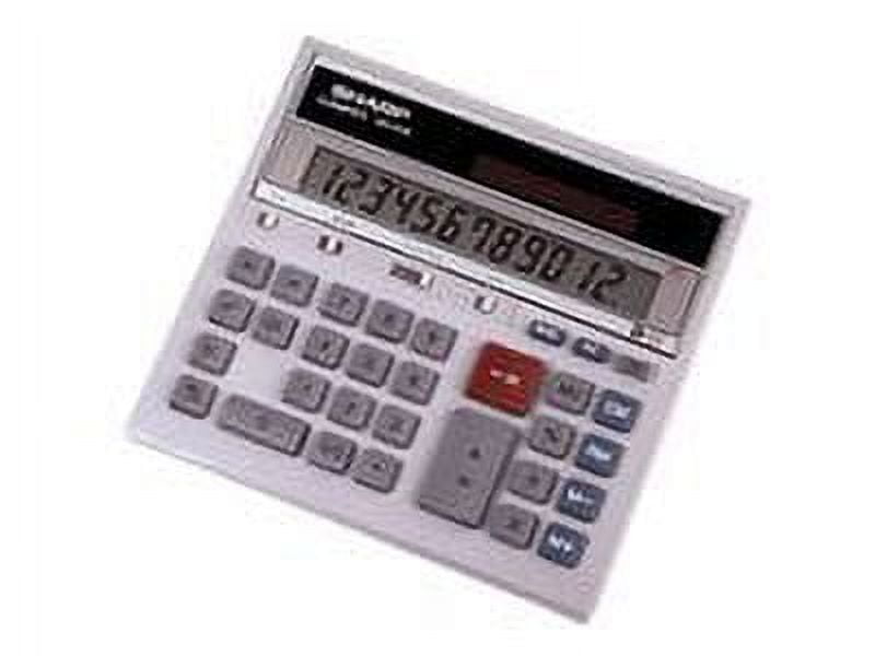 Sharp 12-Digit Commercial Desktop Calculator with Kickstand, Grey Extralarge LCD displays larger digits to prevent reading errors Extrawide keyboard allows easy data input for consistent use Multiple Use key saves you time and increases efficiency Twinpower operation provides consistent use in any environment Includes percent key, square root, sign change key, auto power off, accumulation function, and more