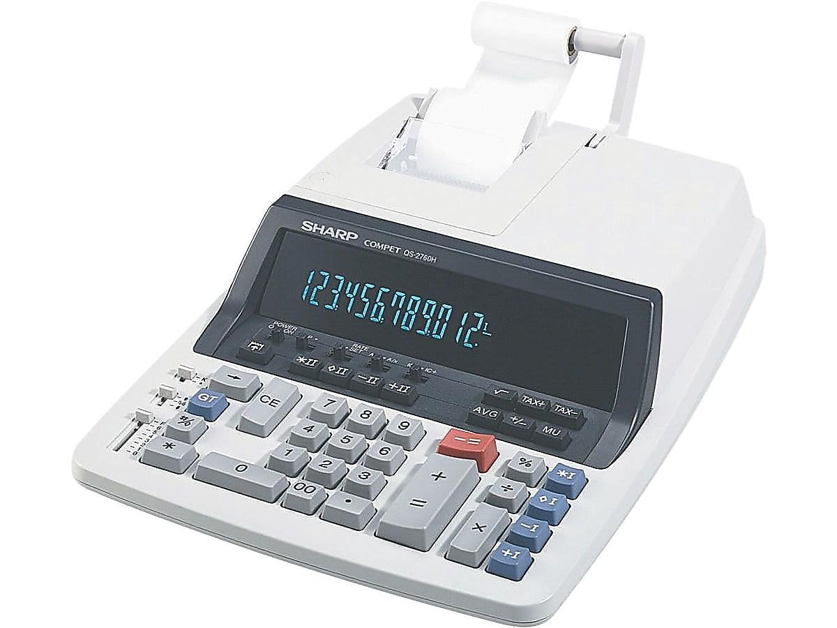 12-digit calculator provides heavy-duty durability that’s perfect for power users and the everyday advanced user in busy office settings. Two-color, 4.8 line-per-second ribbon printer is fast and reliable for consistently legible results. Large, fluorescent display offers easy viewing to help prevent reading errors. Professional keyboard layout with a left-side total key helps you quickly and accurately input data for fast calculations with minimal errors. AC-powered calculator also includes markup key, percent changes, automatic add-on/discounts calculations, automatic tax keys and more. Sharp QS2760H 12 Digit Professional Heavy Duty Commercial Printing Calculator, Off White, Gray, 1 Each (Quantity)