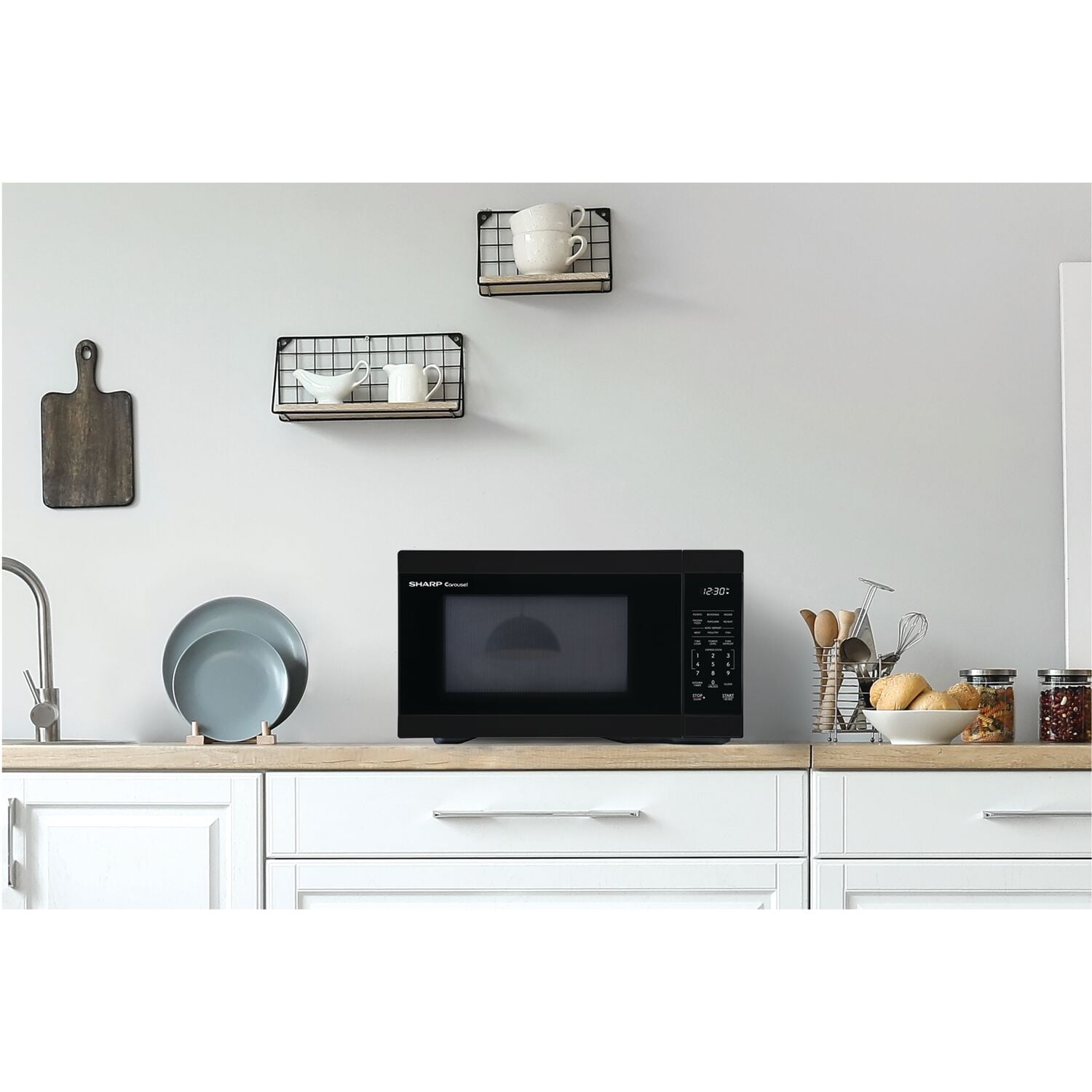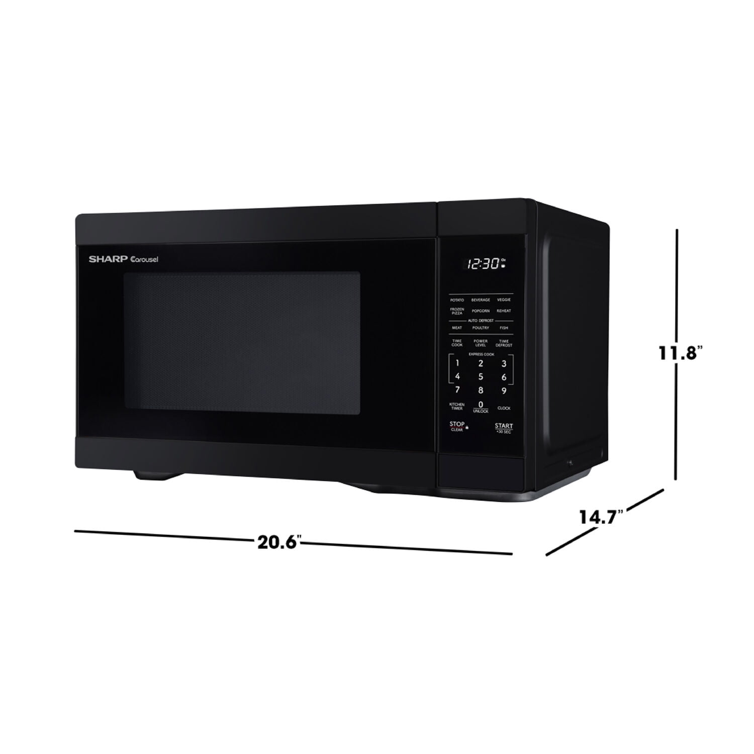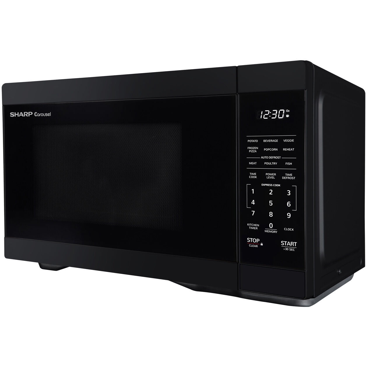 The Sharp SMC1161KB, Mid-Size, 1.1 cu. ft., 1000 Watt Microwave Oven in Black takes up less space on your countertop than our family-sized models, and is our smallest oven for a full-size dinner plate. The SMC1161KB is packed with thoughtful and innovative features. Convenient preset buttons make cooking and reheating favorite foods and beverages a breeze. Express Cook offers One-Touch cooking for up to six minutes. The +30 key can be used for an instant start and to add time during cooking. Easy-to-clean with stylish Gray interior, and LED light complement your style. The 12.4 in., dishwasher-safe glass plate of the Carousel turntable system makes cleanup easy. The White LED display is bright and easy-to-read. Now that is Simply Better Living. With decades of experience designing innovative cooking appliances, it’s easy to see why home cooks throughout the world trust Sharp Carousel