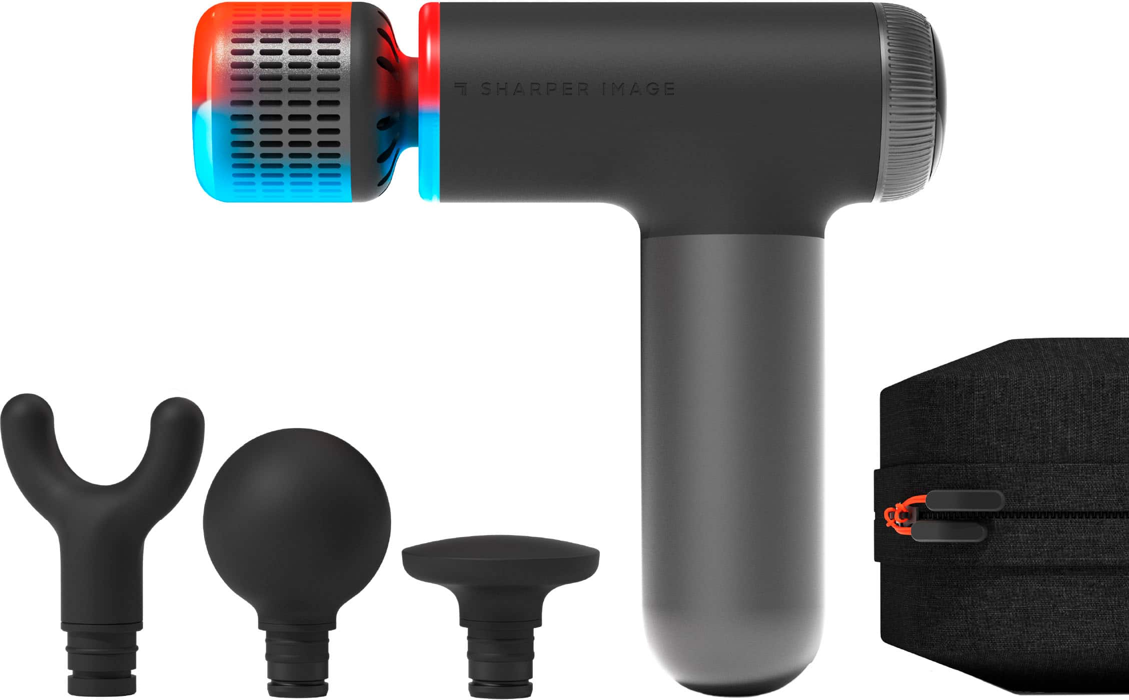 Sharper Image Powerboost Pro+ Compact delivers an unrivaled deep tissue massage experience, effectively targeting sore muscles and tension for outstanding sports recovery. Seamlessly alternate between soothing heat (115°F) and invigorating cold (38°F) with the groundbreaking dual-temperature attachment, and easily manage intensity levels using the user-friendly dial and bright LED display. The whisper-quiet brushless motor guarantees tranquil massage sessions without disturbances, while the compact, long-lasting design provides on-the-go relief with a 2-hour runtime per charge. Customize your massage with 4 unique attachments – Round, Hot + Cold, Fork, and Flat – and conveniently store the device and accessories in the provided carrying case. Transform your sports recovery routine with the Powerboost® Pro+ Compact today!