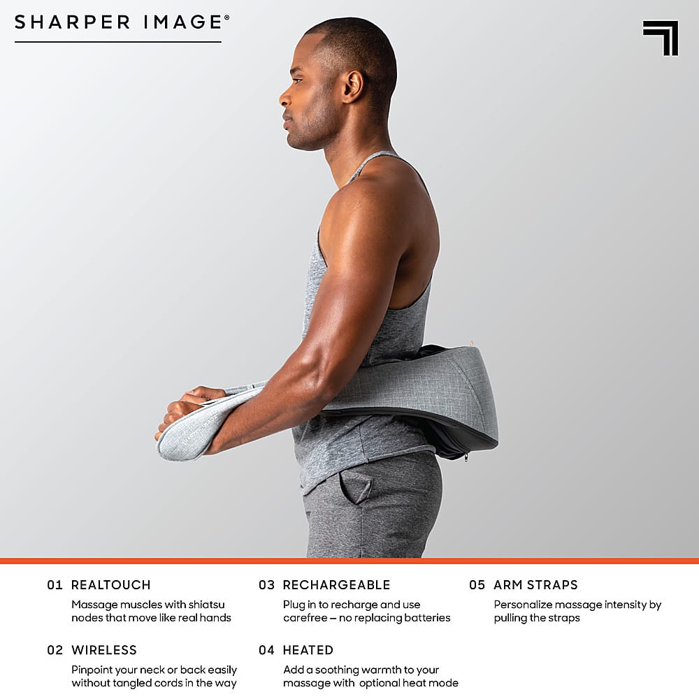 Do you spend long hours in front of the computer? Do you carry tension in your back, neck, and shoulders? Indulge in a therapeutic massage without going to the spa. The Sharper Image Realtouch massager uses revolutionary massage nodes that grip and knead like real hands. Stop using the rotating nodes that just roll on the surface of your skin and opt for a massager that really makes a difference in your tightness and tension. The Realtouch from Sharper Image helps you relax and keep tension and stress at bay. It’s wireless and rechargeable, so you can use it without a tangled cord or needing to replace batteries. The Realtouch can be used to target sore feet, calves, thighs, lumbar/lower back, and more. The rotating nodes grip your tired muscles and tight knots, giving optimum pressure to loosen your body