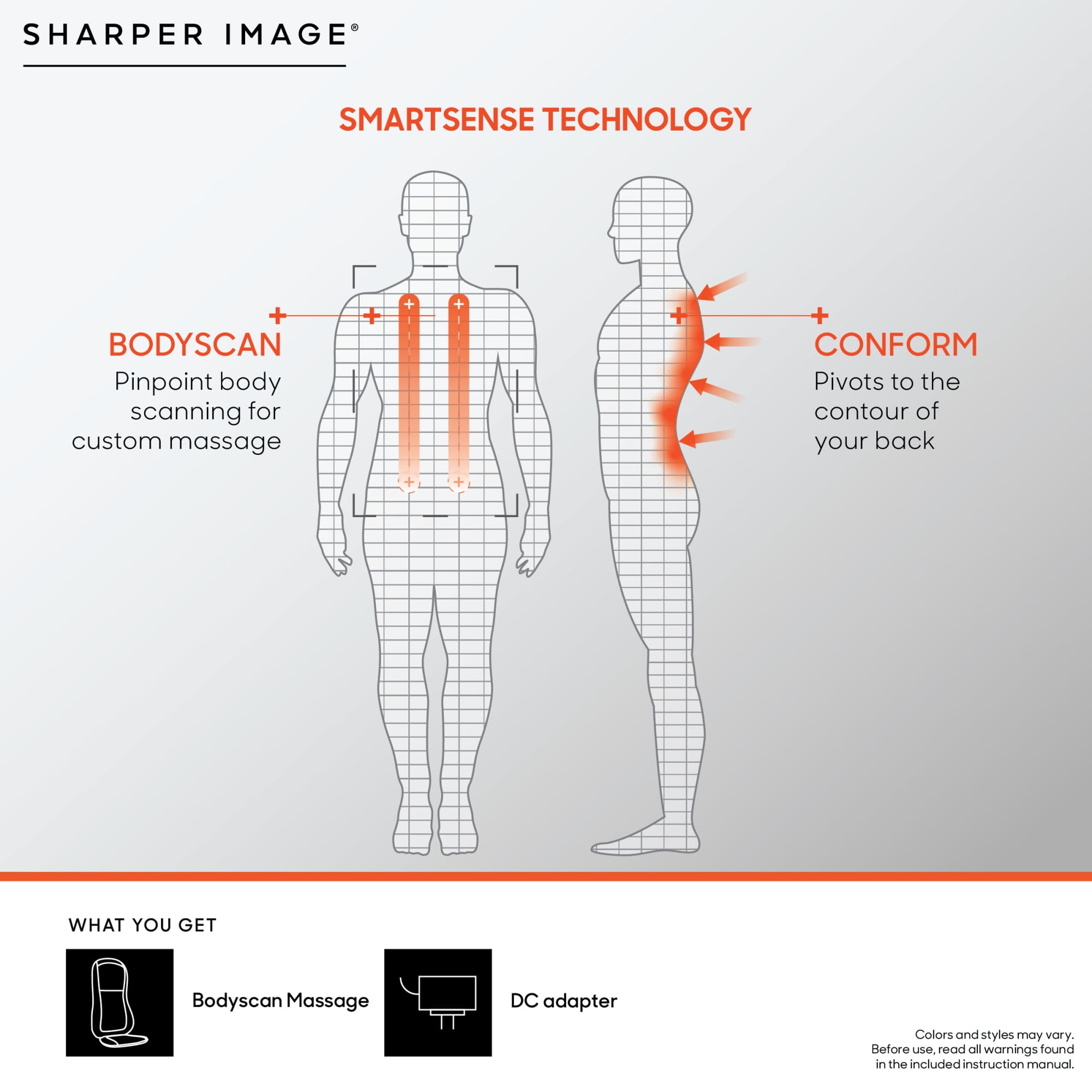 Accurate custom massage Realtouch enabled gel nodes Soothing heat mode Add to any chair, couch, or recliner Smartsense technology accurately locates pressure points Contemporary design Model: 1012644
