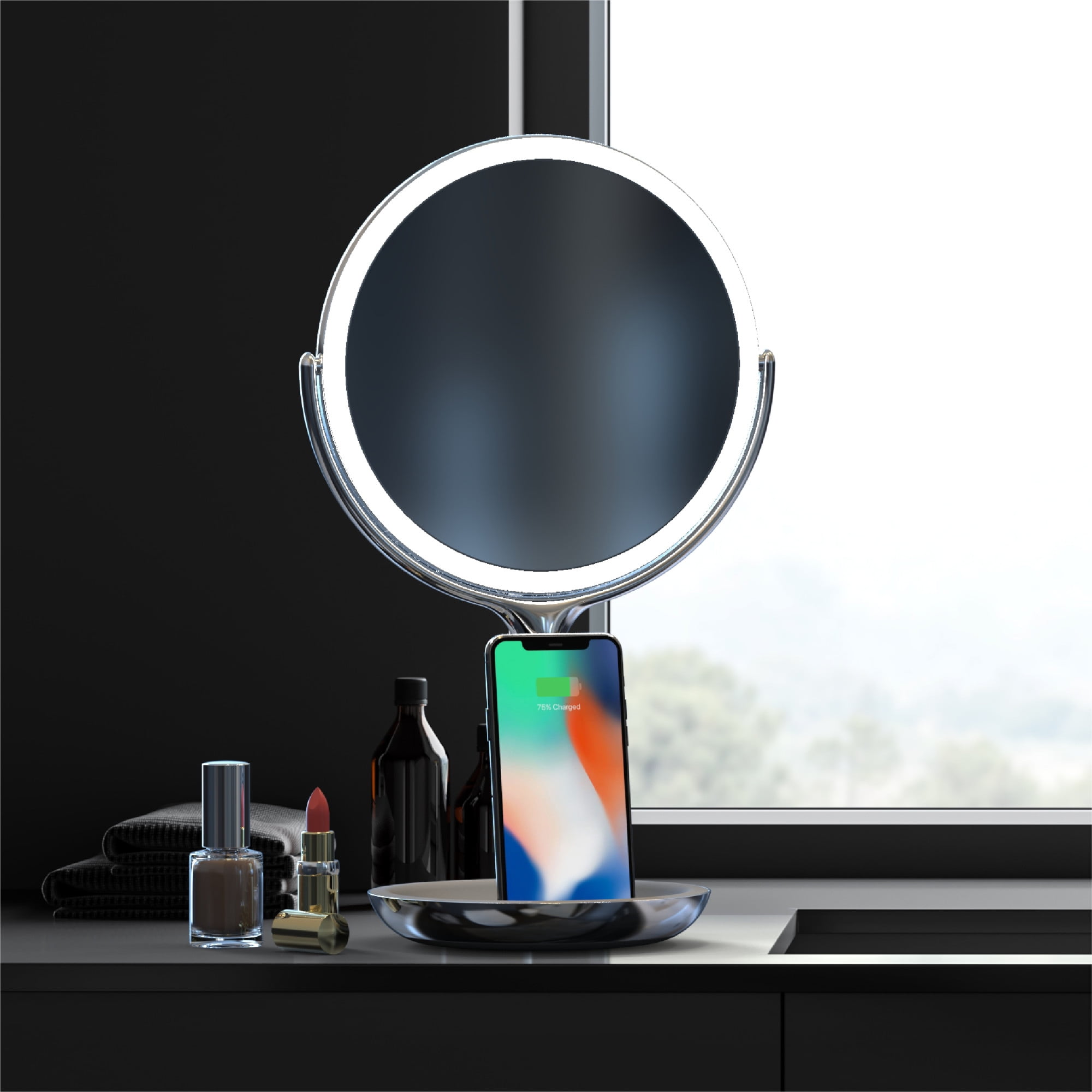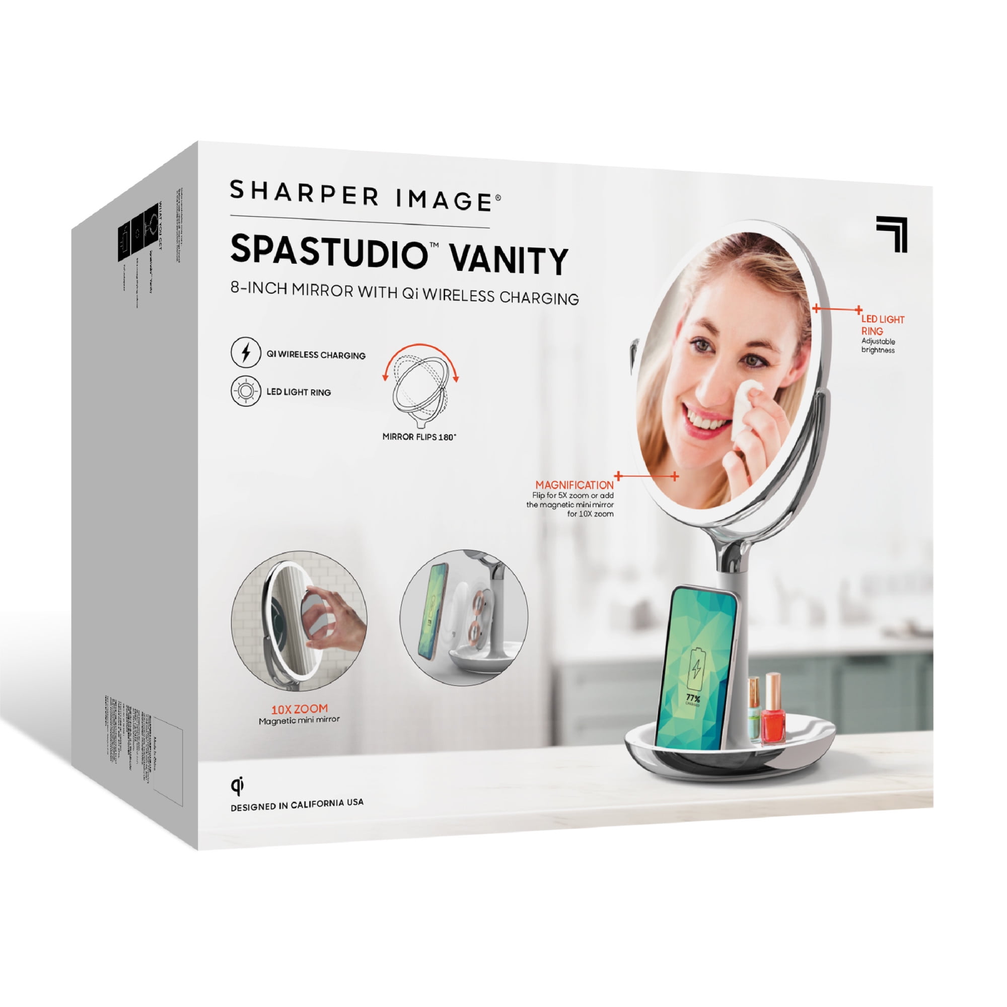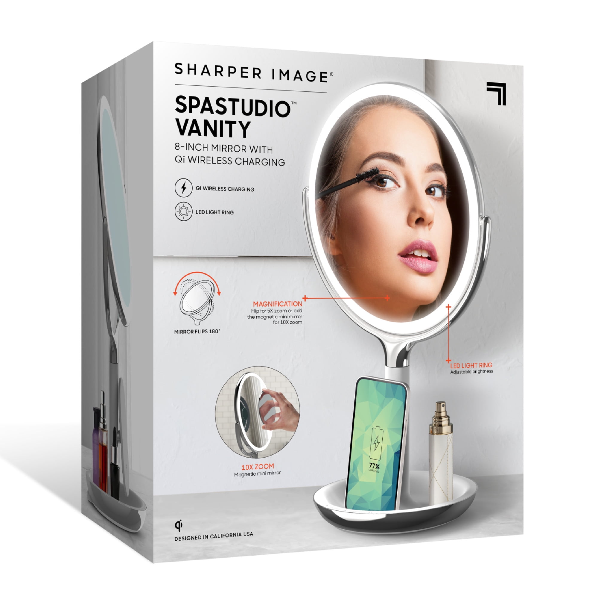 Sharper Image® SpaStudio™ Vanity 8-inch Mirror with Built-In Qi Wireless Phone Charger, 5X and 10X Magnification