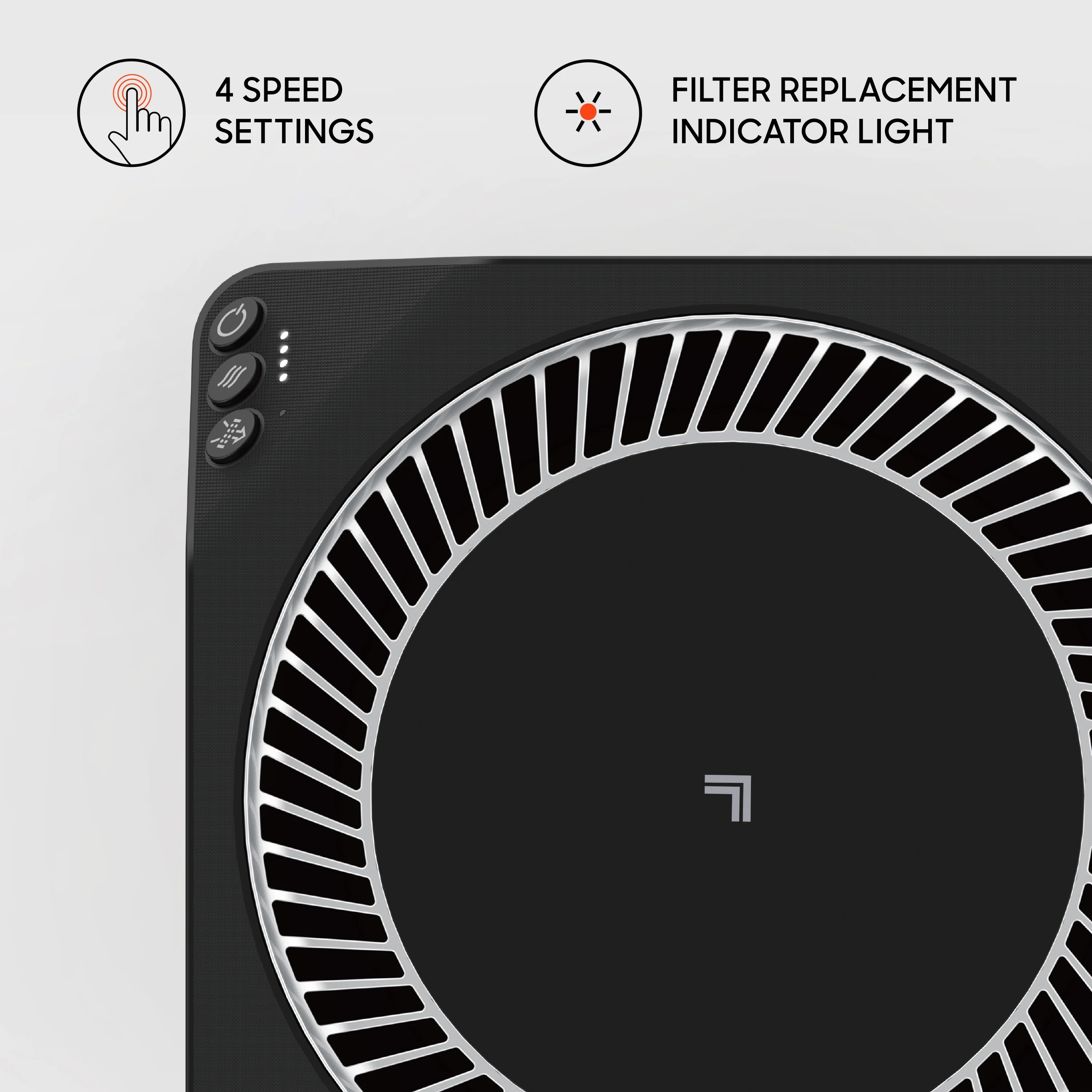 True HEPA air purifier 3 stage air filtration 4 speed settings 95 sq. Ft. coverage LED filter replacement indicator Electronic controls Designed for comfort & style Activated carbon filters Wipe Clean Owners guide included Compatible filter: MD1-0045