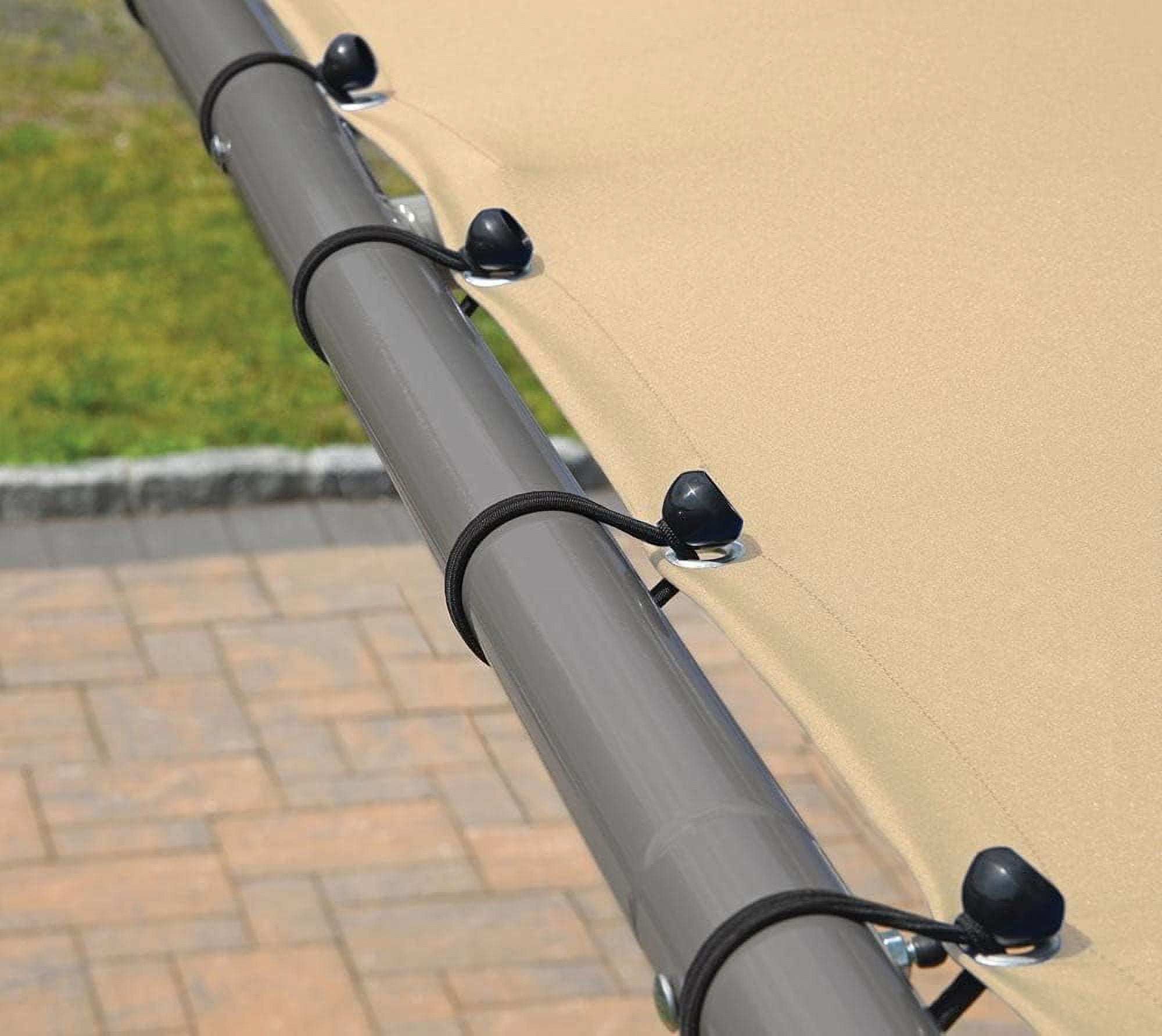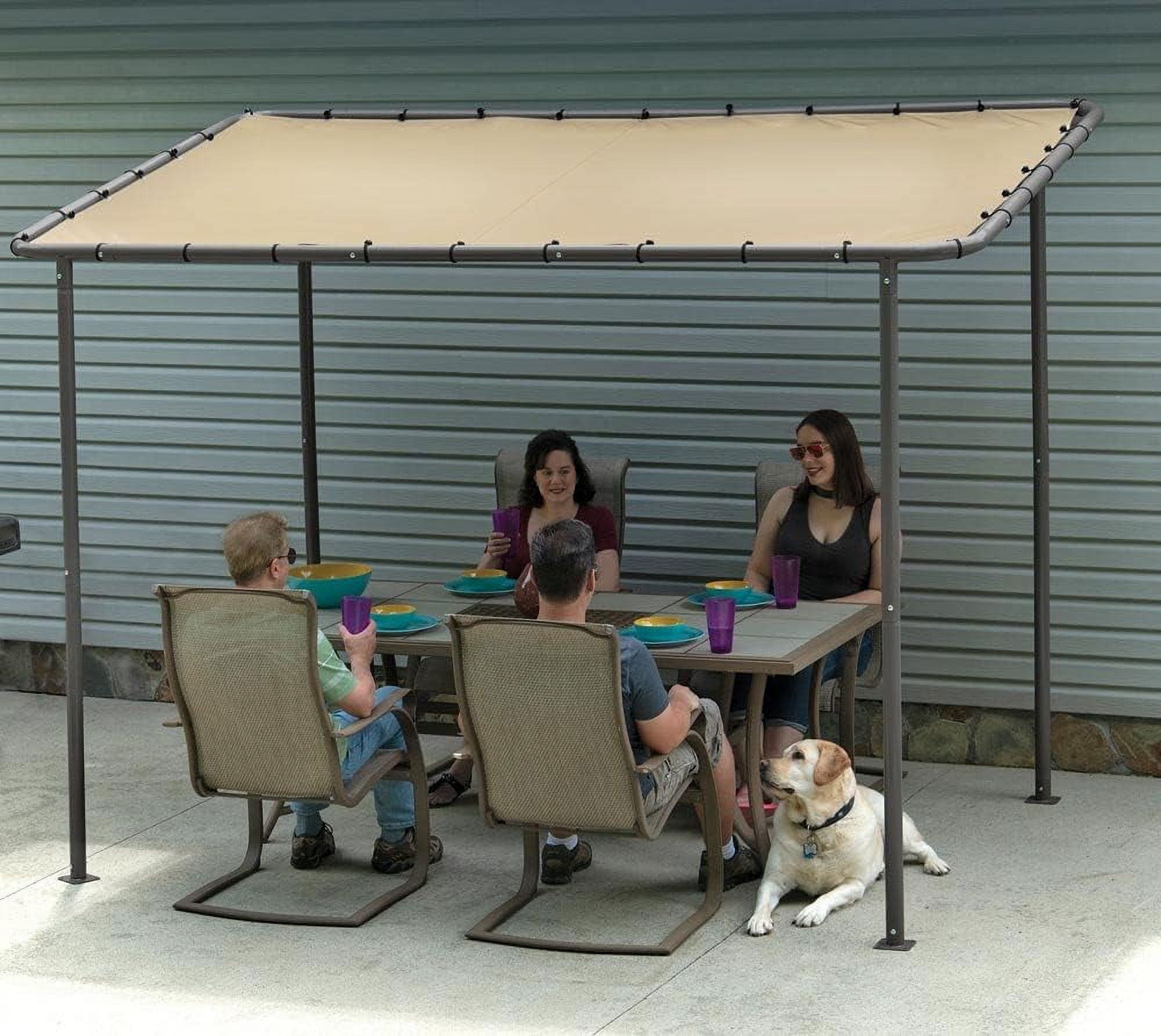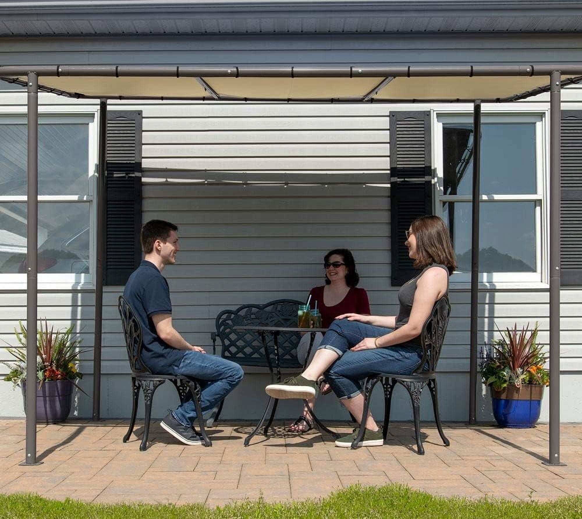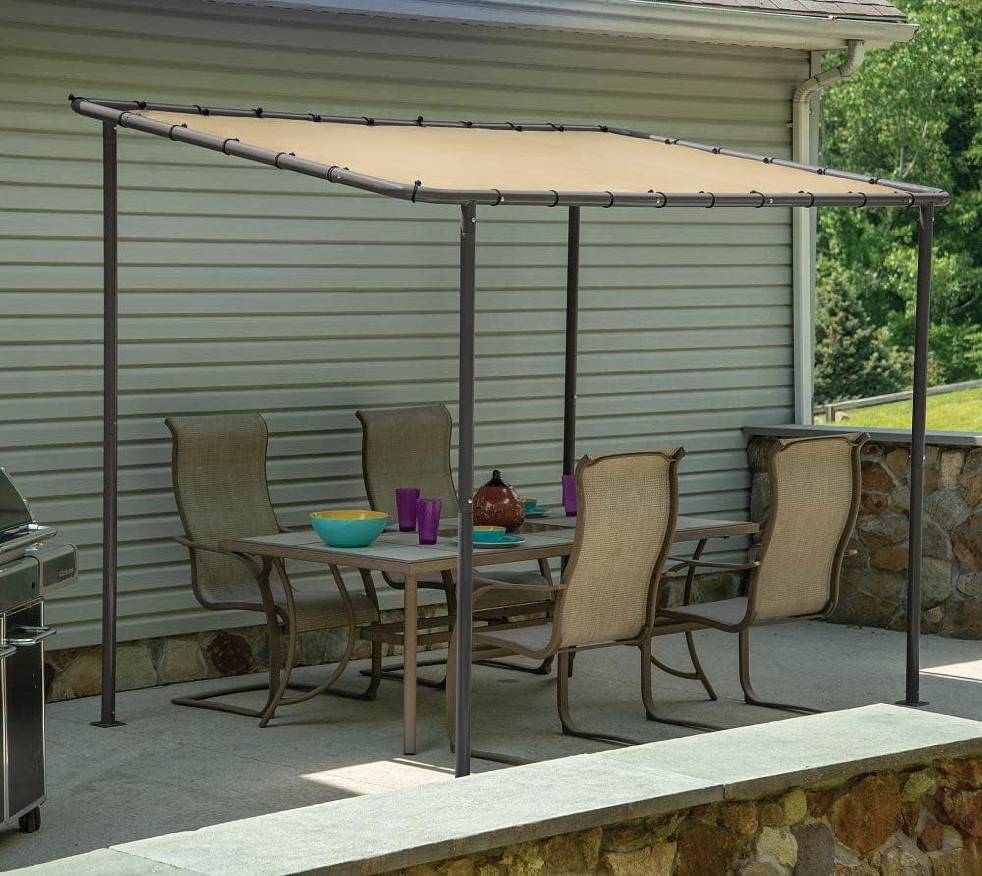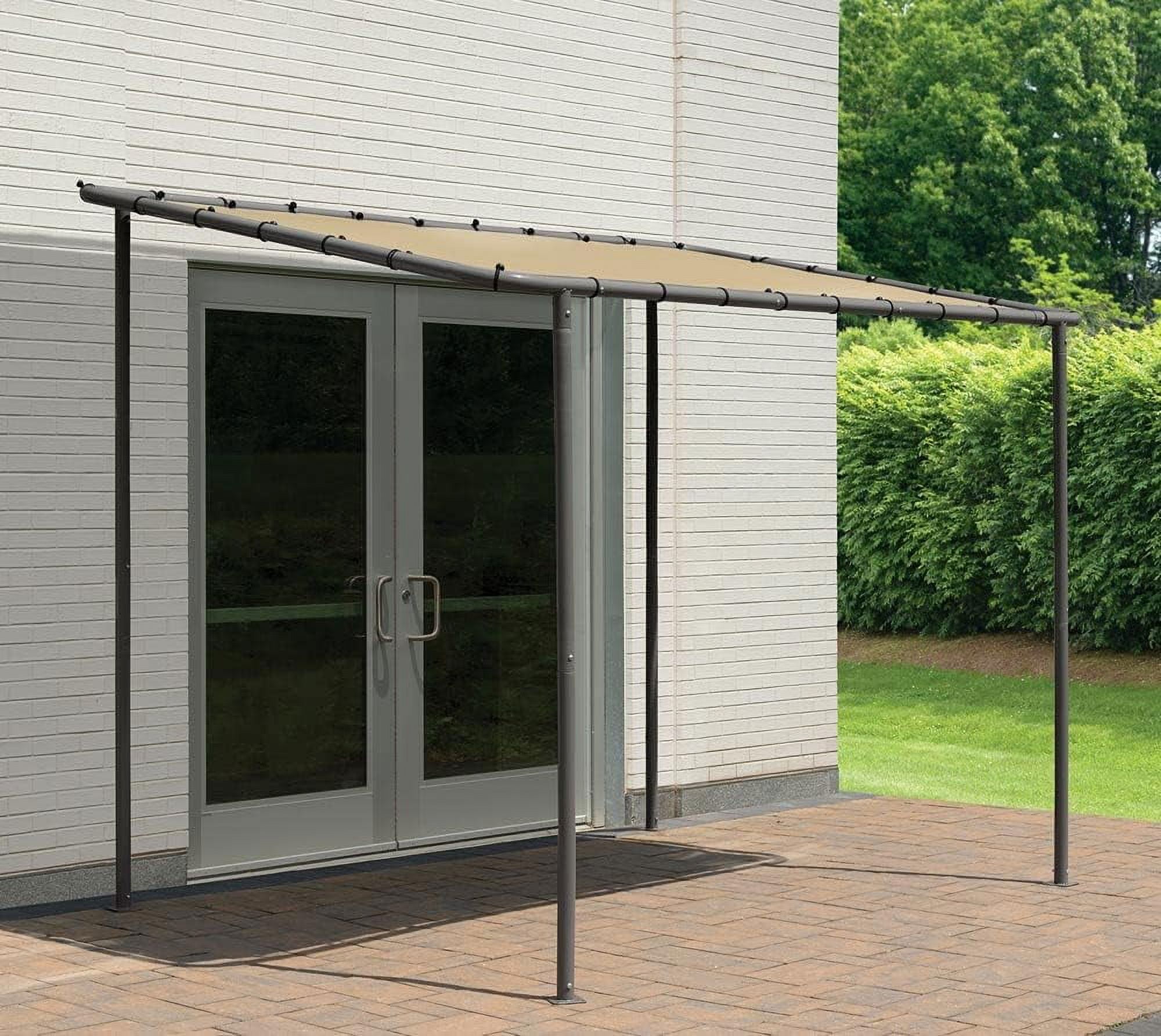 Stylish and functional shade solution for outdoor entertaining on your deck, patio, garden, or backyard Durable water-resistant canopy cover made from 300 denier polyester, providing protection from UVA and UVB rays Canopy cover is CPAI-84 Sec. 6 fire-rated for added safety Sturdy charcoal carbon steel tube frame, 2 inches in diameter, powder-coated to resist chipping, corrosion, and rust for durability season after season Cross beams provide robust anchoring for the cover