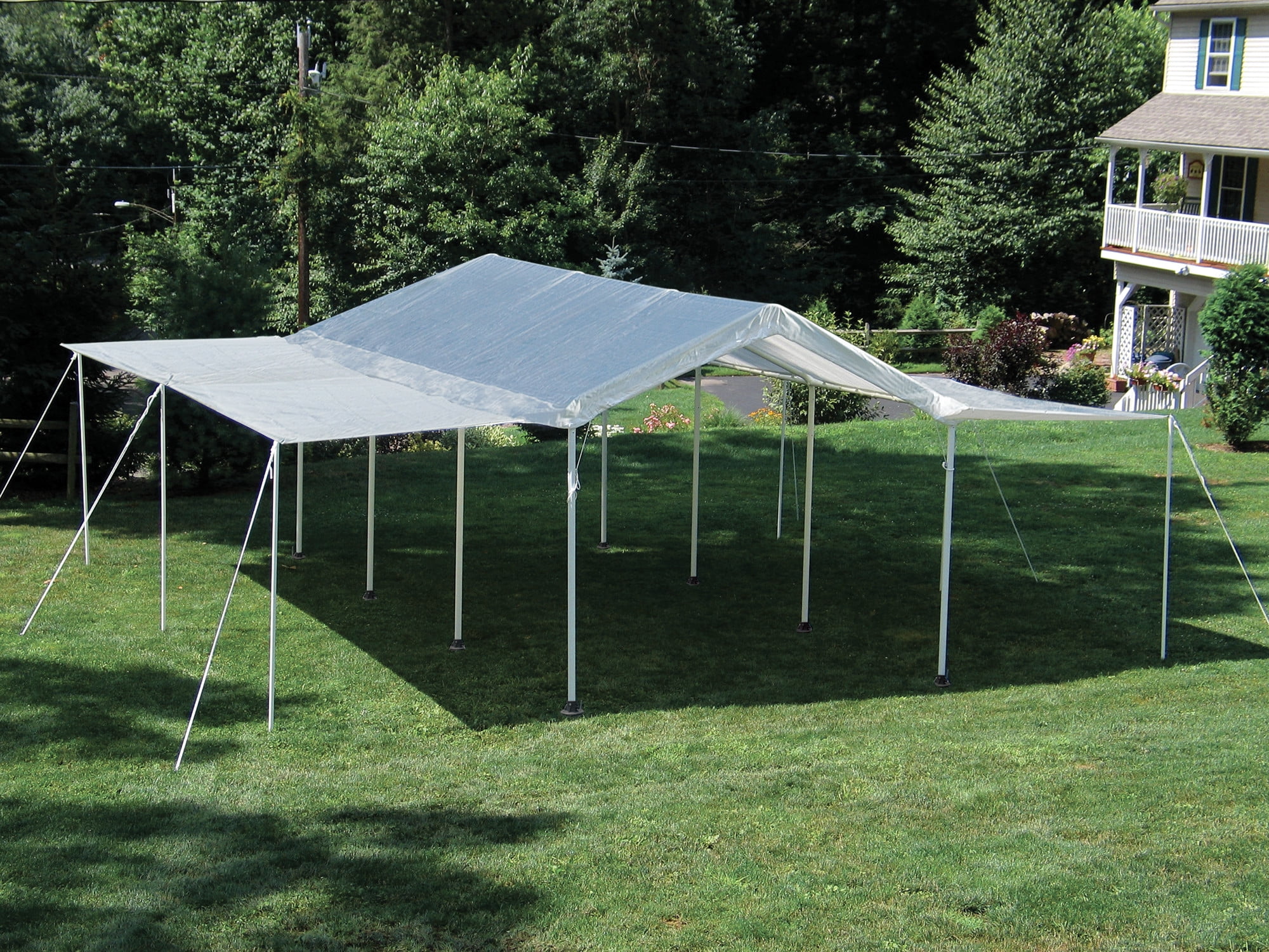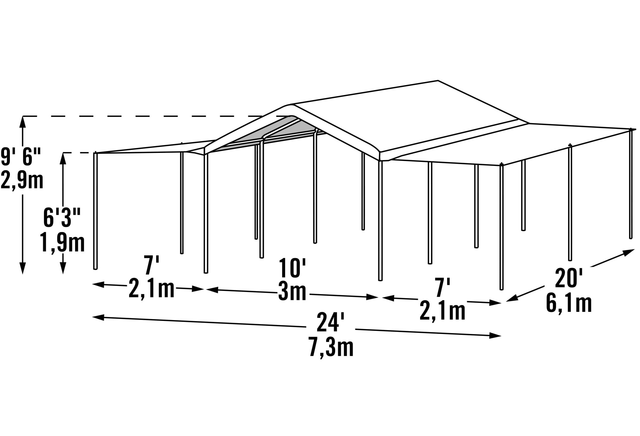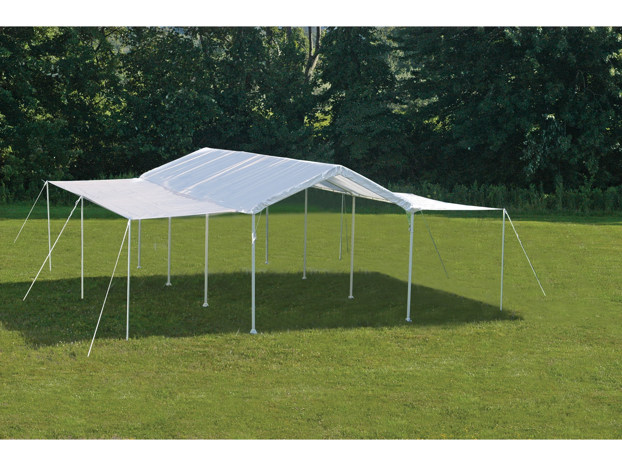 The ShelterLogic 10 x 20 ft. MaxAP Canopy Extension Kit is the quick and affordable solution for special events and seasonal protection. Quickly convert any 20 ft. long canopy to a fully covered event tent, single or double wall wind break in minutes. Constructed of ripstop woven polytheylene fabric with added UV protection, fade blockers, anti-aging, anti-yellowing and anti- agents. Comes ready to install out of the box with steel tent poles and tie downs. Expands coverage by 280 square feet of protection. This unit is the extension kit only. The canopy frame and top are sold separately.