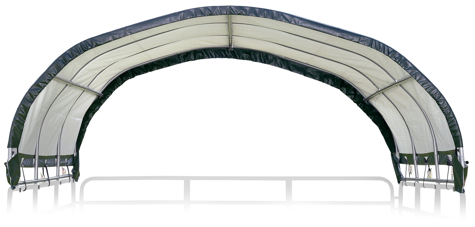 Heavy duty and waterproof cover: 7. 5 ounce ripstop fabric cover is heat sealed for maximum water resistance. Uv treated inside and out with added fade blockers to extend the life of the cover Universal cover: fits most corral panels and gate tube profiles (Round, square, and oval) with its unique brackets (Patent pending).Wall Height:15.78 inch Safety for your animals: protective boots on each corner to prevent injury to animals Durable frame: made from an all-steel metal 12 x 12 x 5. 5-Foot frame that is 1-3/8 inches thick with a Premium, powder coated finish that resists corrosion and rust Shelter Lock: patented stabilizers at every rib connection for rock-solid strength. Delivers a stable, more durable animal Shelter. Material: Polyethylene 7.5 oz Ratchet Tite: tensioning system for rock solid anchoring for canopies, Shelters, garages for immediate and constant frame-to-anchor tightening ASSEMBLED EXTERIOR DIMENSIONS AND : 12′ x 12′ x 5’6″, 1 year limited Corral panels and gates not included