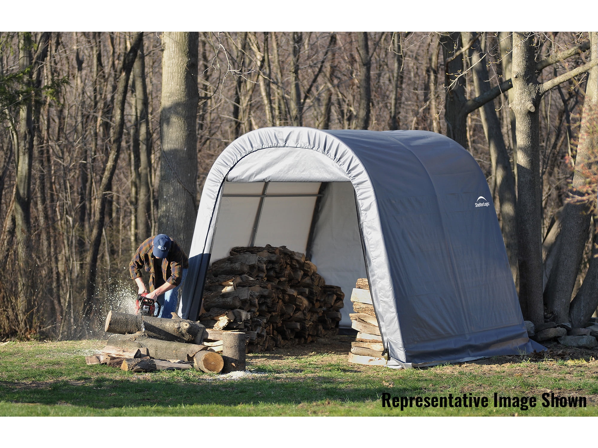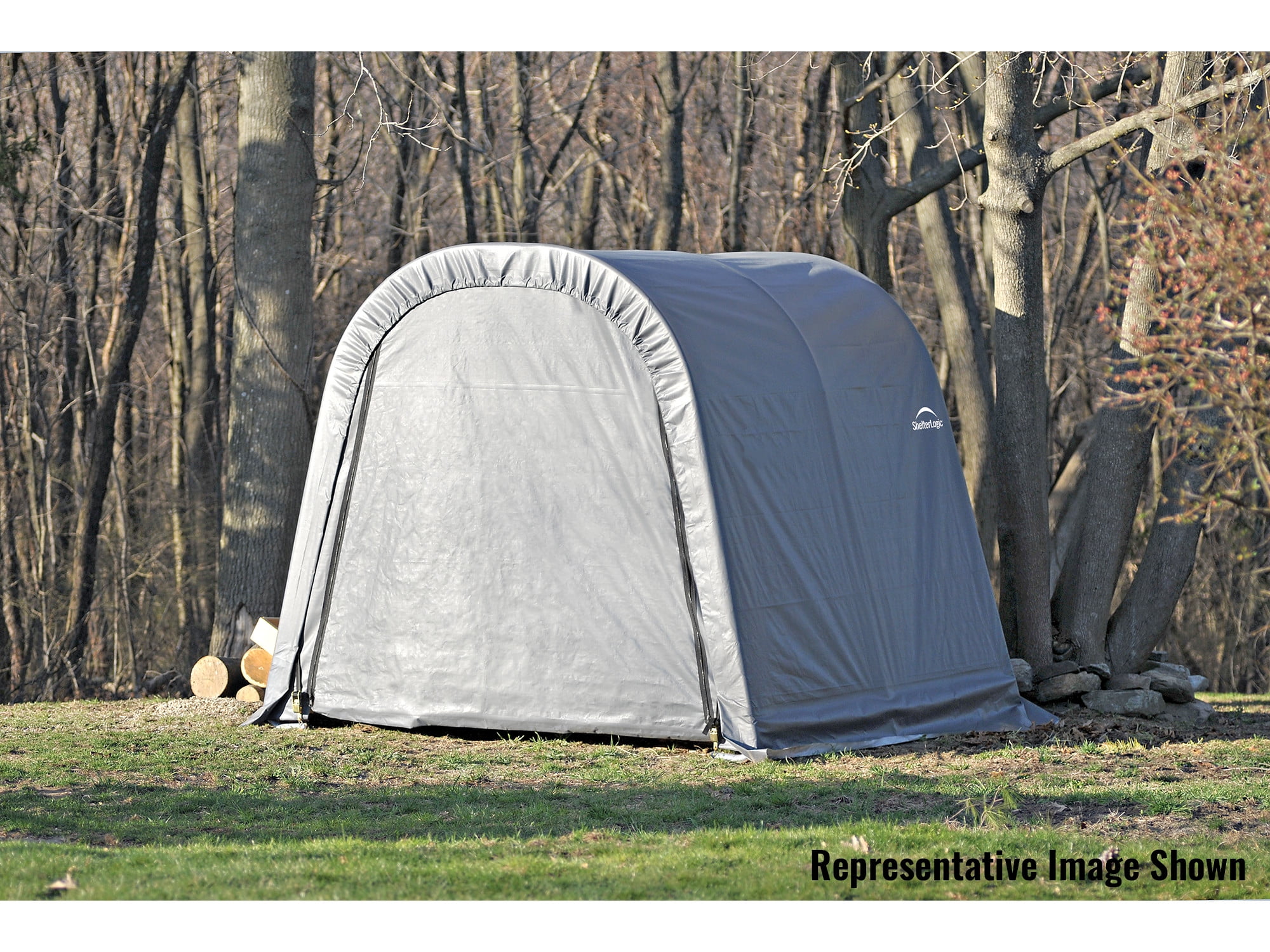 Easy to install and designed to withstand the elements, ShelterLogic sheds/shelters are constructed of quality frame and fabric components. The ideal storage solution for ATV’s, large equipment, tractors, supplies, and bulk storage.Finish: grayIncludes canopy frame, auger anchors and 2 double zippered door panelsMade of heavy duty 8 inch diameter steel and polyethylene fabricDuPont premium powder coat finish protects frame from corrosion and rustAnti-fungal coverShelterlock stabilizers at every rib connection for strength and stability100% waterproofBolt-together connectionsRatchet tite tension system and easy-glide sliding cross rails keep the cover smooth and tautUV treatedSpecifications:Overall Dimensions: 96″ H x 123.6″ W x 96″ DProduct Weight: 133.5 lbs