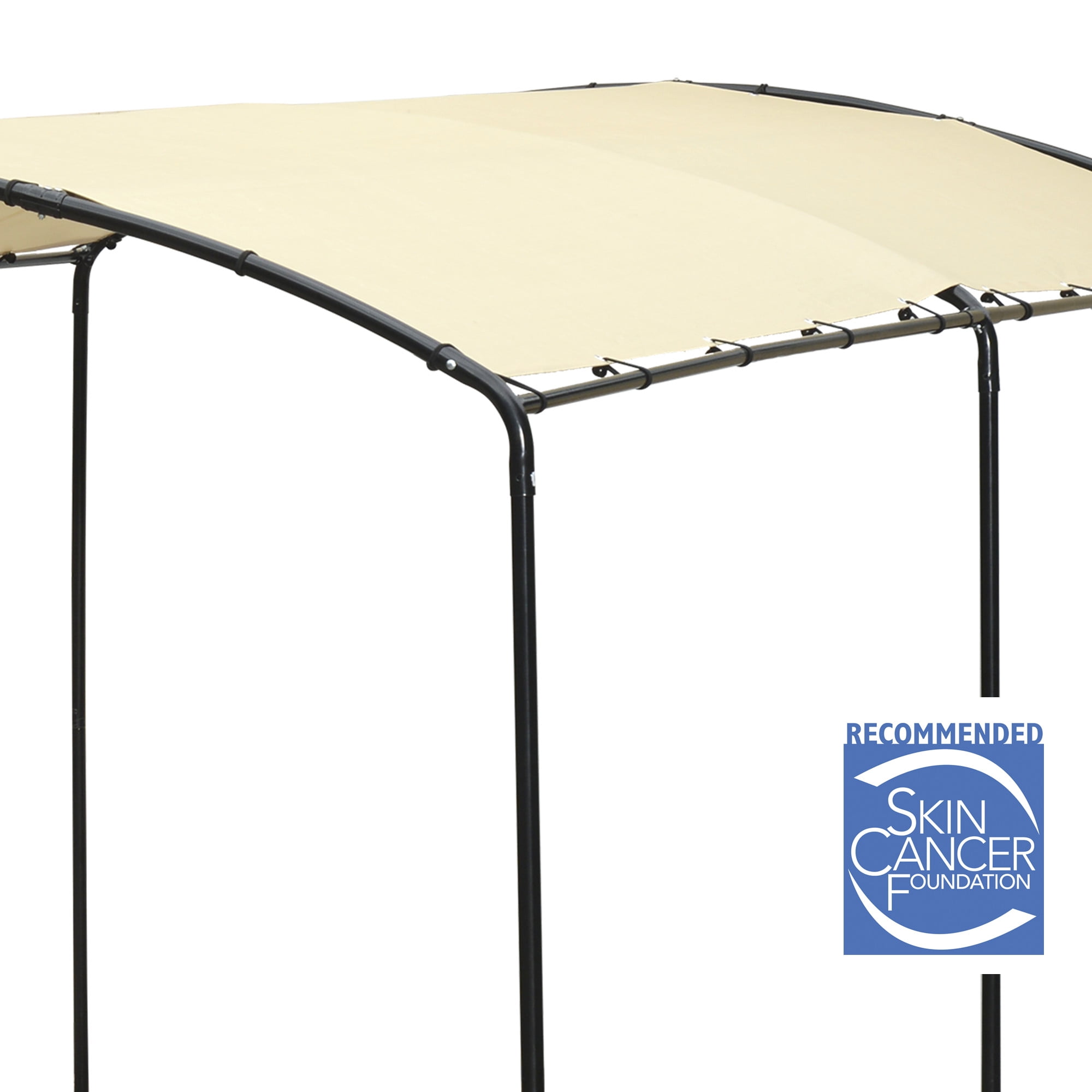 STYLISH AND FUNCTIONAL SHADE: Modern style arch canopy with premium powder coated finish offers protection from the sun while adding a decorative addition to your backyard SUN PROTECTION: Durable waterproof canopy cover is made from a durable and tough 5.5 oz ripstop that provides protection from UVA and UVB rays DURABLE STEEL FRAME: 1-3/8″ steel frame with premium powder coat finish resists chipping, peeling, rust and corrosion COMPLEMENTS EXTERIORS: No-valanced cover attaches easily with the included bungees and sleek sandstone cover accentuates the clean architectural lines of the arched canopy RUGGED STRENGTH: Features bolt connections for a quick set-up and spike anchors for secure placement and stability