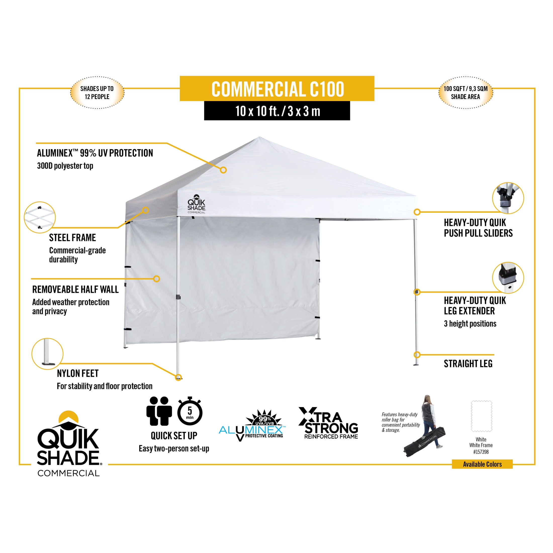 Quik Shade Commercial 10 x 10 x 1 ft White C100 Straight Leg Canopy