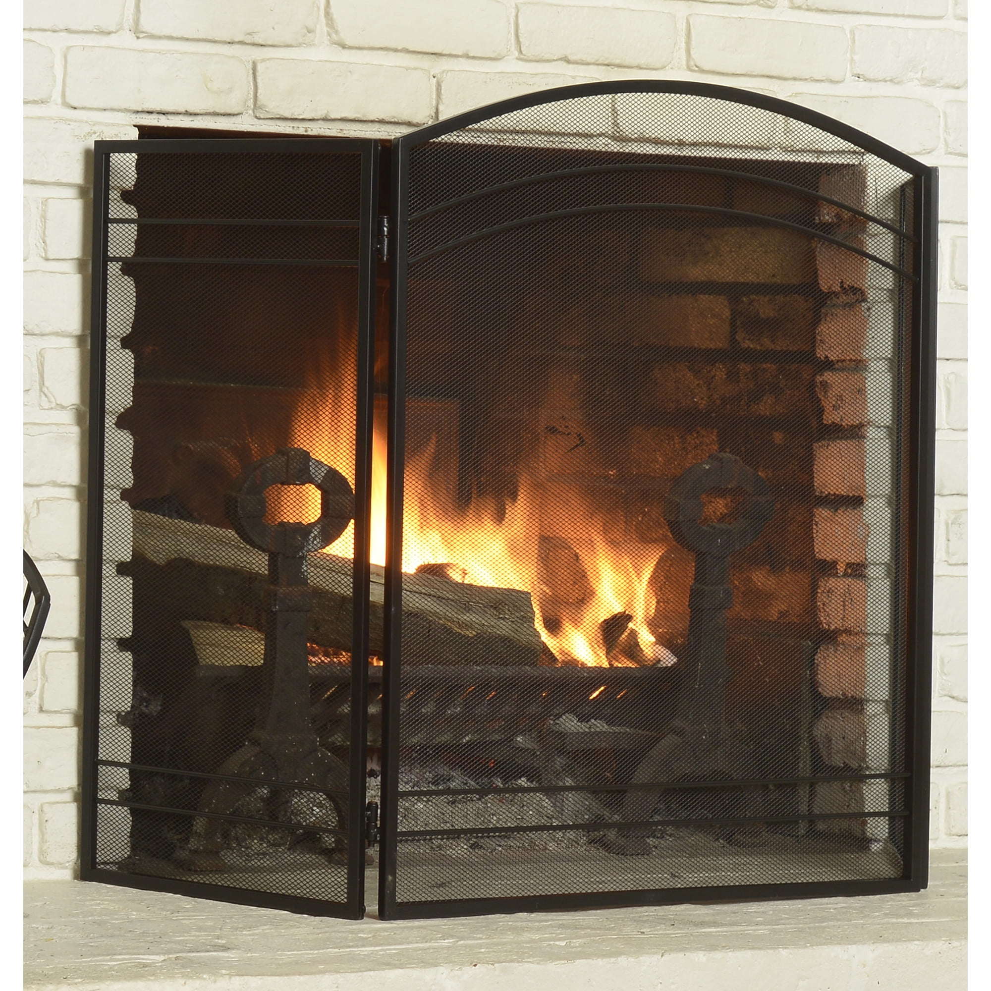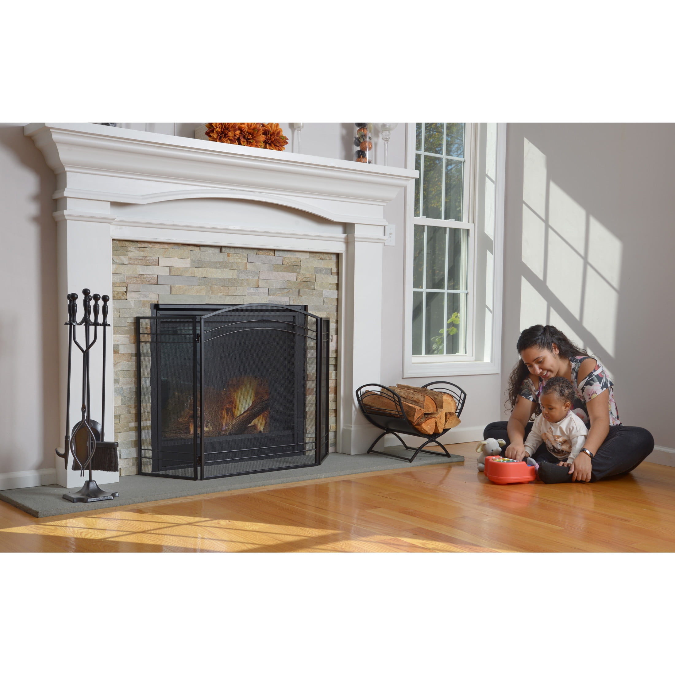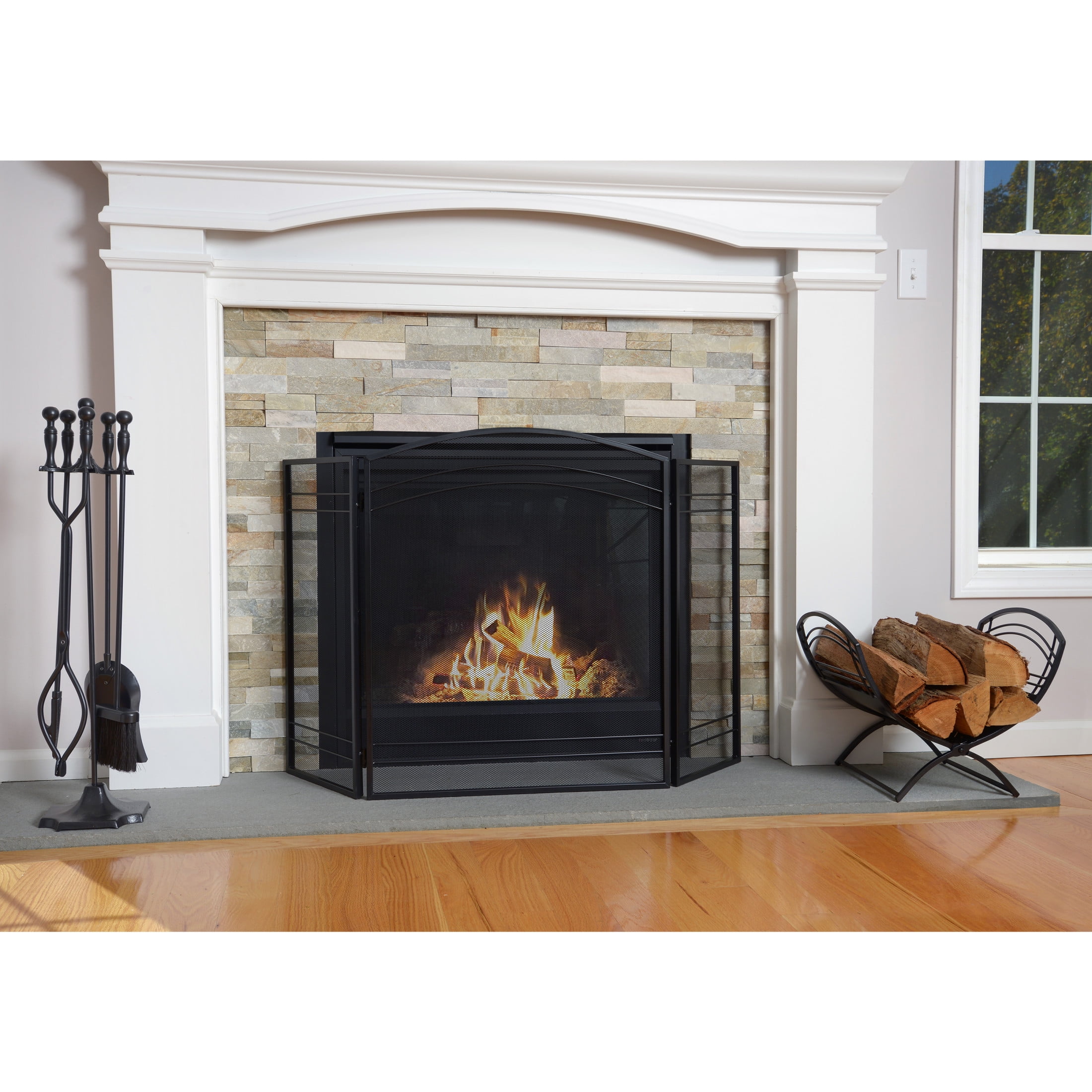 Fireplace Classic Screen Black: A matching fireplace log holder is available No assembly required — ready to go out of the box Three-panel hinged design allows for protection flexibility Traditional black finish complements any decor Black fireplace screen is constructed of sturdy square tube steel