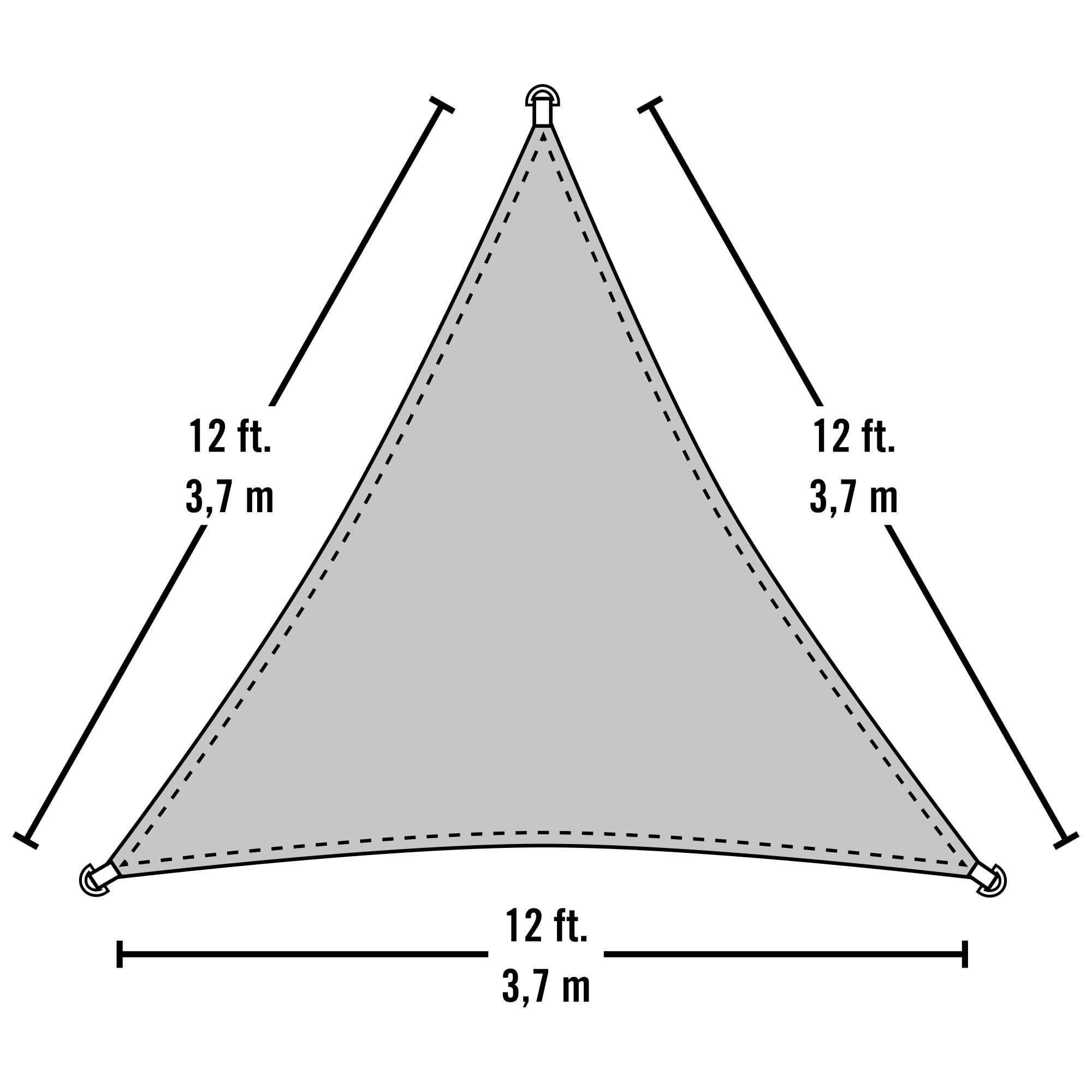 The ShelterLogic 12 x 12 x 12 ft. triangle Shade Sail is the do-it-yourself shade product that allows you to create your own unique shade design. Shade Sails easily attach to any sturdy connection point to provide sun protection and personal design where you need it. Each Shade Sail is shipped ready to install and includes a basic hardware kit for easy attachment to the house, building, tree or post. Shade Sails offer an excellent shade solution for backyard decks, patios, pools, play areas, camping, or any place shade is needed. Combine more than one Shade Sail or mix shapes to create your own unique outdoor shade and living space.