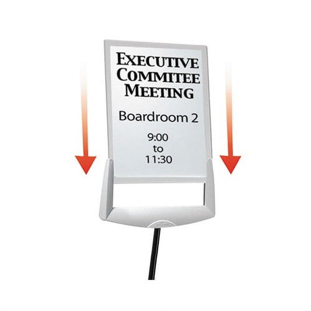 Product Type – Signs & Sign Holders-Sign Stands Frame Color – Gray Size – 40 to 60 Insert Size – 8.5 x 11 Materials – Acrylic/Metal Orientation – Portrait Height – Adjustable 40-60 Loading – Front For Use With – Letter-Size Inserts Shape – Rectangular Placement – Floor Face Colors – Clear Write-on/wipe Off Surface – No Base Material – Metal Frame Material – Acrylic Maximum Height – 60 Package Includes – Includes one sign stand Pre-consumer Recycled Content Percent – 0% Post-consumer Recycled Content Percent – 0% Total Recycled Content Percent – 0% Package includes – Includes one sign stand Assembly Code – N Prop 65 Indicator – N Green Indicator – N EPACPGCompliant Code – N