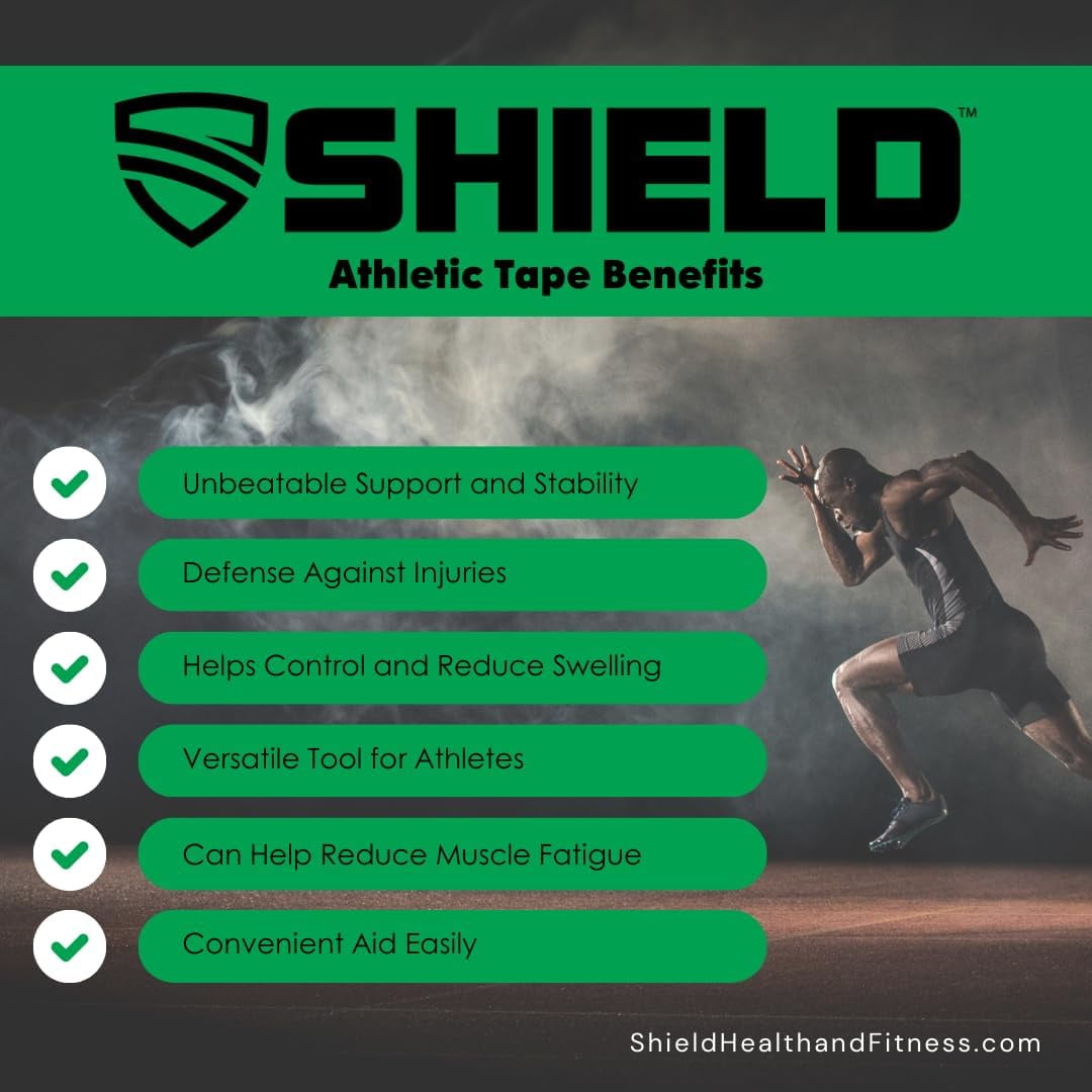 PROTECT LIKE THE PROS – Shield’s Athletic Tape: 1.5 Inch Width, 15 yard Length – Top-quality athletic tape for all sports medicine applications. NO RESIDUE ON YOUR SKIN – Shield’s Our athletic tape was crafted with a special formula to make sure it unwinds with ease. TEAR WITH YOUR FINGERS – The quality of Shield’s materials make way for an easy and reliable taping experience. Easy to tear and provides a firm support to weak, injured, or unstable body parts EXTREMELY STICKY – Athletic tape has an extra high tensile strength for support and a tacky texture to stay on longer. Consistent unwinding to the core MEDICAL GRADE MATERIAL – 100% bleached cotton. Perfect for Physical Therapy & Therapists. Rolls are made of hospital grade 100% cotton backcloth and impregnated with zinc oxide