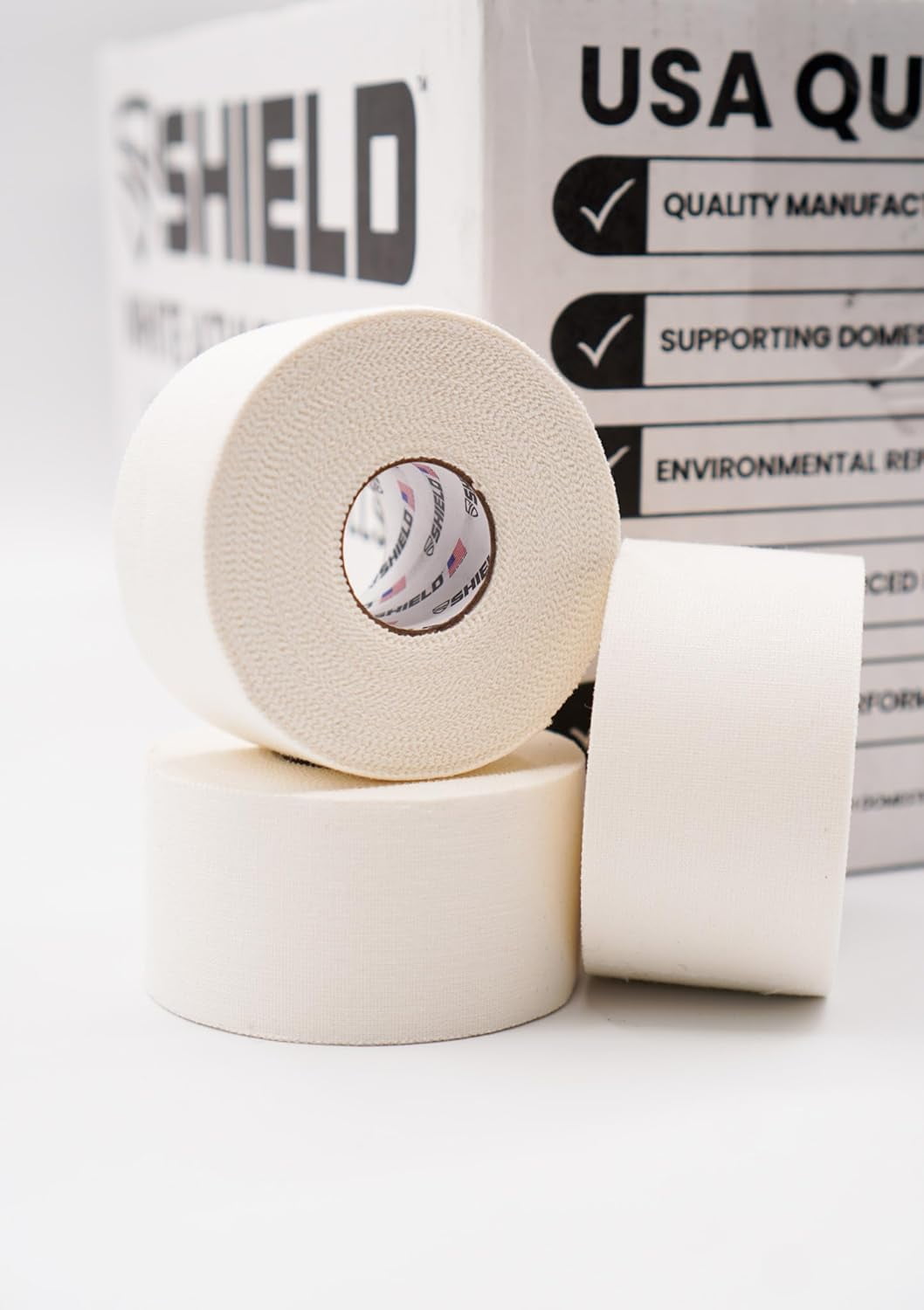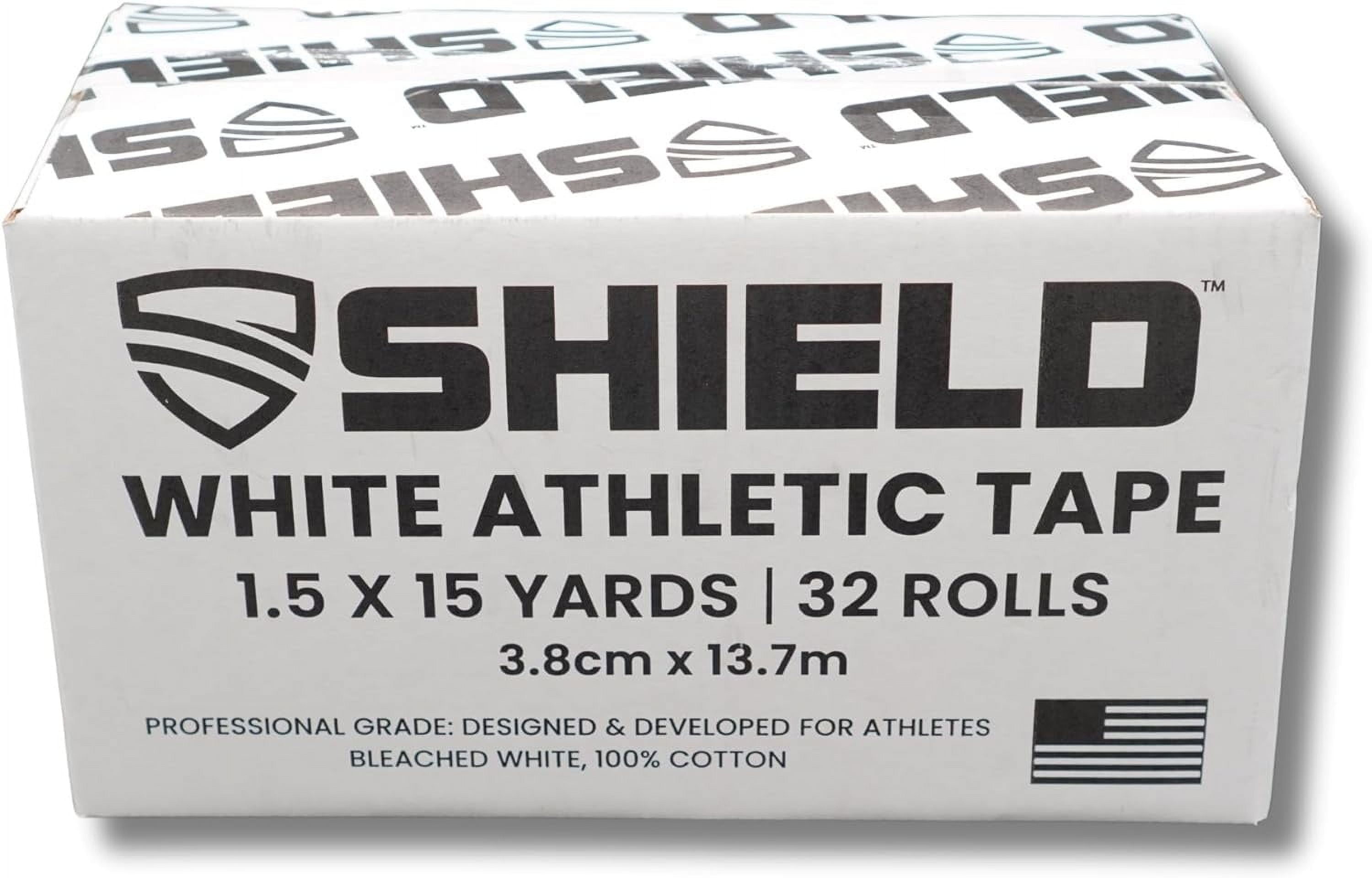Shield Fitness Athletic Tape Case – 1.5″x 45′, Made in USA | 32 Roll White Bulk Pack