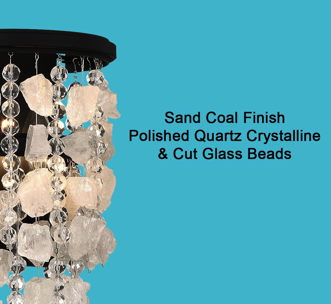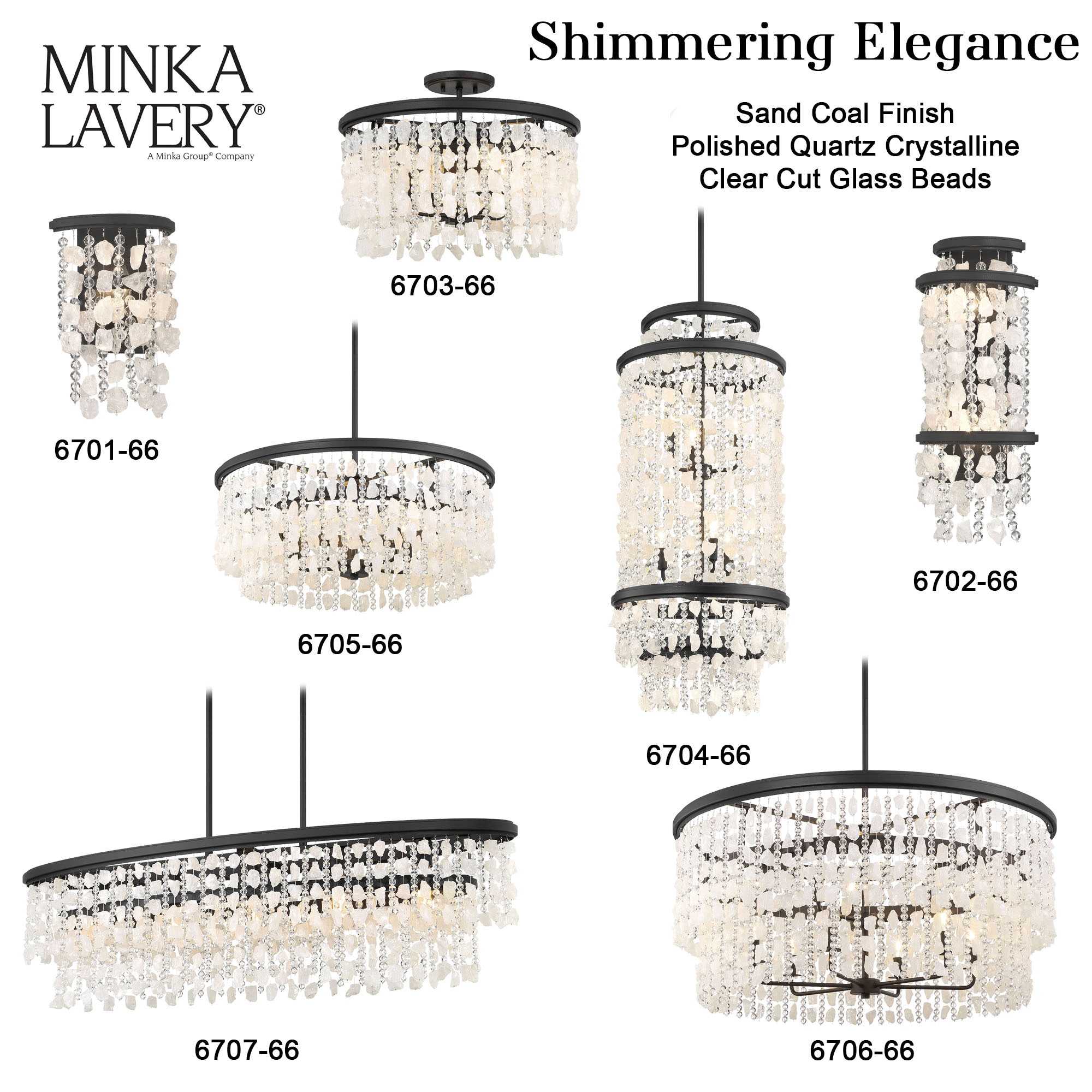 Introducing the Shimmering Elegance lighting collection by Minka-Lavery – where brilliance meets sophistication, and illumination becomes an art form. Crafted with meticulous attention to detail, the Shimmering Elegance collection features a harmonious fusion of exquisite materials. Each fixture showcases a delicate balance between shabby chic trends and enduring elegance, making them the perfect addition to any discerning interior. Illuminate your surroundings with Shimmering Elegance lighting, each a testament to the marriage of form and function. The collection offers a diverse range of designs, ensuring there’s a perfect match for every taste and space. The play of light and shadow created by these fixtures adds a layer of ambiance that transforms and elevates any room into a captivating haven. Meticulously curated quartz crystalline handing from a sand black finish frame, enhance the Shimmering Elegance collection’s aesthetic appeal, while high-quality materials ensure durability and longevity. Whether you seek a statement piece for your foyer, a conversation-starting chandelier for the dining room, or a subtle yet impactful accent for the bedroom, this collection offers a radiant solution for every lighting need. Elevate your home with the Shimmering Elegance lighting collection – a testament to Minka-Lavery’s commitment to design innovation, quality craftsmanship, and a timeless aesthetic.