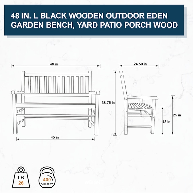 - DIMENSIONS: 48 in L x 23 in W x 37 in H and weight capacity of 400 lbs