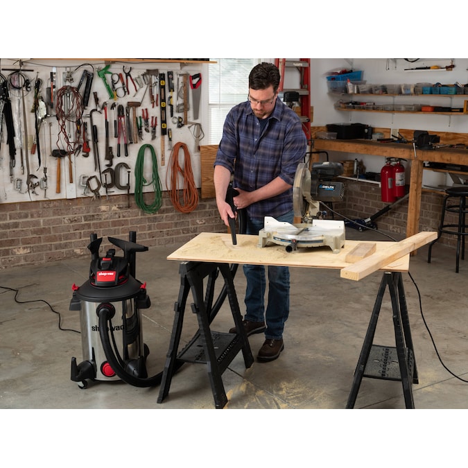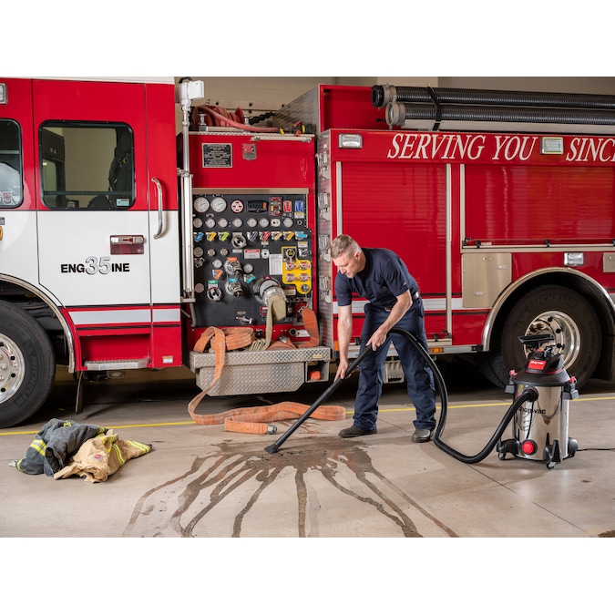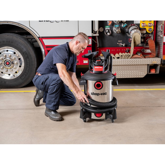 Shop-Vac® 12 gallon 6.0 peak HP stainless steel wet dry vacuum has many features for any cleaning task. Use for wet or dry pick up in garages, attics, basements, vehicles, work shops, or patios. Comes with a complete set of accessories and filters. Features stainless steel tank, on board cord and accessory storage, tank drain for easy emptying, rear blower port, and easy roll casters.